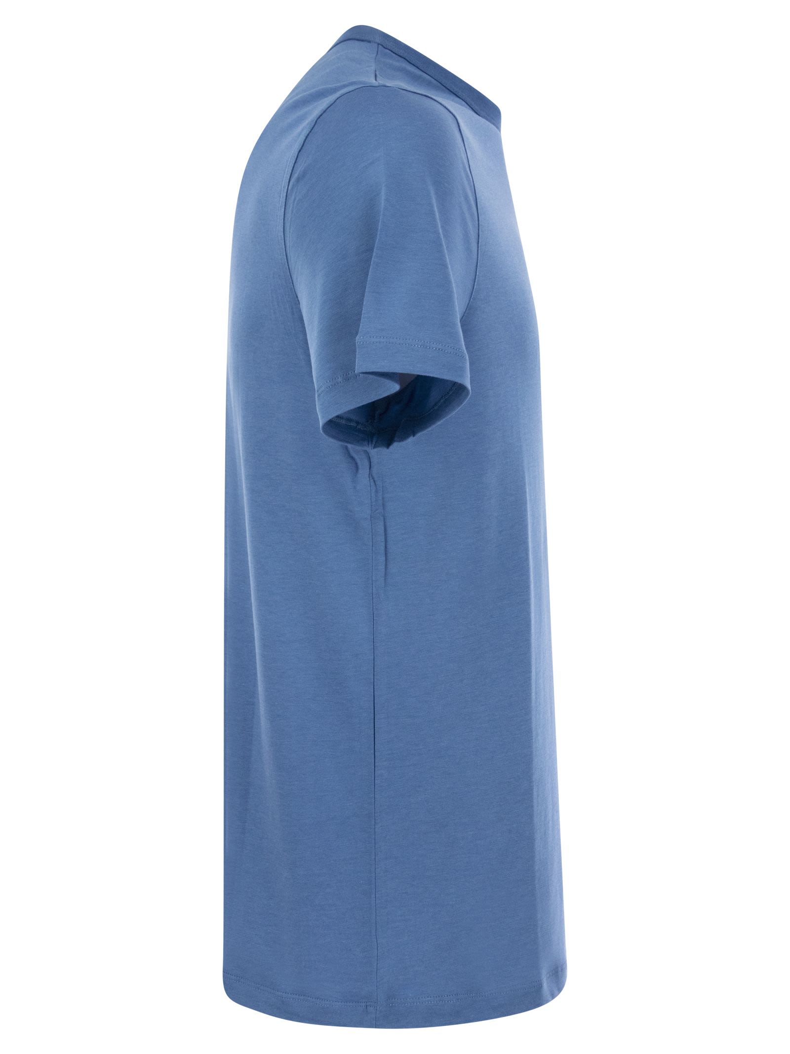 Short-sleeved T-shirt, crew neck and regular fit: an all-purpose garment, simple and elegant. The composition of lyocell and cotton makes it particularly luxurious and soft to the touch, perfect for combining with other garments or worn alone for an essential look. - T-shirt - Crew neck - Regular fit DESIGNER ID: S23M296 HTS013 143