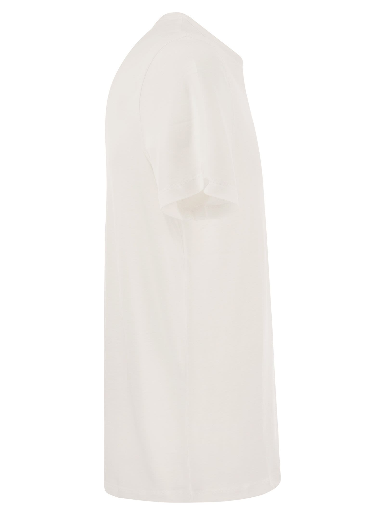 Short-sleeved T-shirt, crew neck and regular fit: an all-purpose garment, simple and elegant. The composition of lyocell and cotton makes it particularly luxurious and soft to the touch, perfect for combining with other garments or worn alone for an essential look. - T-shirt - Crew neck - Regular fit DESIGNER ID: S23M296 HTS013 001