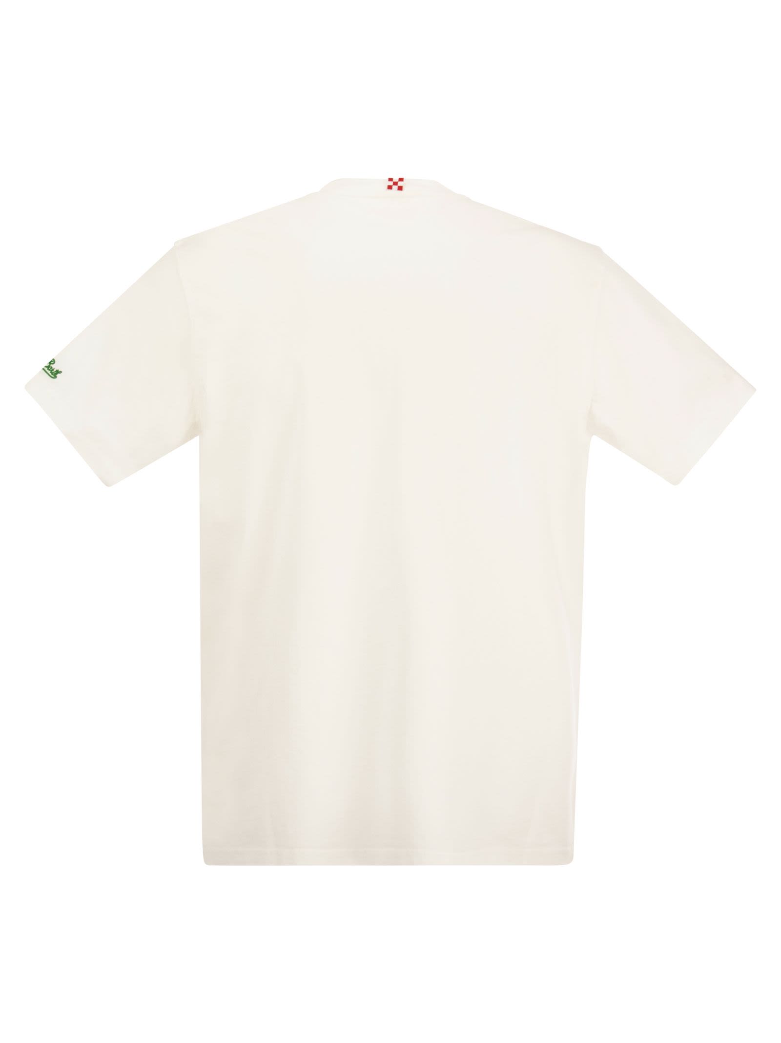 Inspired by the unique colours and prints of MC2 Saint Barth, this men's t-shirt is perfect for casual and sporty looks, made of cotton with embroidery on the breast pocket. - Crew neck - Regular fit - Short sleeves - Front pocket with embroidery - St.Barth logo on sleeve DESIGNER ID: AUS0001 07119D
