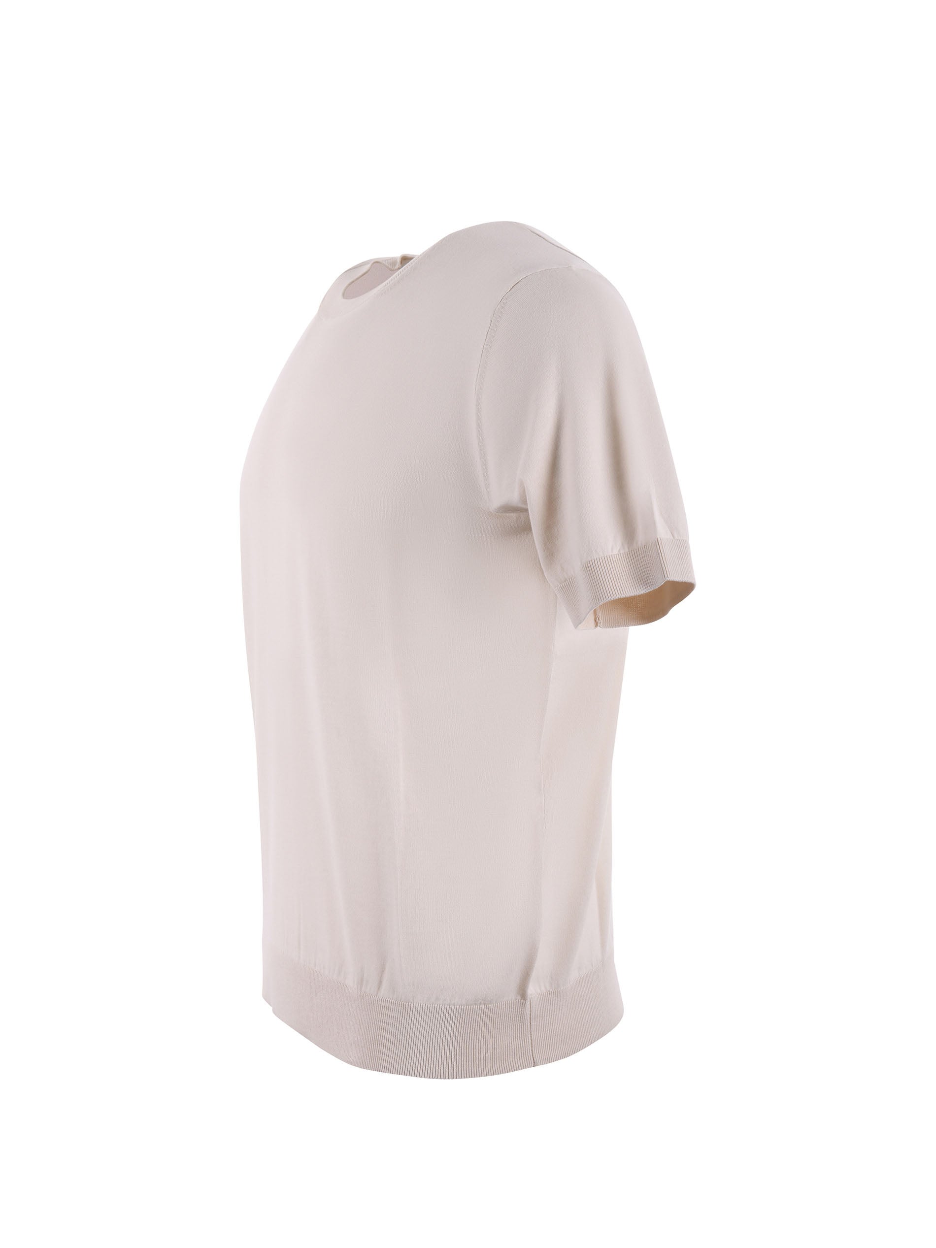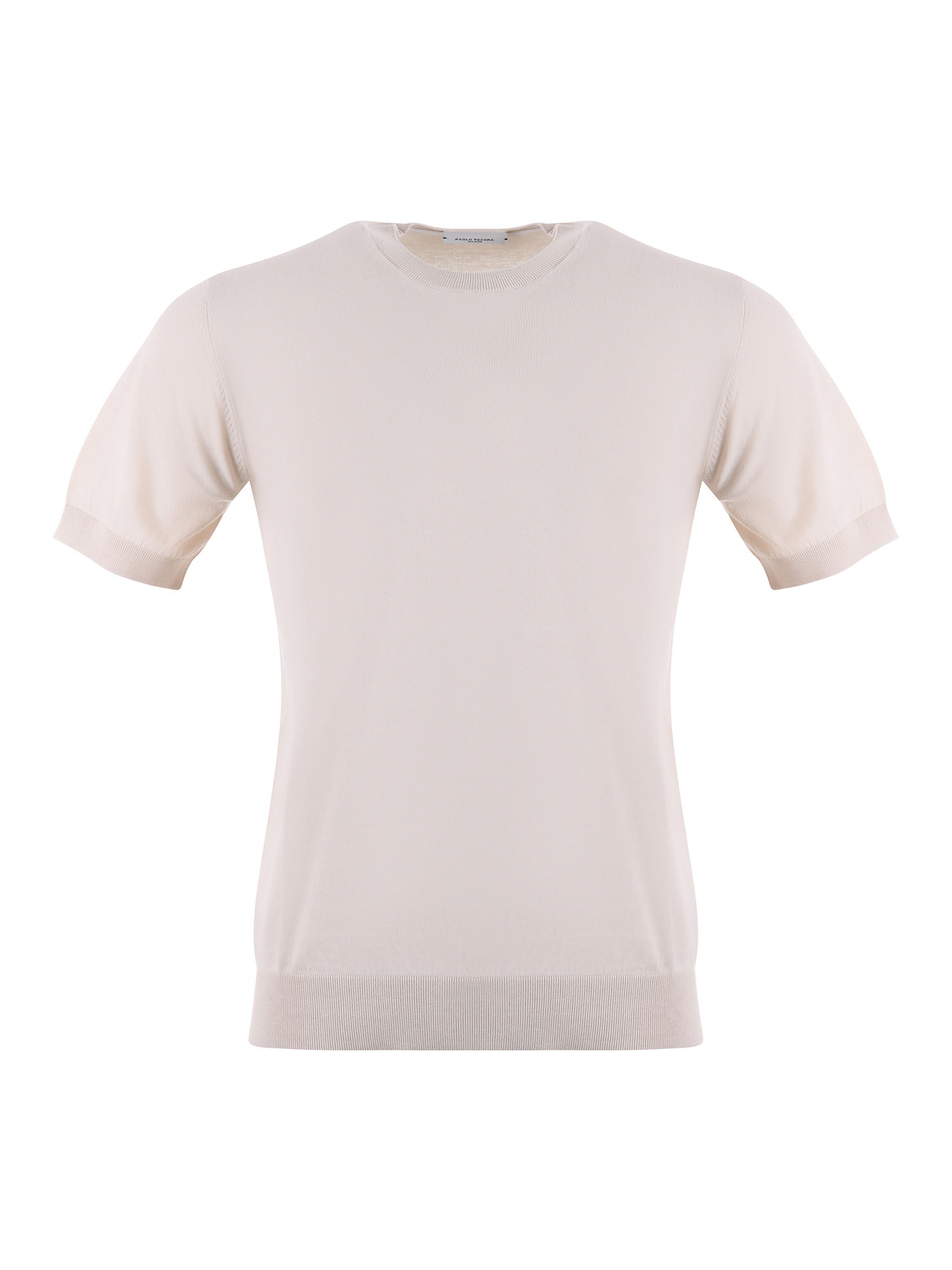 Paolo Pecora T-shirt in light beige thread. Ribbed crew neck. Short sleeves. Ribbed cuffs and bottom. 100% Cotton Measurement in photo L