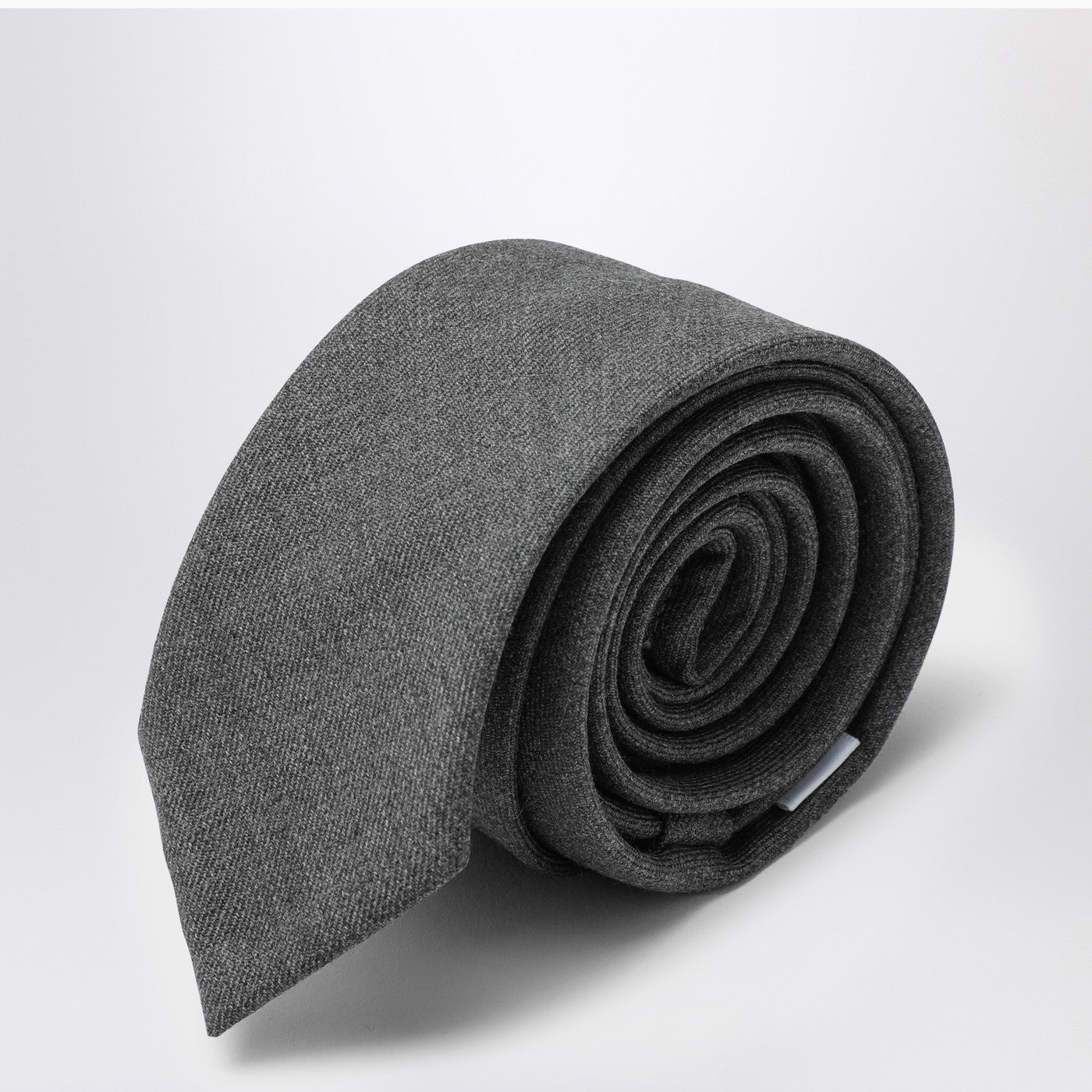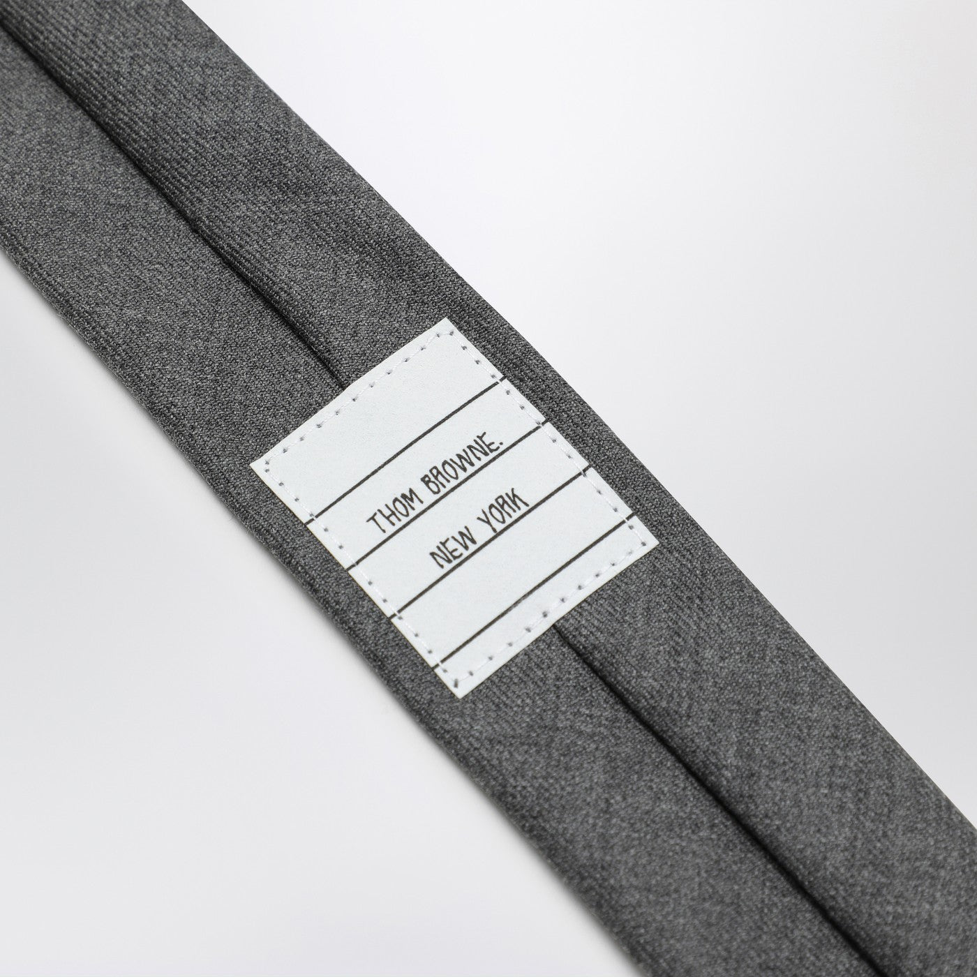 Tie in grey wool by Thom Browne with logo patch on the inside.