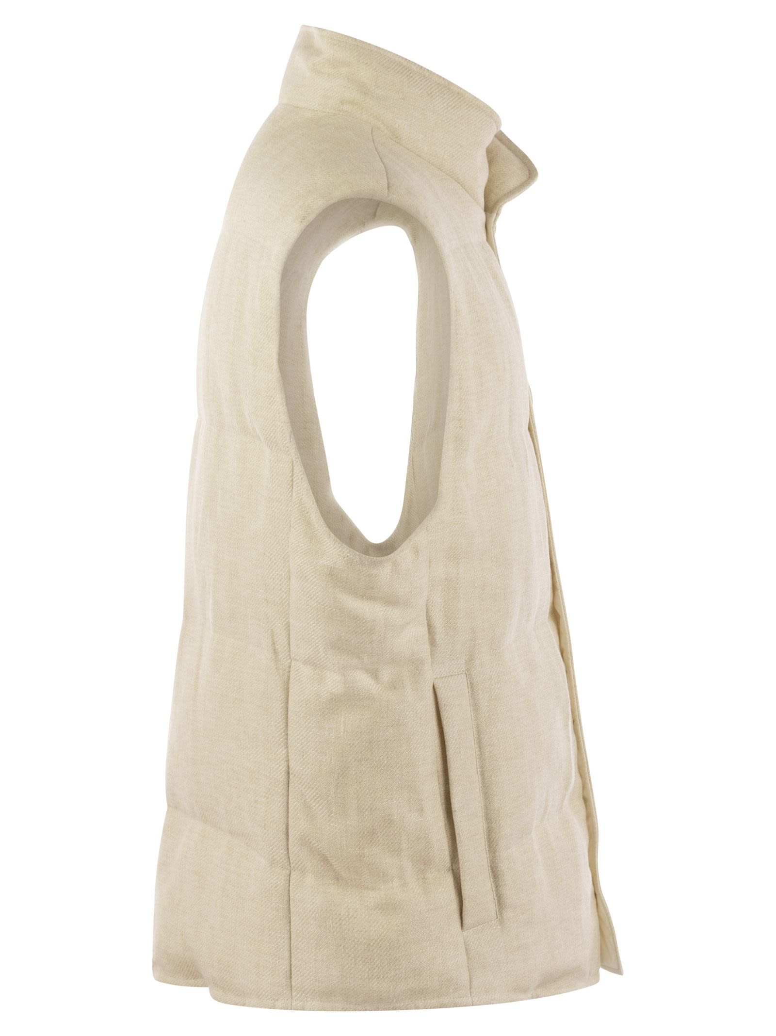 Brunello Cucinelli Linen, Wool And Silk Diagonal Sleeveless Down Jacket