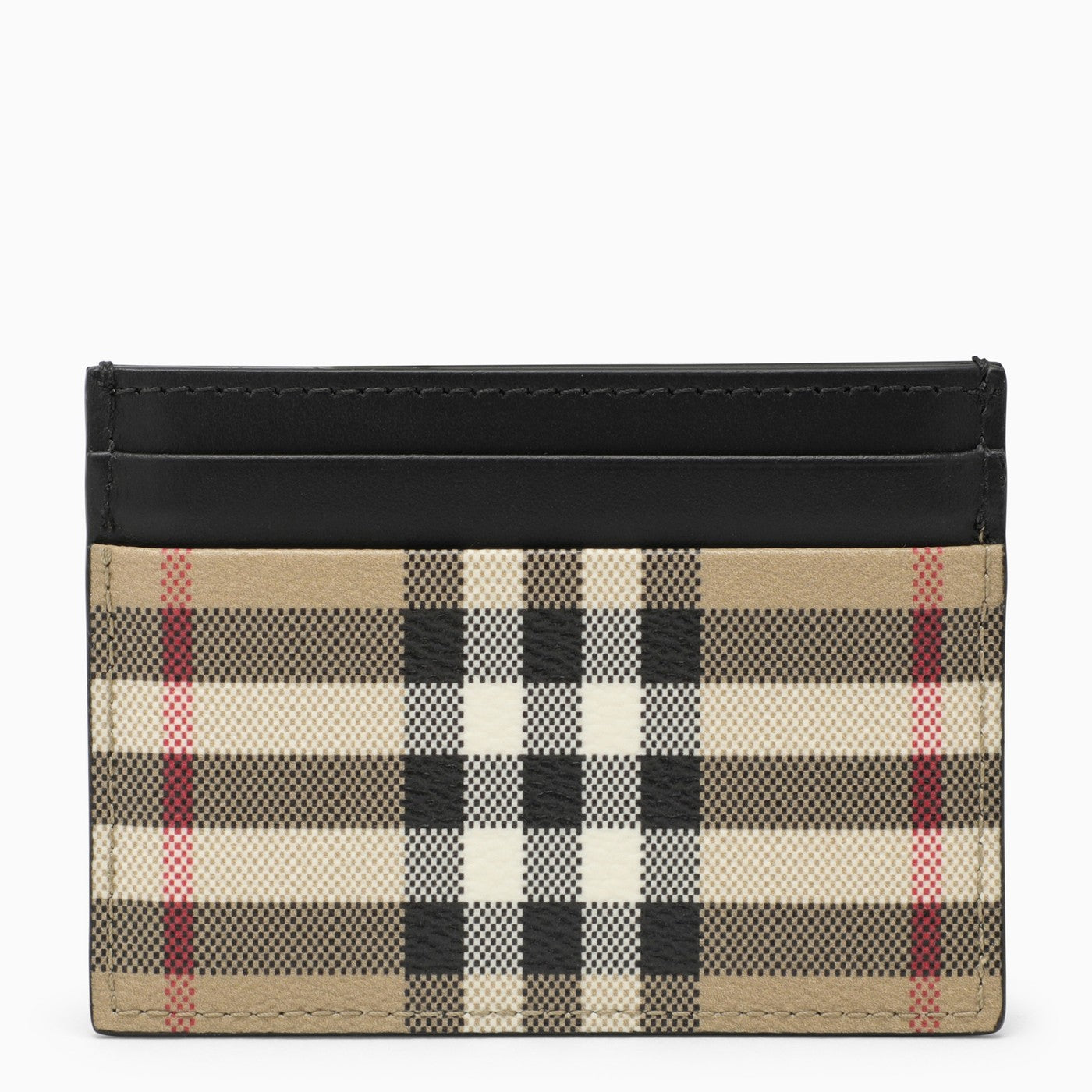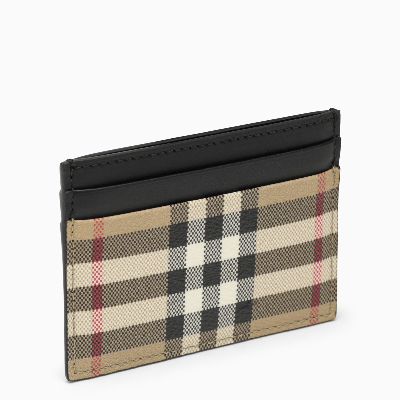 Card case in coated canvas with a Vintage check pattern by Burberry, featuring four card slots and a central envelope compartment.