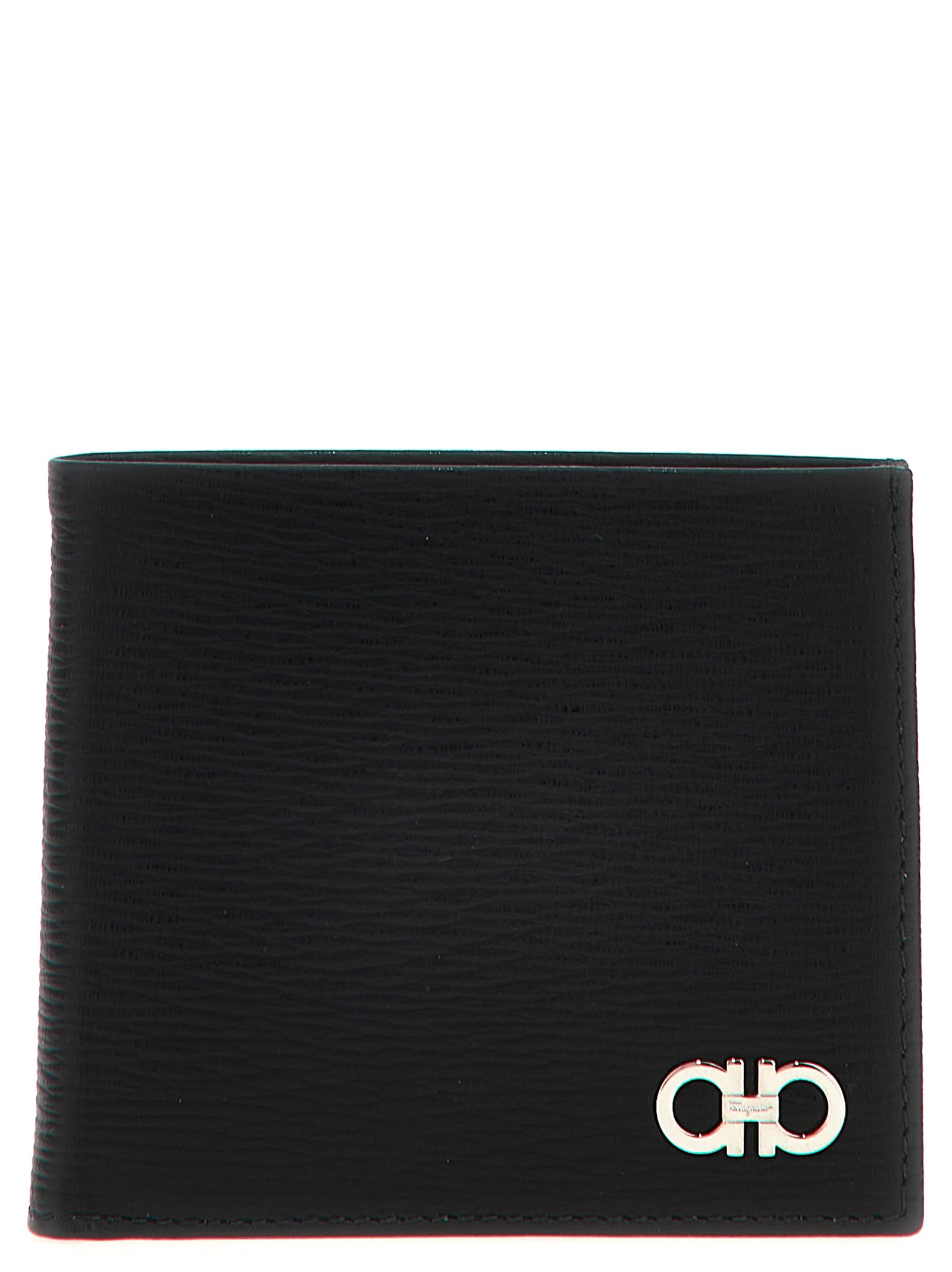 'Revival gancio' textured leather wallet with contrast metal logo and contrasting burgundy interior.