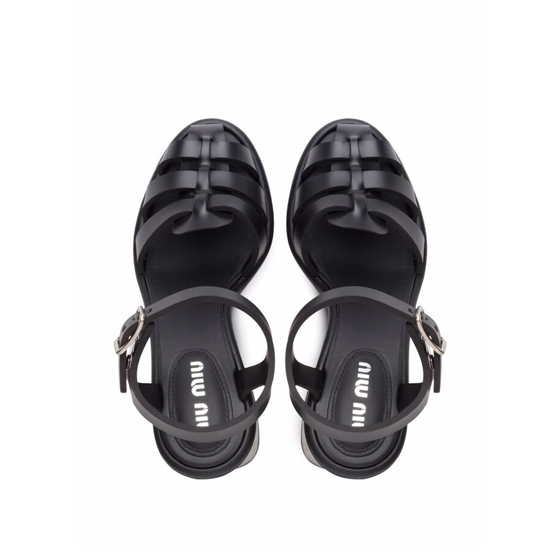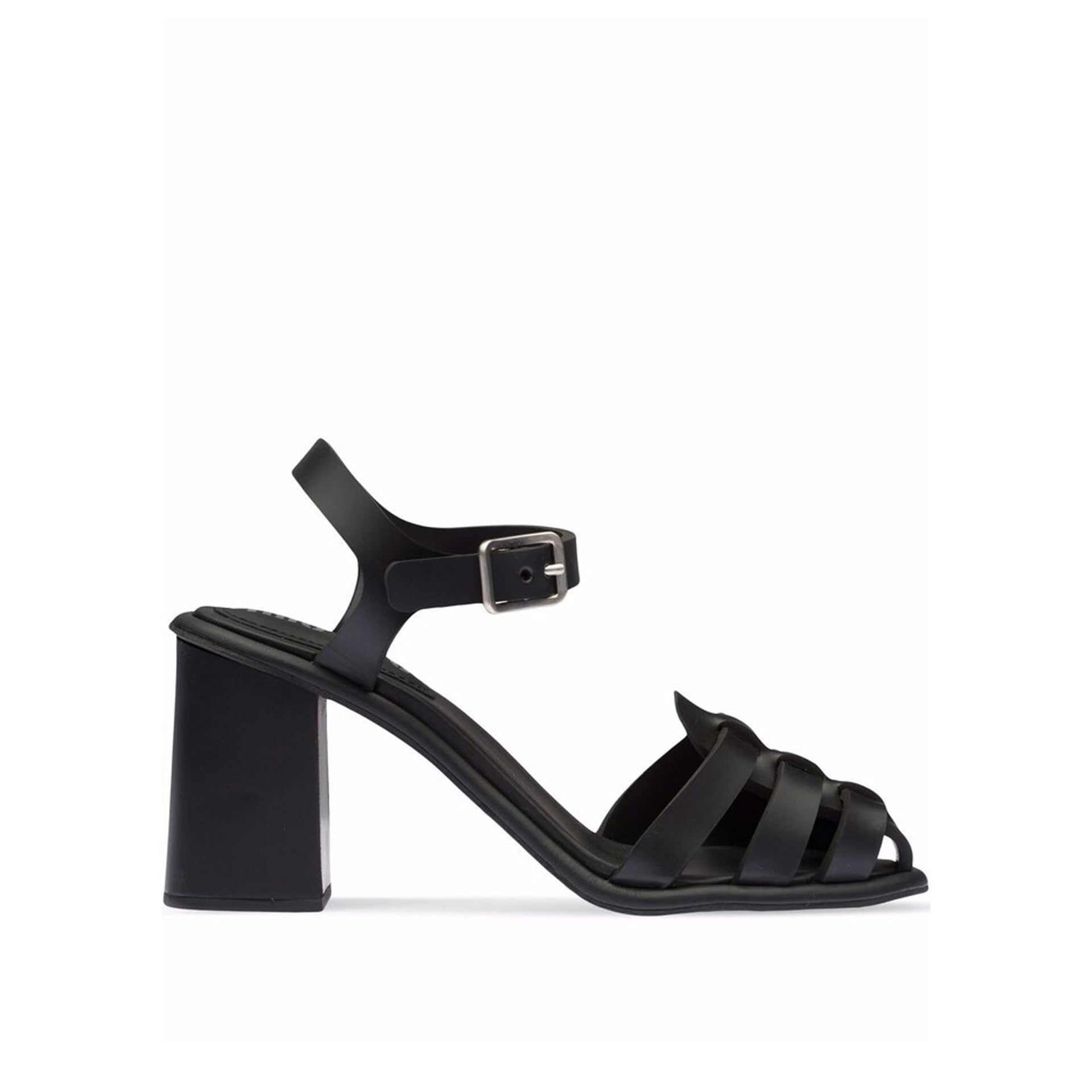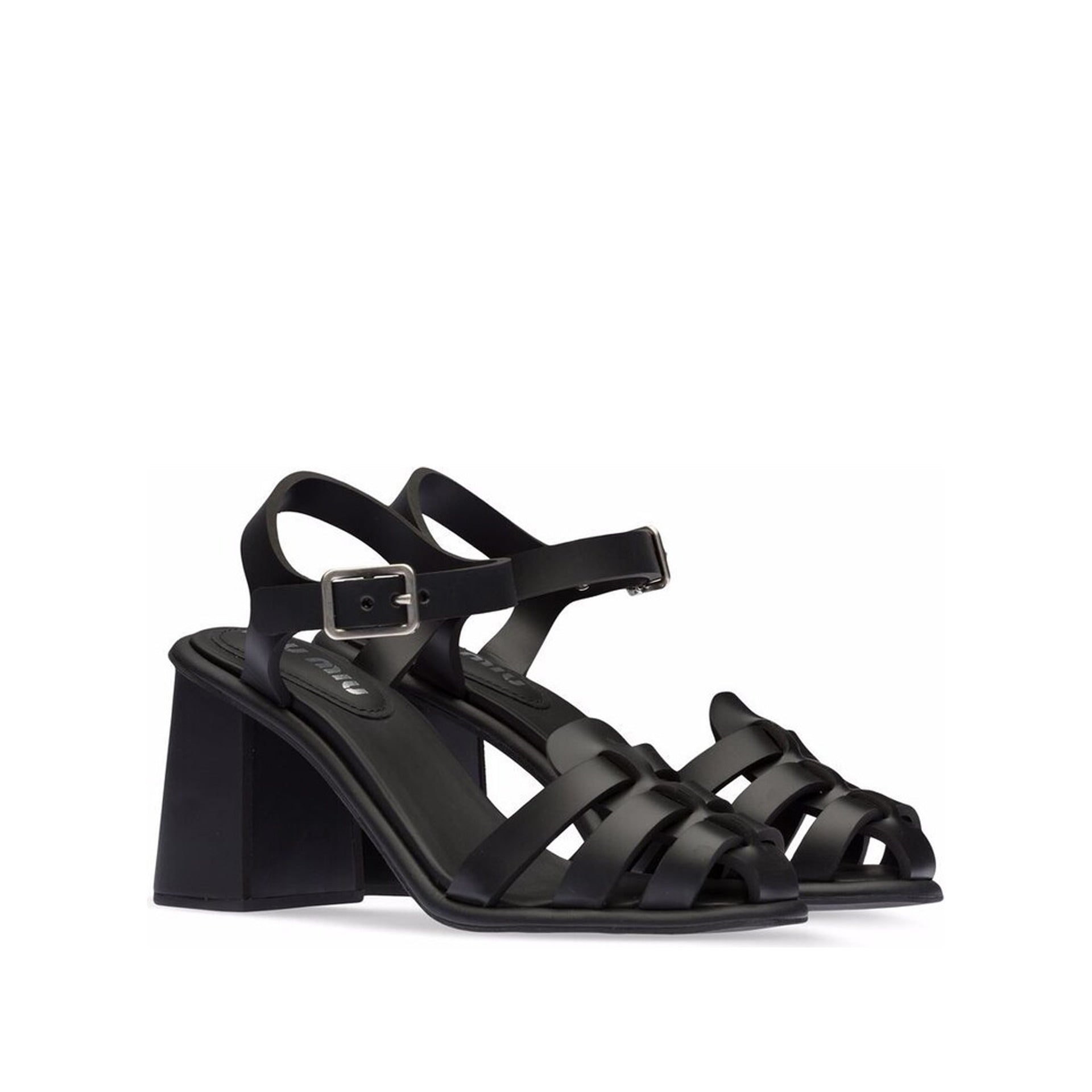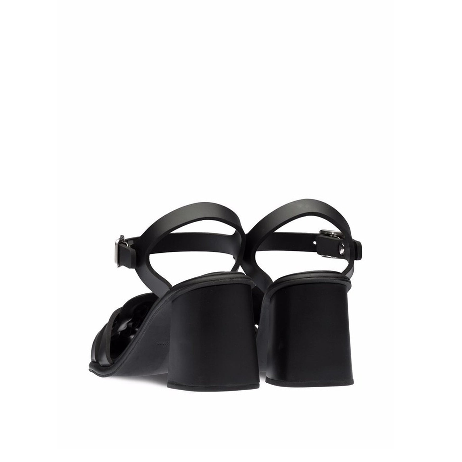 - Composition: 100% calf leather - Inner: Leather - Insole: Leather - Sole: Rubber - Round toe - Open toe - Adjustable buckled ankle strap - Open back - Heel 8,5 cm - Made in Italy -