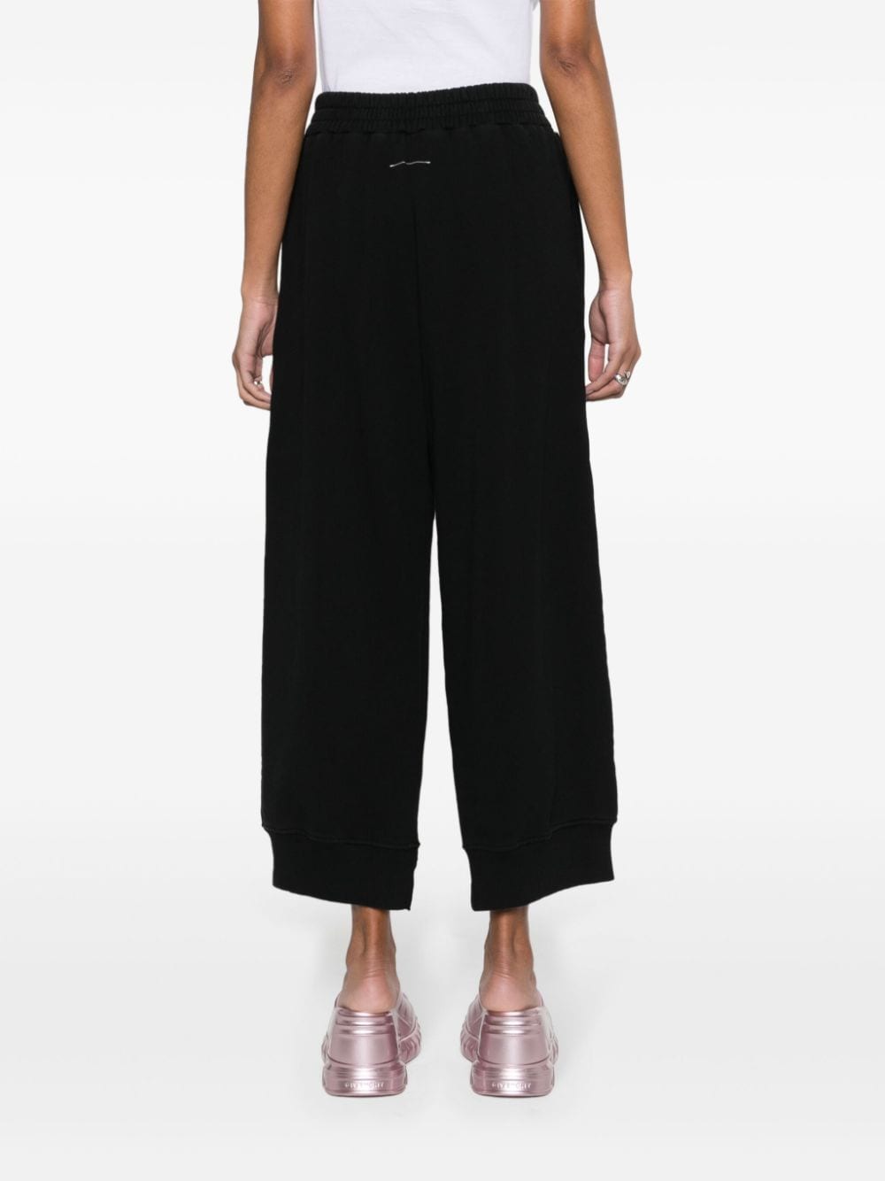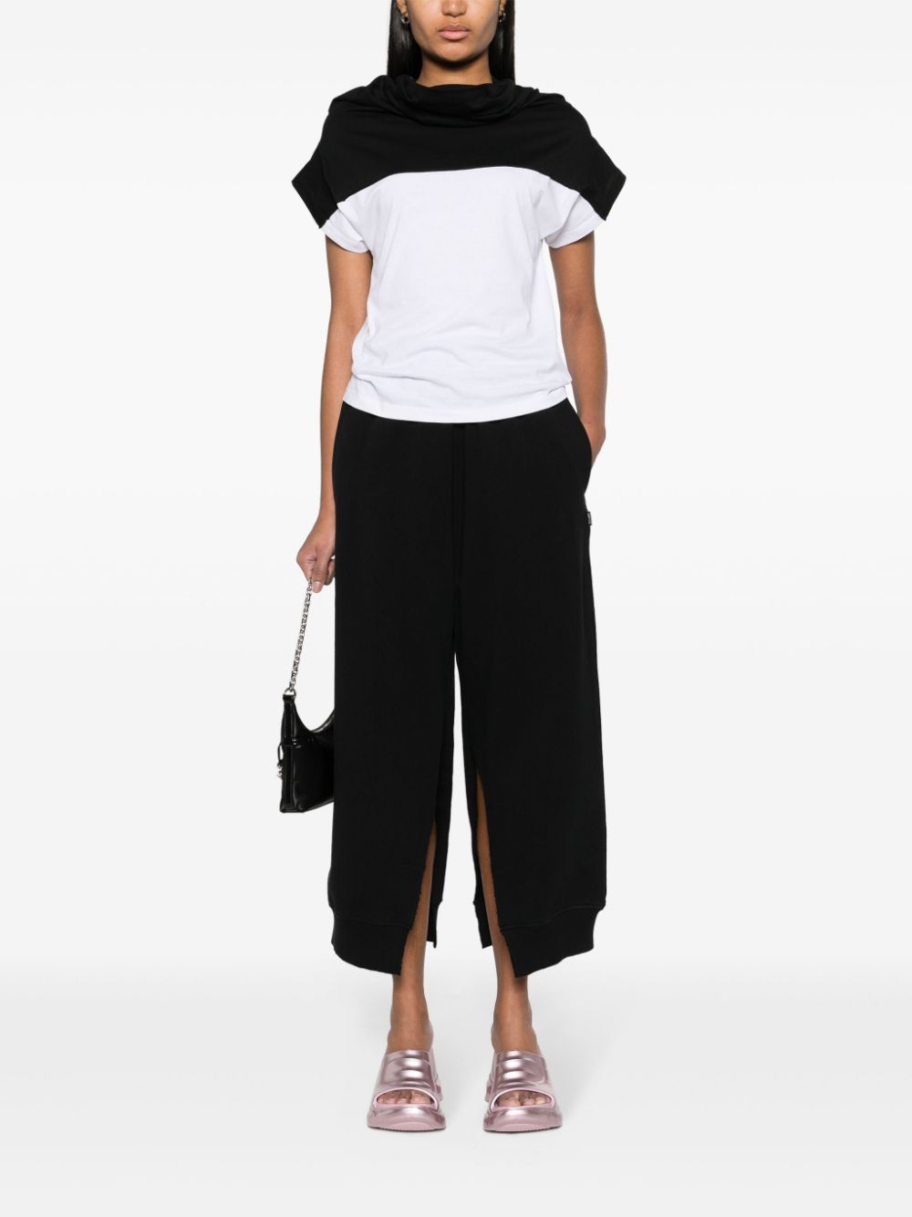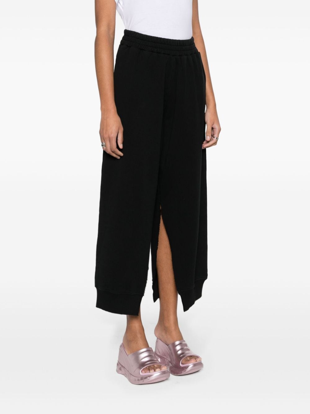 black cotton jersey texture signature numbers motif logo patch to the side signature single-stitch logo straight leg elasticated waistband two side slit pockets side slits ribbed ankles French terry lining