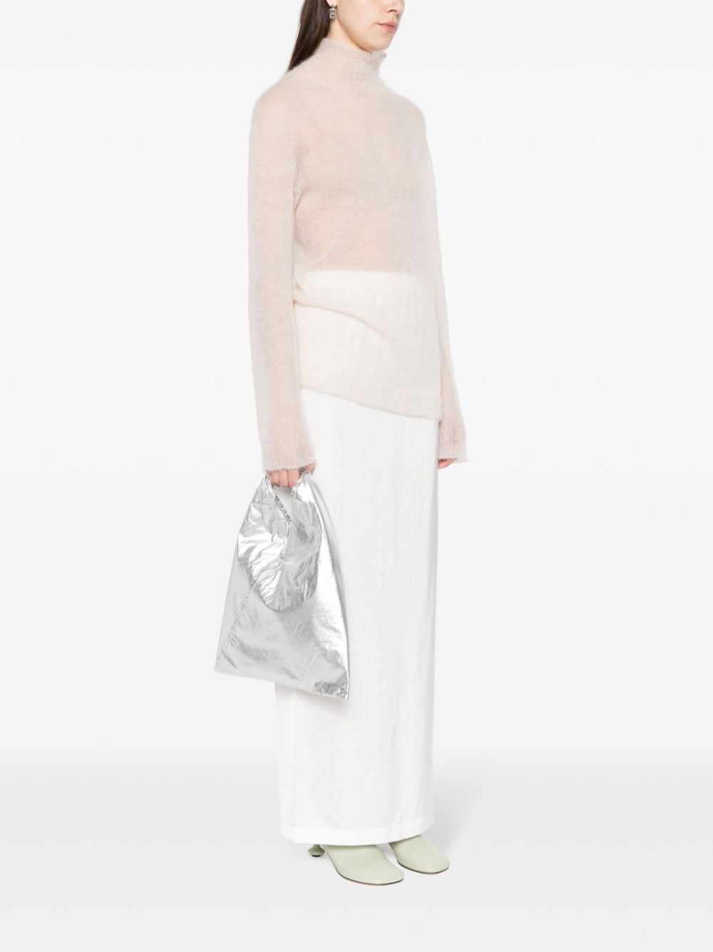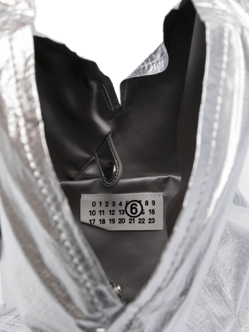 silver-tone crinkled finish metallic effect signature numbers motif to the handle internal press-stud fastening single rolled top handle main compartment full lining This piece comes complete with a protective dust bag.