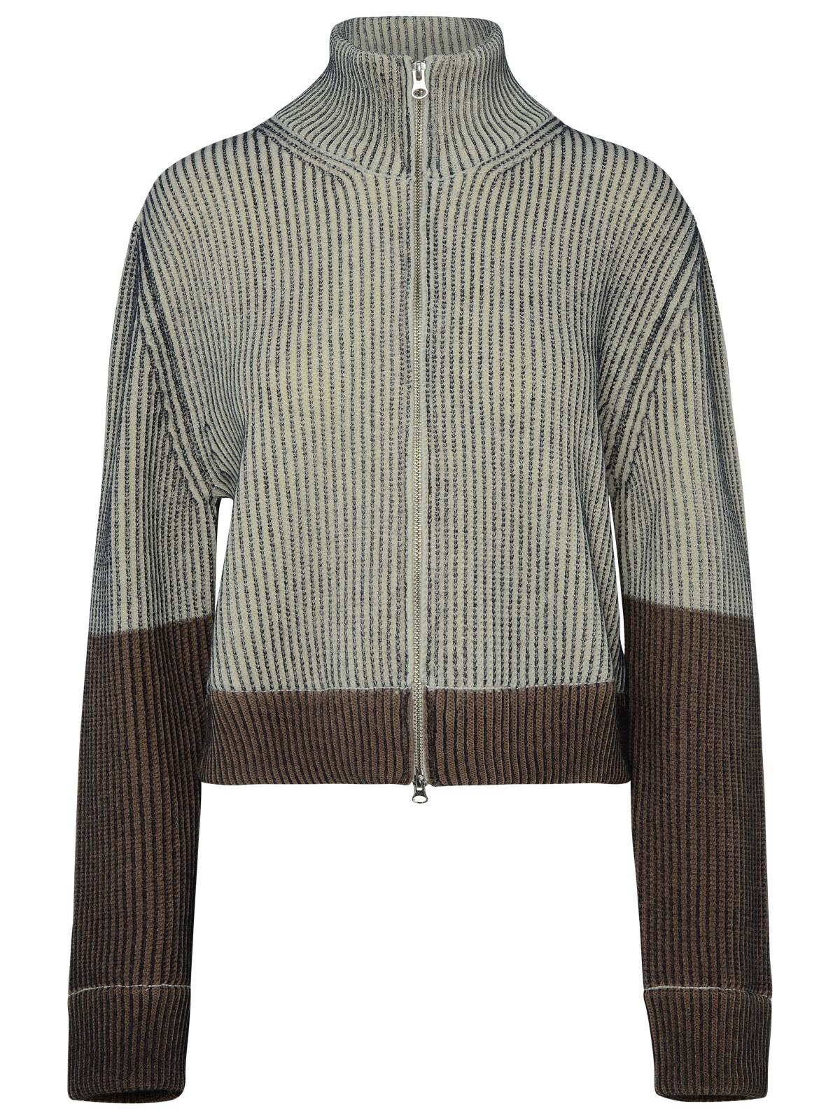 Ribbed high collar, front zip closure, iconic Seam symbol of the House applied on the back, ribbed sleeve bottoms and hem
