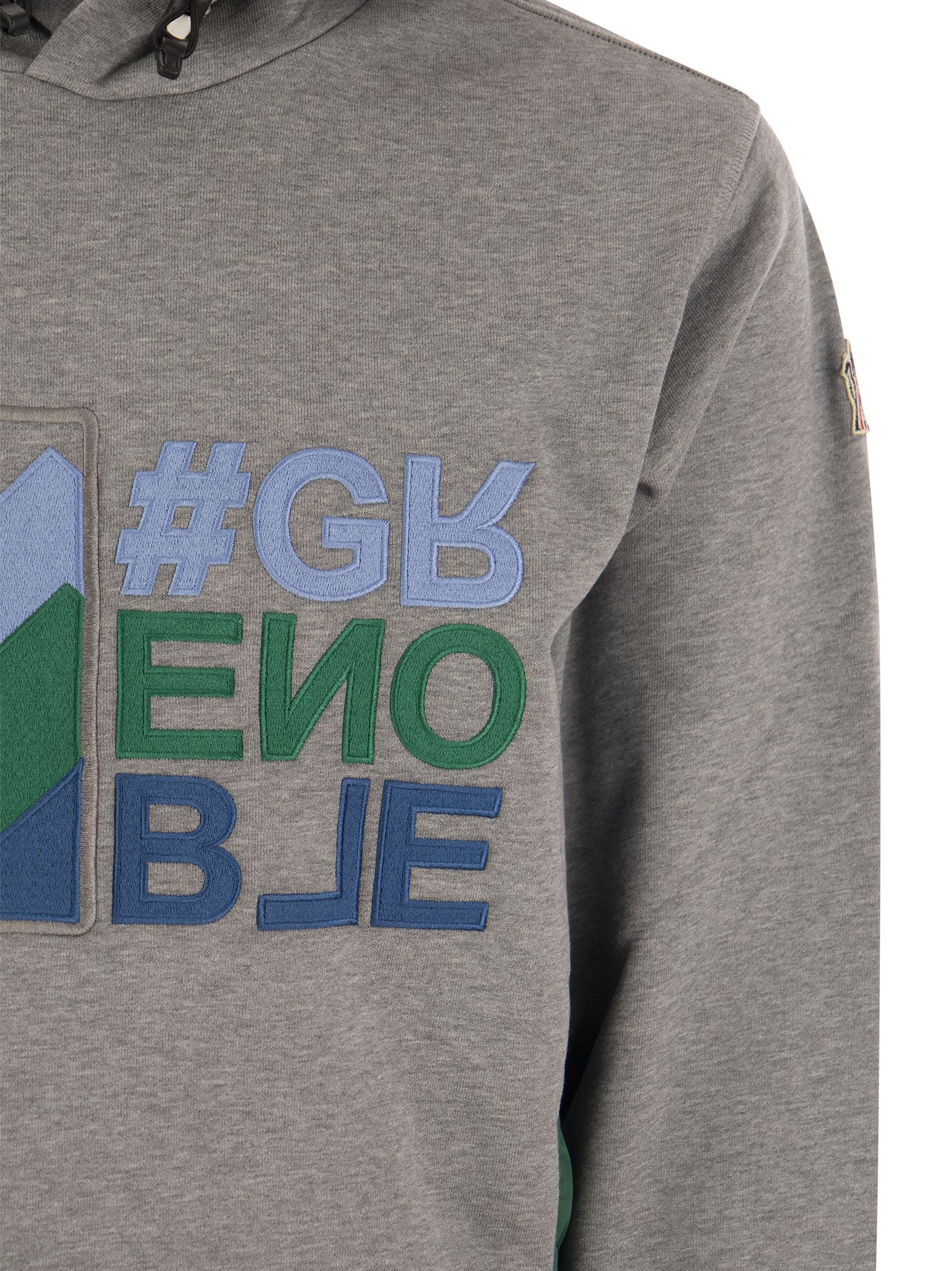 This cotton jersey sweatshirt has a comfortable fit. The embroidered logo patch, reminiscent of Moncler's mountain tradition, embellishes this hooded model. - Made of cotton jersey - Rainwear details - Adjustable hood with cotton jersey lining - Ribbed cuffs and hem - Embroidered logo DESIGNER ID: I20978G0001180451 983