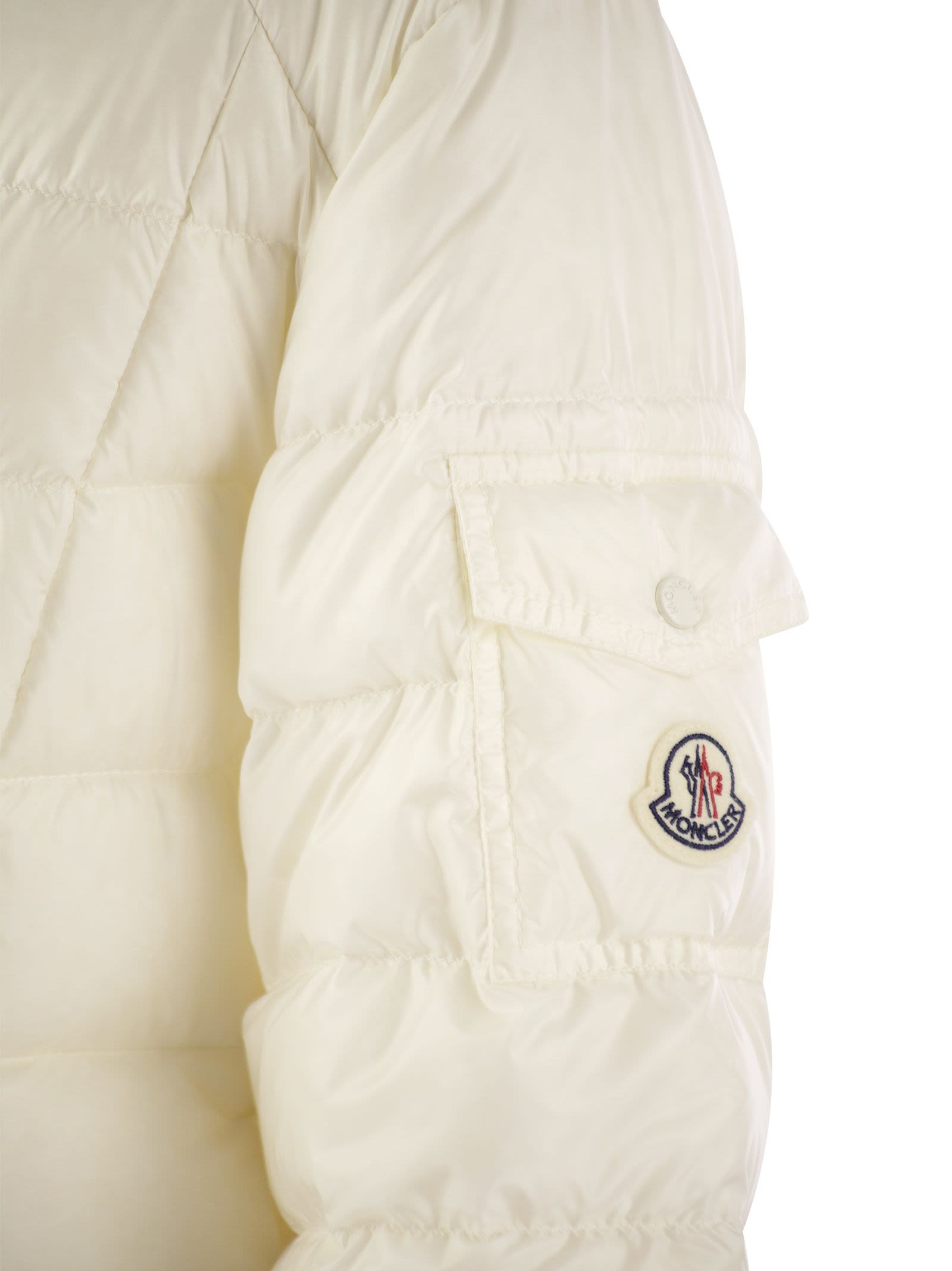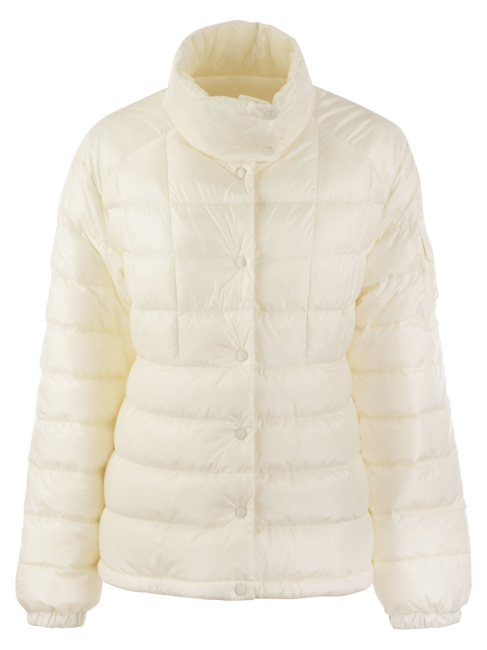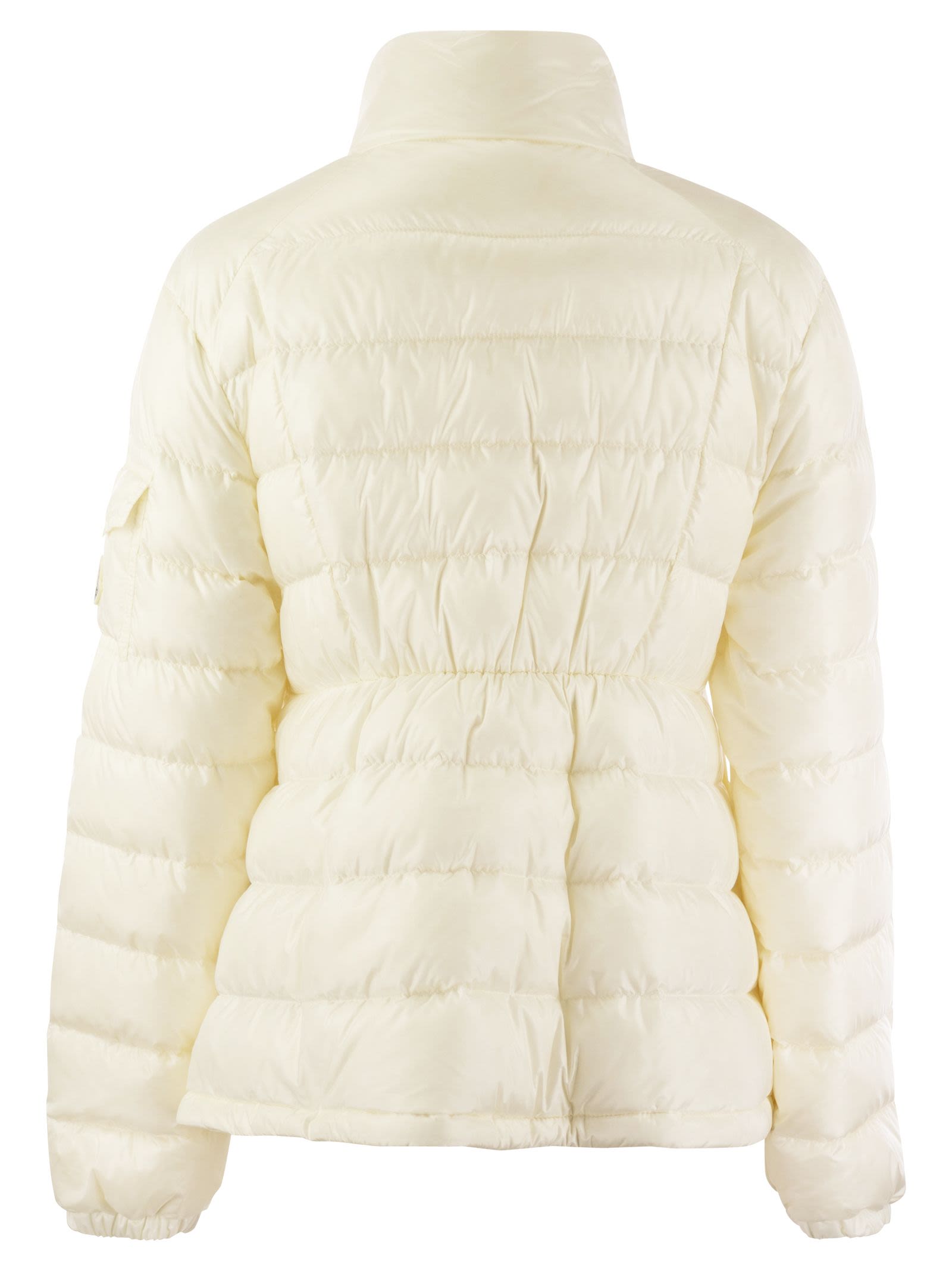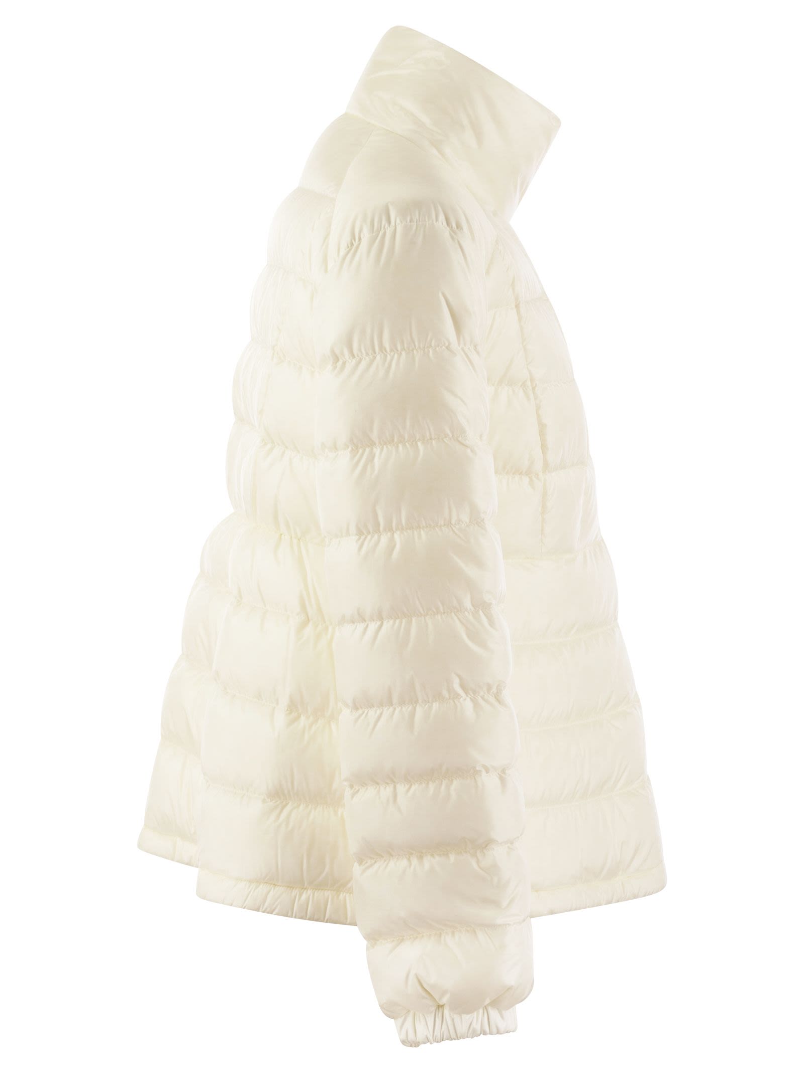 Suitable for everyday life, the Aminia down jacket features a fitted and flared feminine silhouette. This short down jacket is made from longue saison, a water-repellent nylon fabric that provides warmth without sacrificing lightness. The iconic patch pocket on the sleeve adds the final touch of style. - Made from recycled longue saison - Recycled longue saison lining - Down filling - Collar with snap button closure - Snap button closure - Sleeve pocket with snap fastener - Elasticated waist and cuffs - Bottom hem with drawstring DESIGNER ID: J10931A00006595ZZ 034