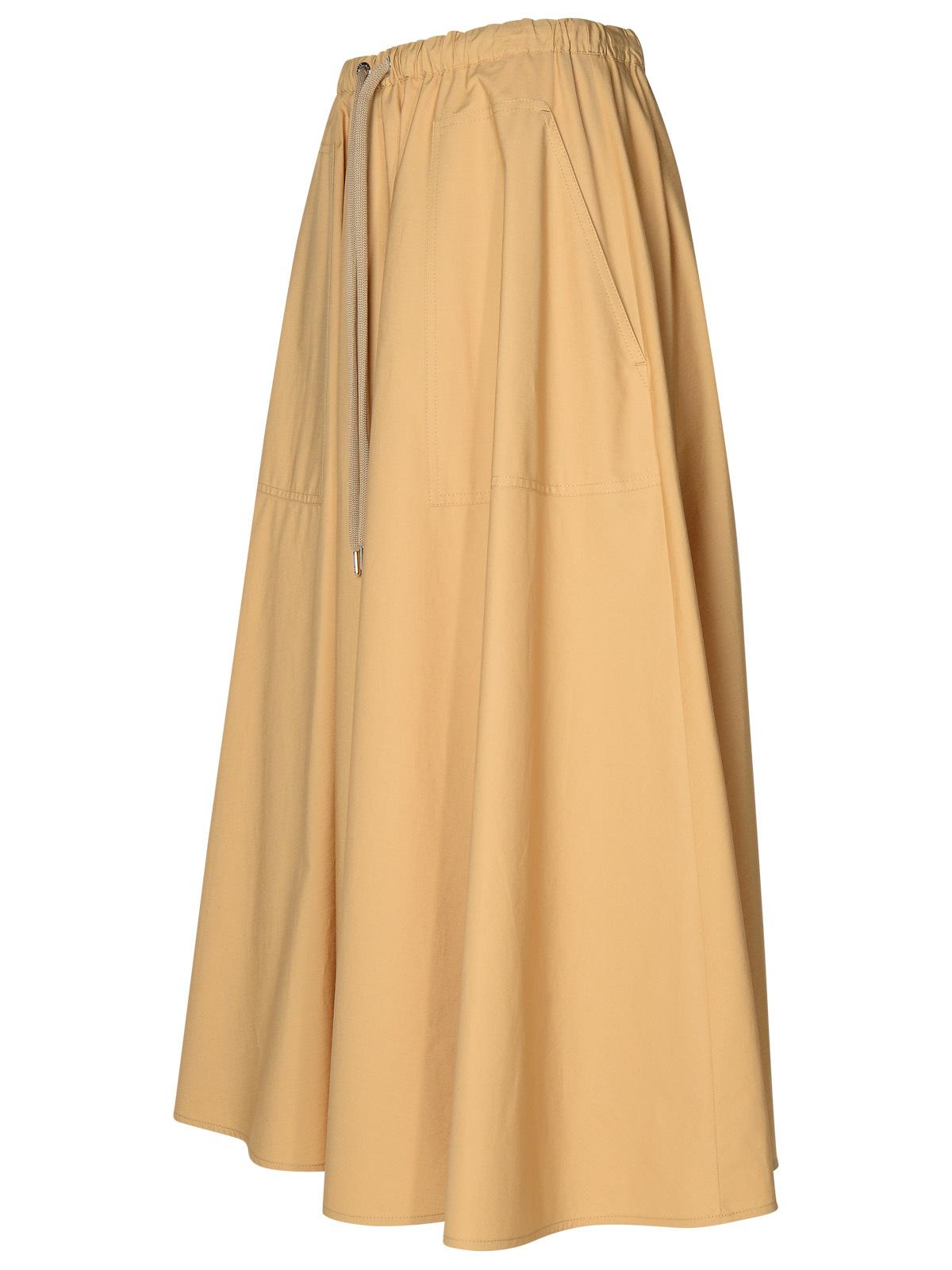 Maxi skirt in silk-touch poplin, drawstring elastic waistband, patch pockets, iconic felt detail on the back.