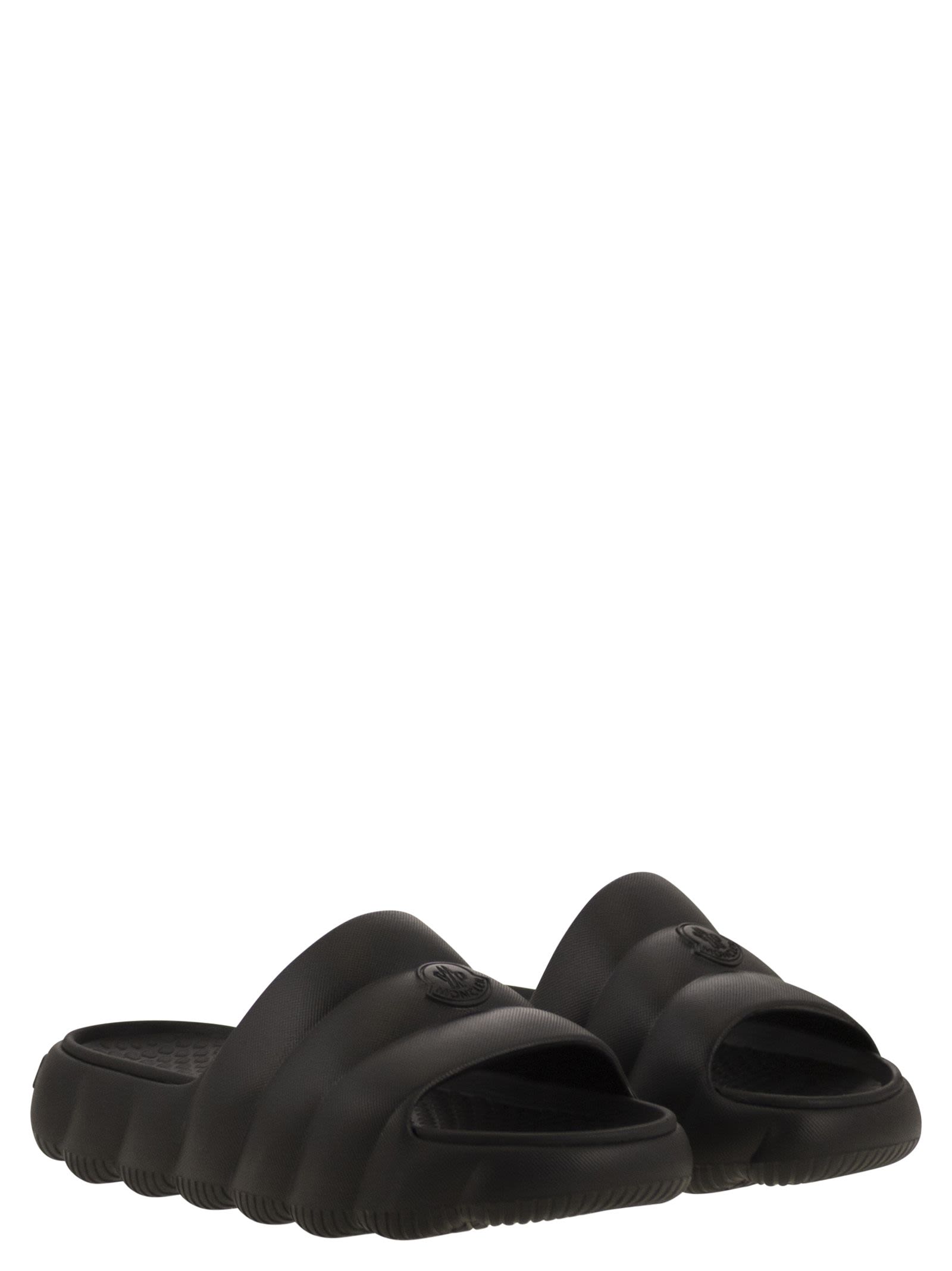 The Lilo slides are inspired by the quilted silhouette of the iconic Moncler down jackets, adapting it to the summer season. Made of EVA, the flexibility and lightness make them a must-have for hot summer days. - EVA upper - EVA sole DESIGNER ID: K109B4C00050M2559 999