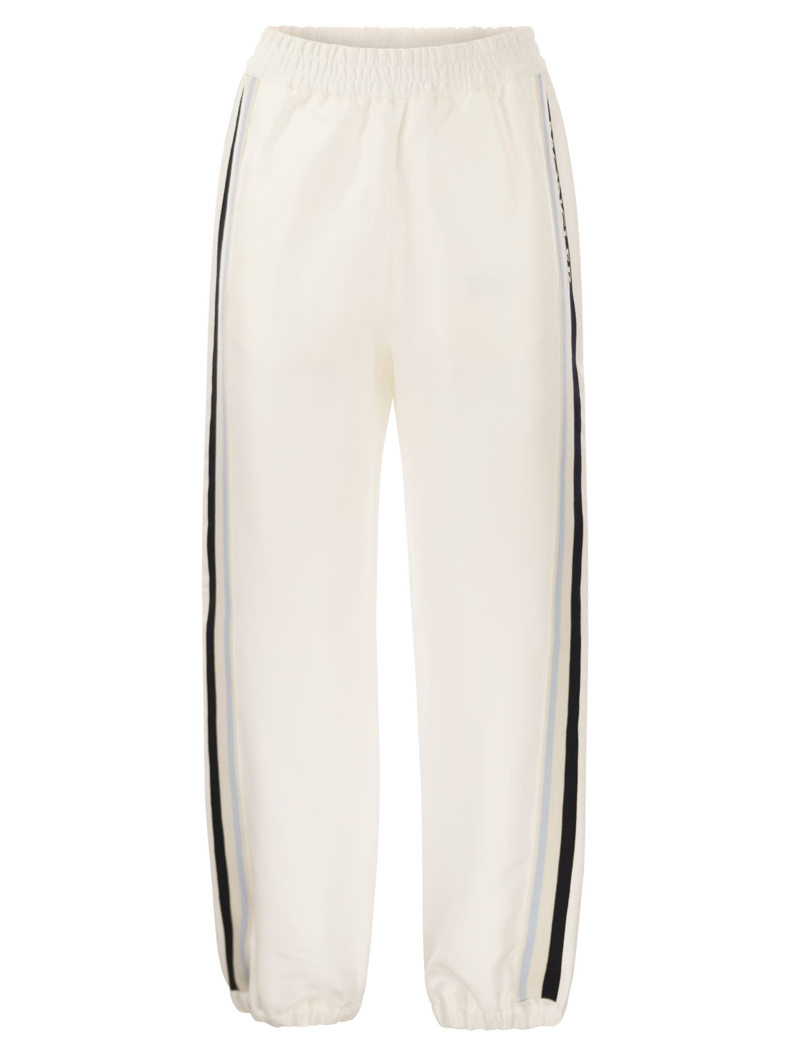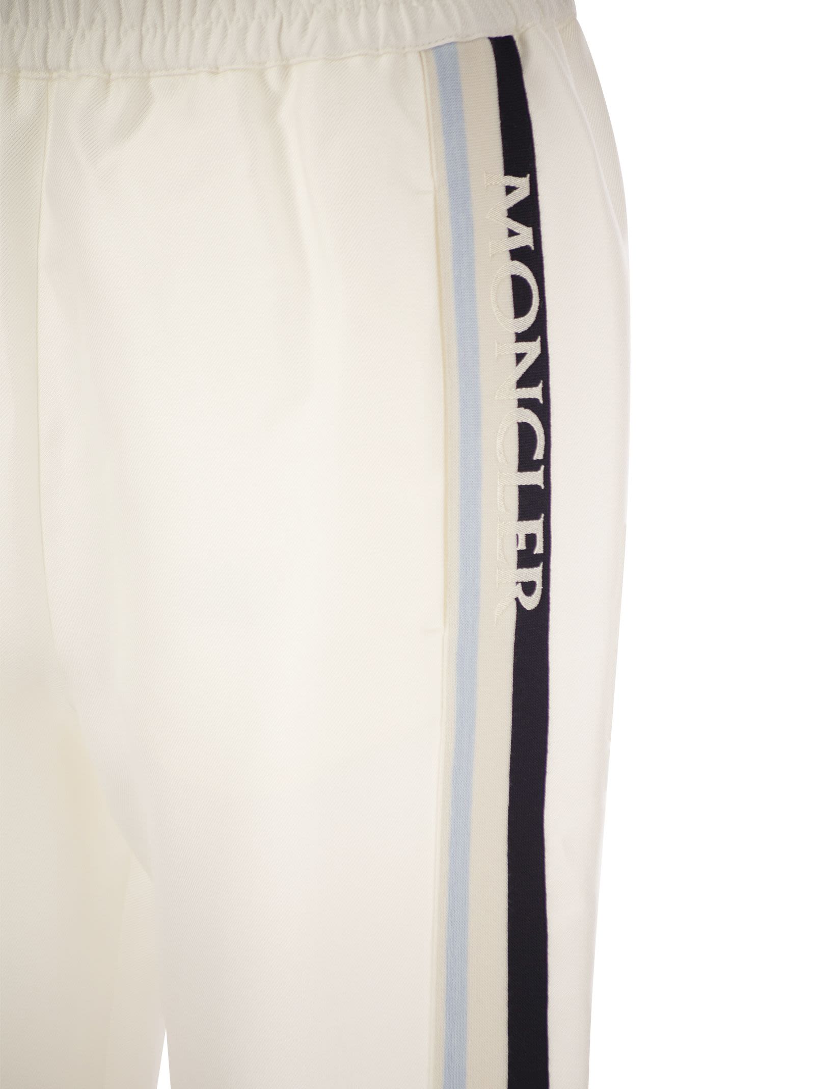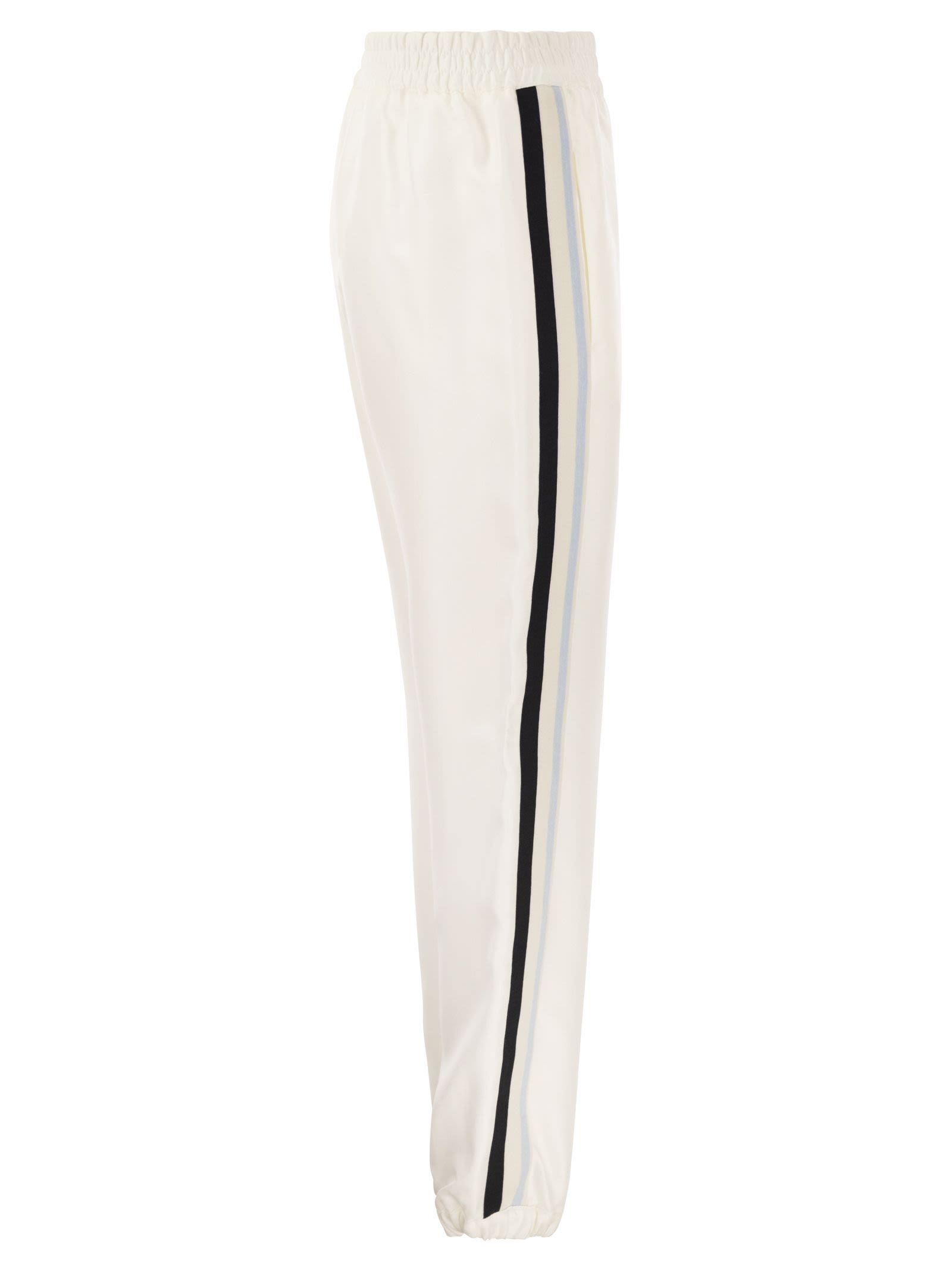 The relaxed cut and elasticated waist and leg bottom make these joggers extremely comfortable. These twill trousers are finished with a knitted logo band along the legs. - Made from fluid twill - Lining in nylon léger - Elasticated waistband - Slanted side pockets - Knitted logo hem along the legs - Elasticated leg bottoms DESIGNER ID: J10932A00001597DR 034