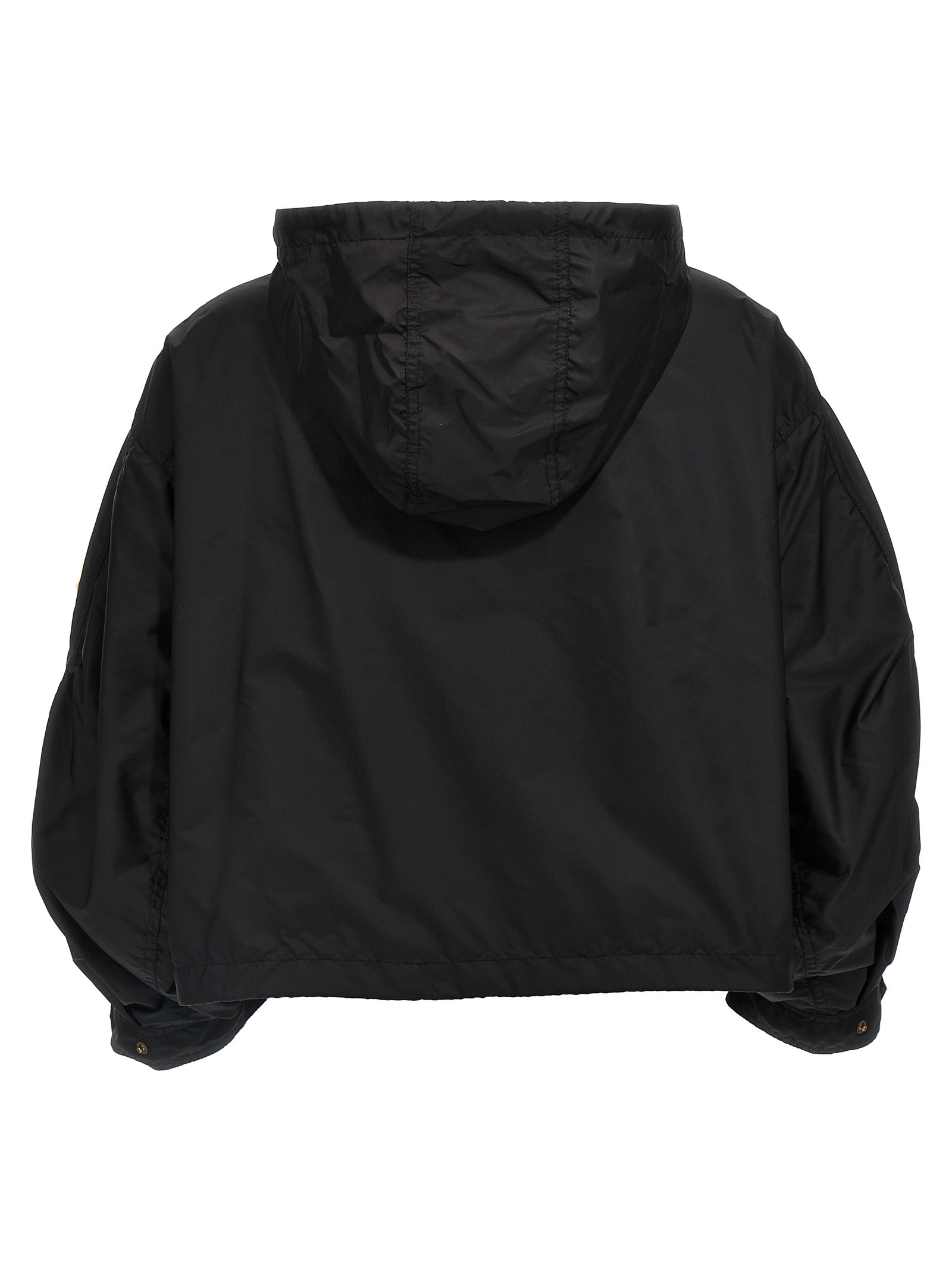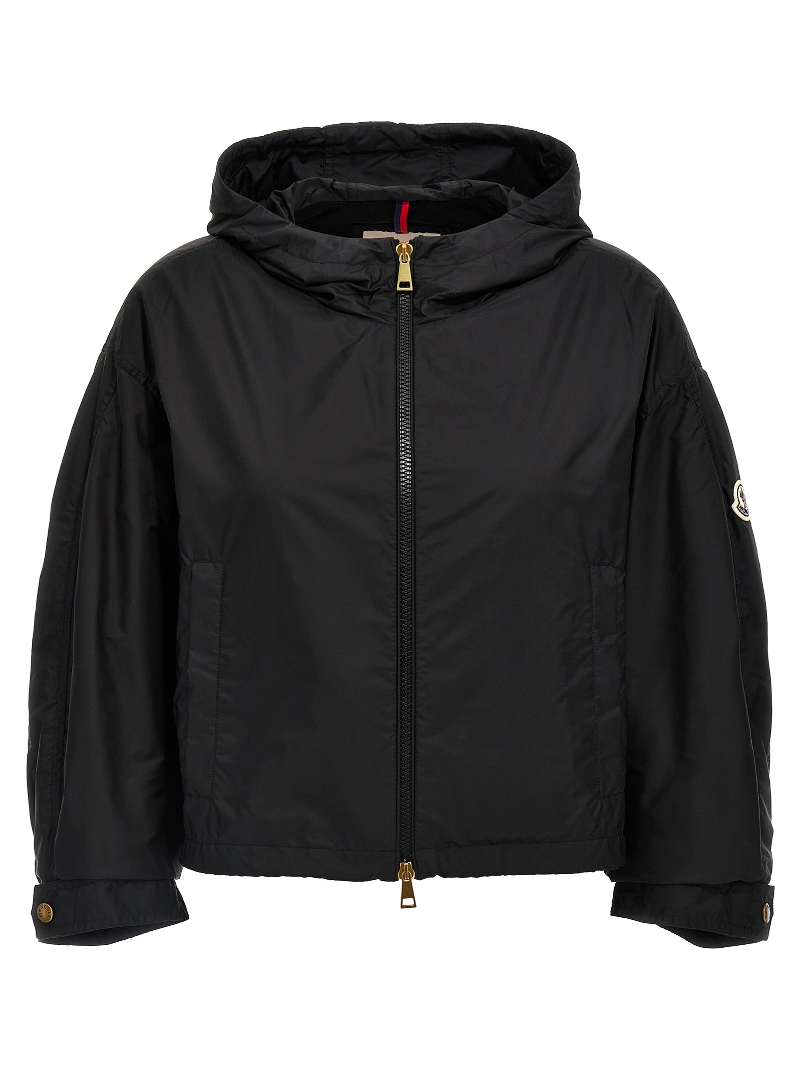 'Vizille' rainwear lightweight rainwear raincoat, micromesh lining, hood with adjustable drawstring, front zip closure, pockets, 3/4 sleeves with cuffs and felt logo patch, drawstring at the hem. SUSTAINABLE: Product made with recycled material.