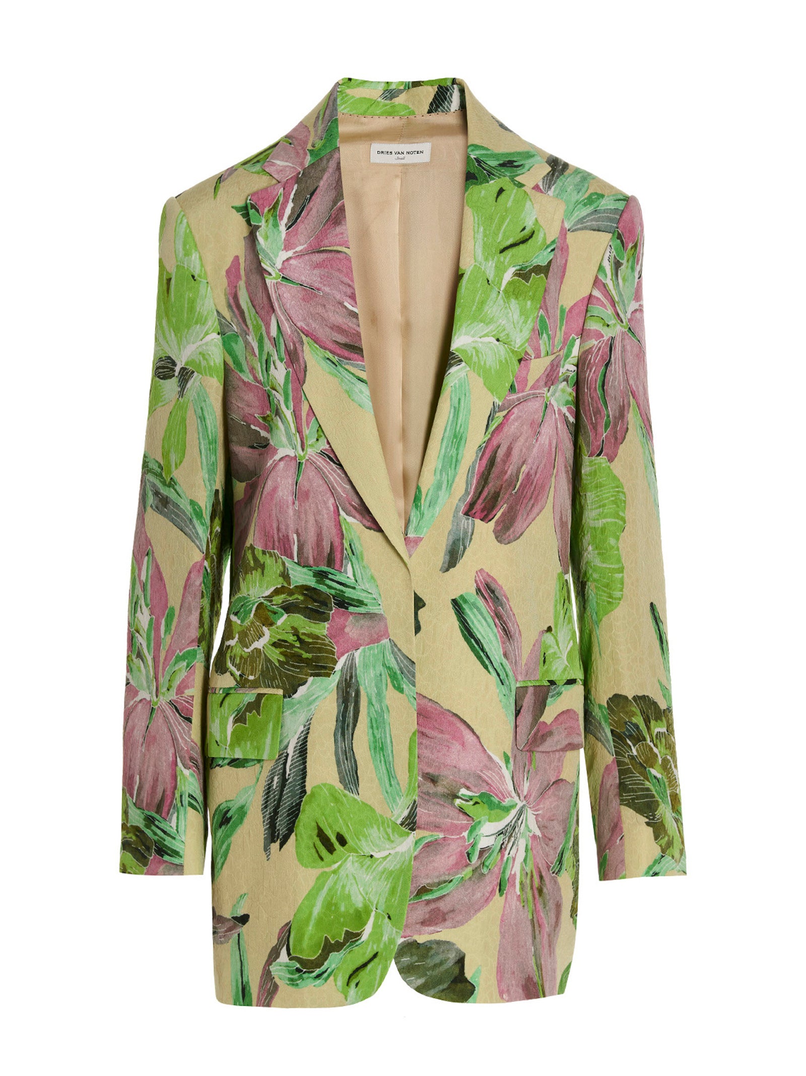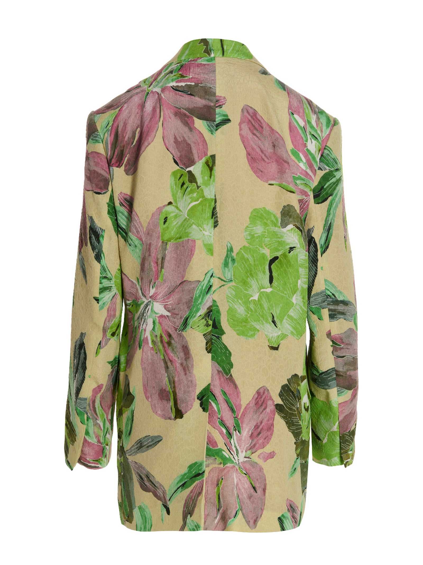 Blur' viscose and silk blazer jacket with all-over jacquard print and pattern, a single breast style with button closure, pockets, long sleeves and a back split.