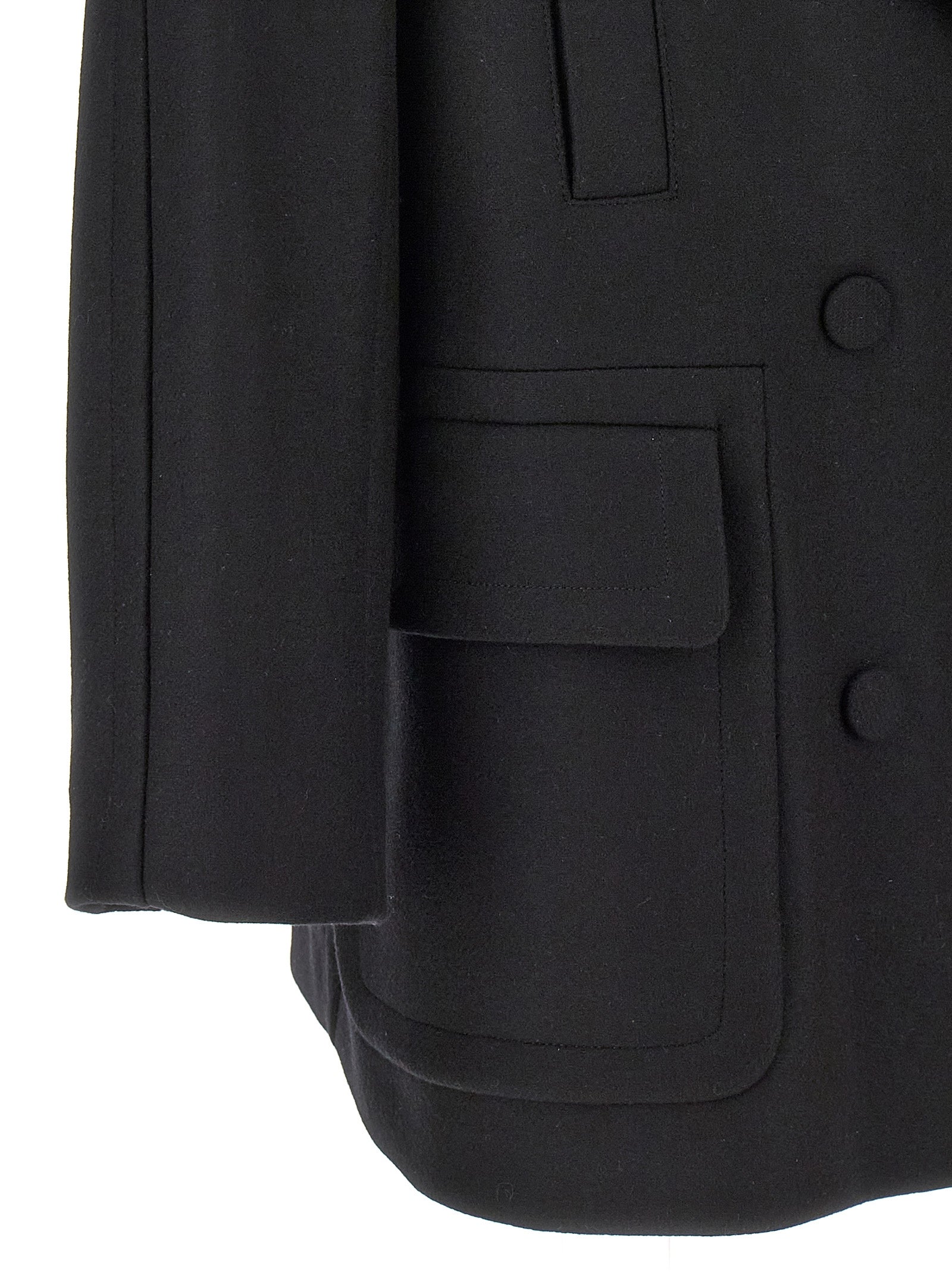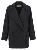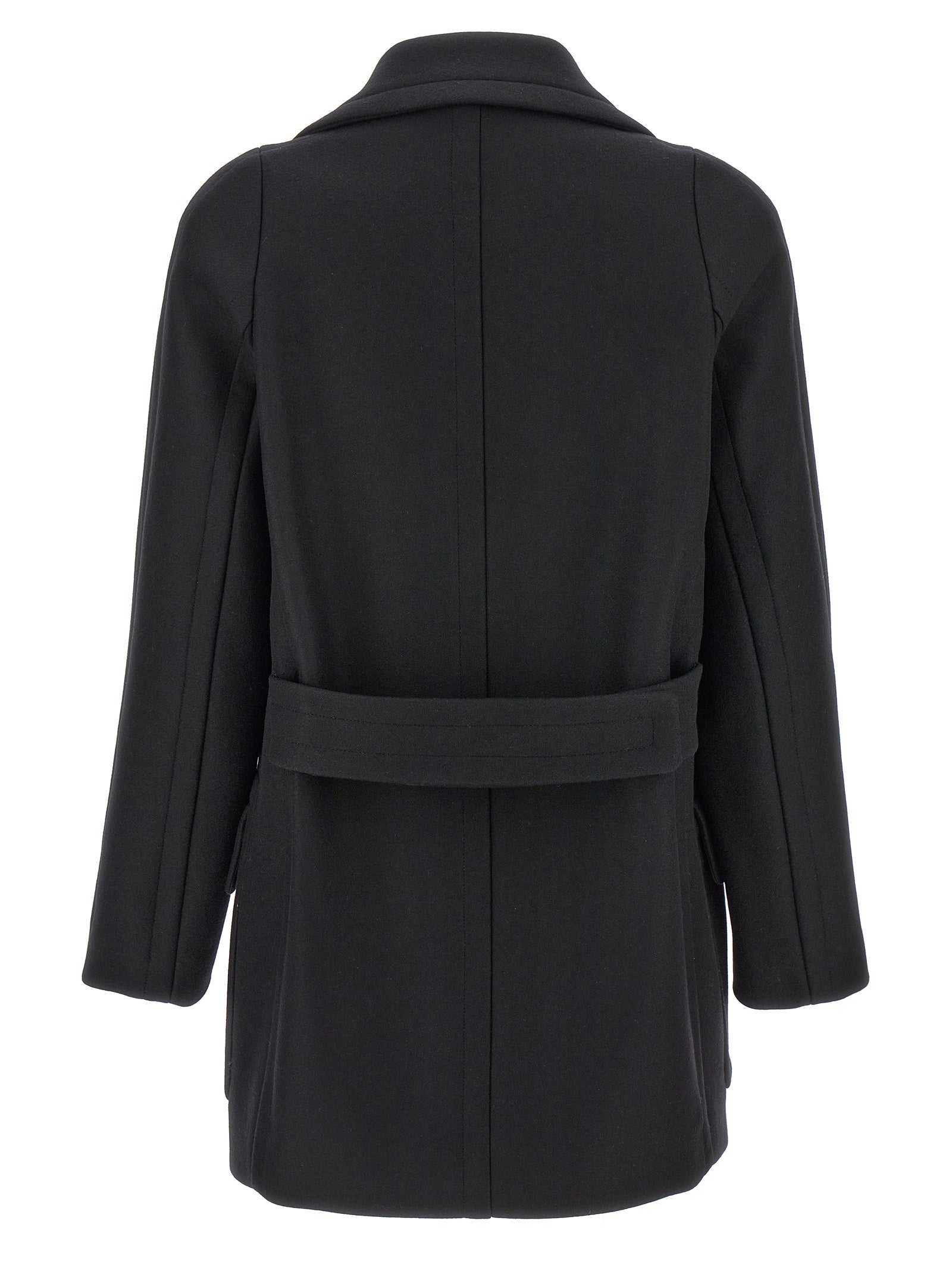 'Randia' double-breasted short wool coat with covered buttons, side pockets, lapel neckline, martingale at the back.