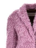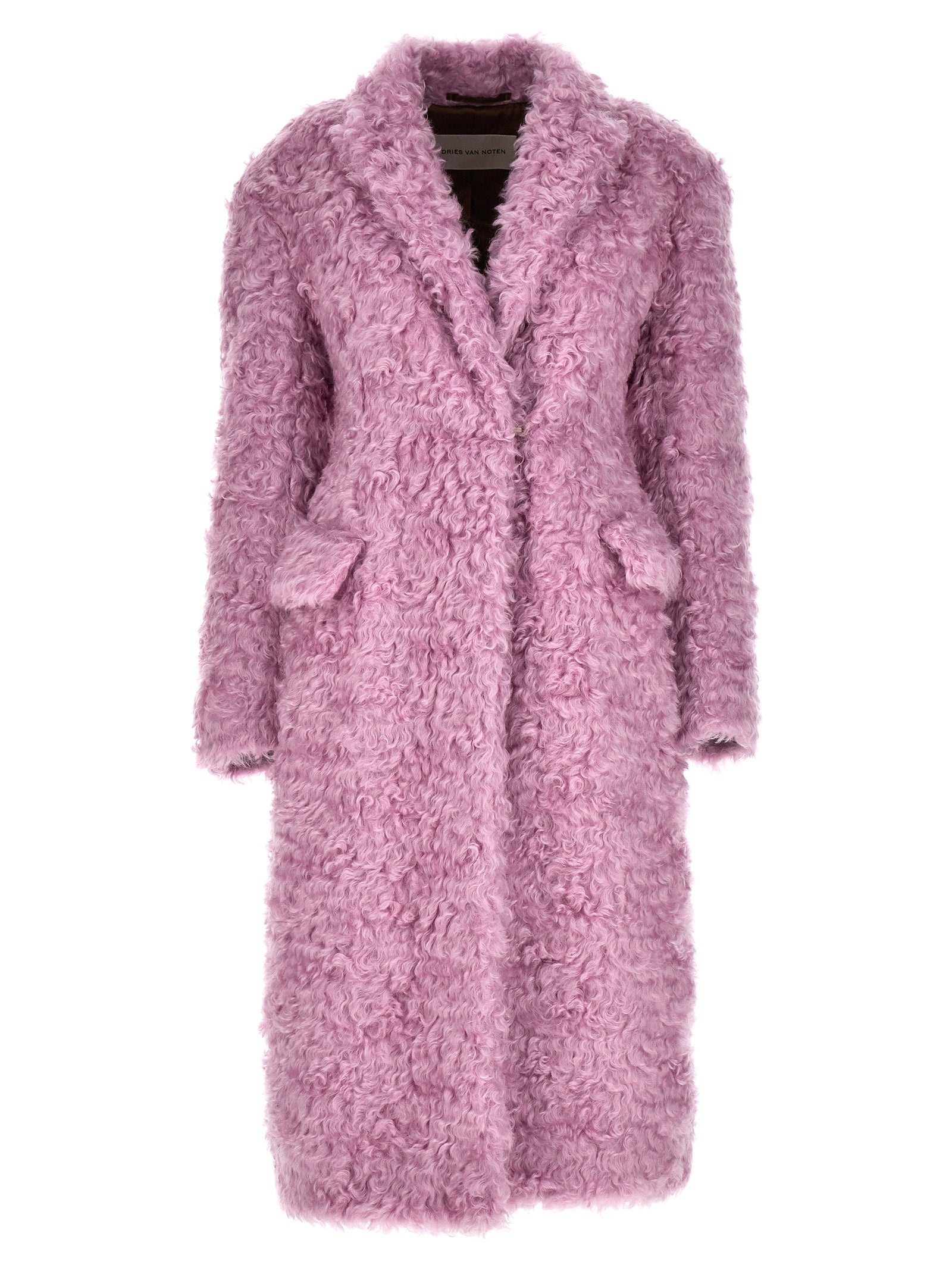 'Redys' mohair blend fur coat with front hook closure, pockets, long sleeves, back split.