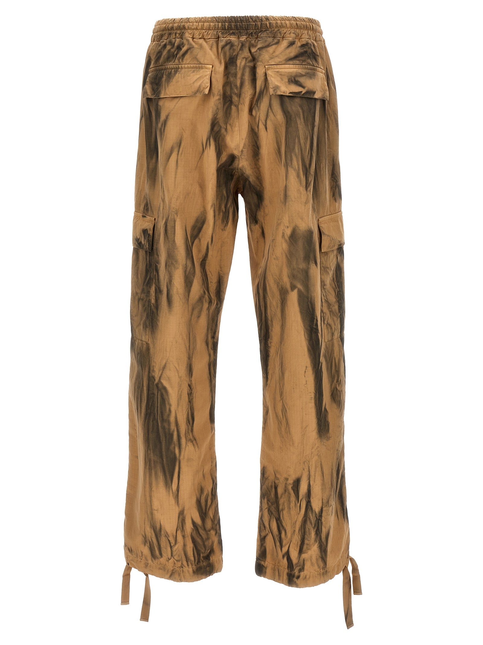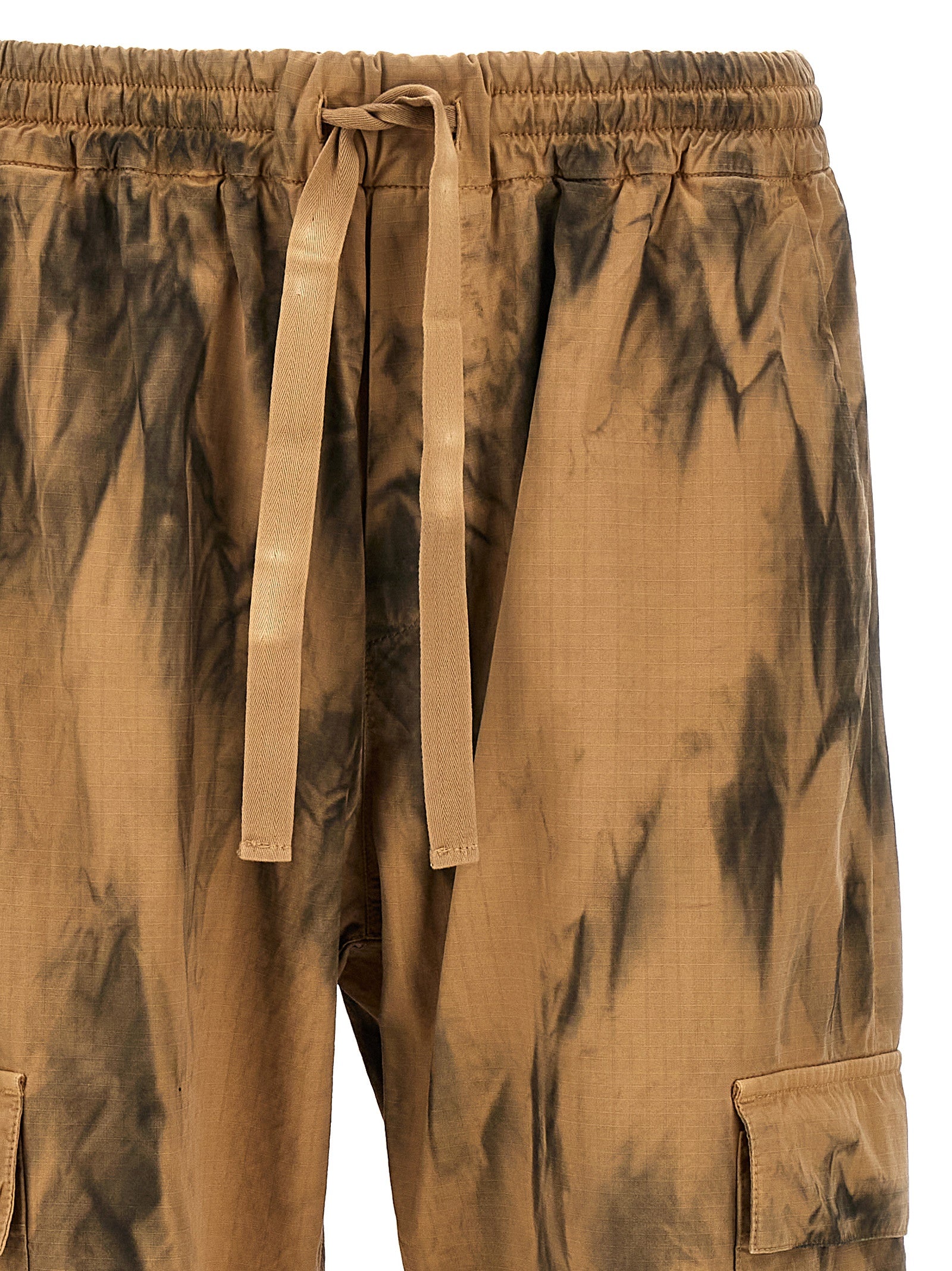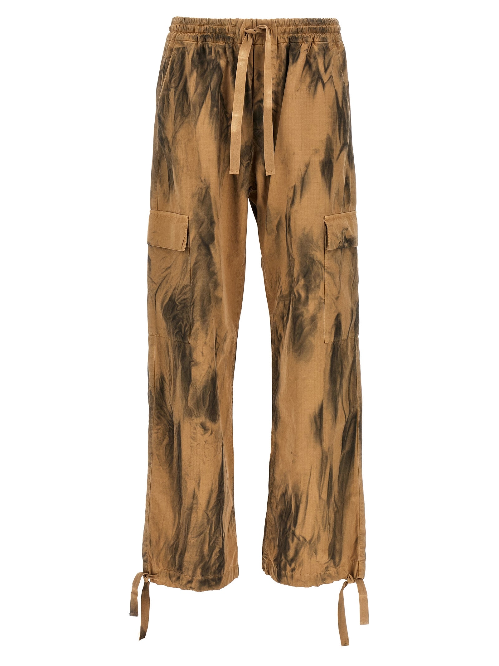 Dirty-effect ripstop cotton cargo pants, drawstring elastic waistband, pockets, adjustable drawstring at the hem.