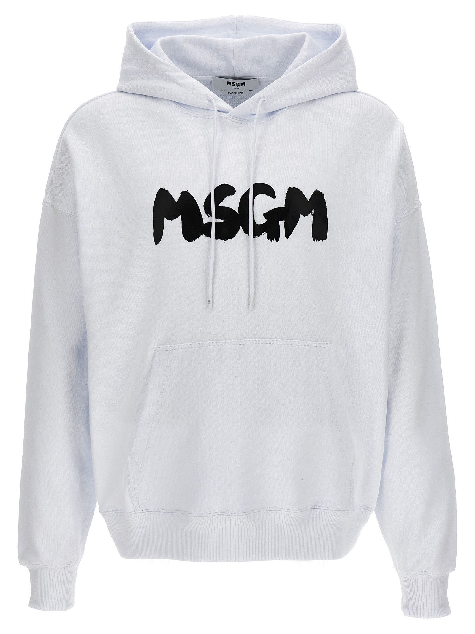 Cotton hoodie with front logo print, kangaroo pocket, long cuffed sleeves.