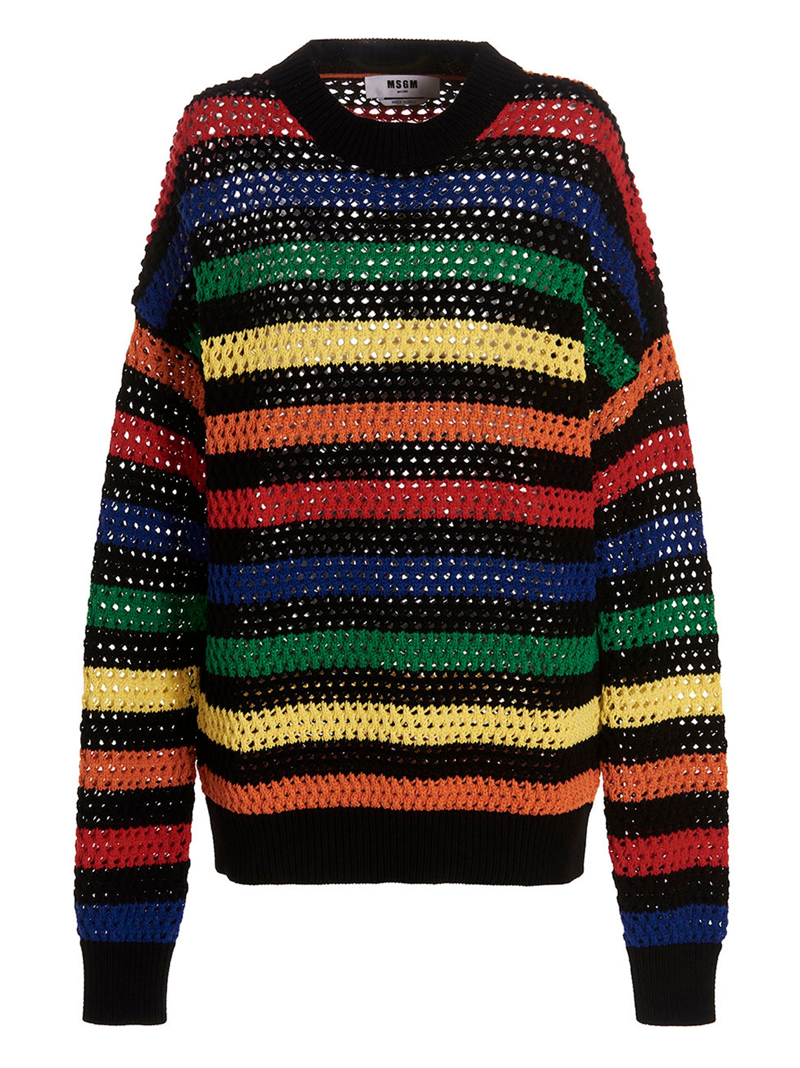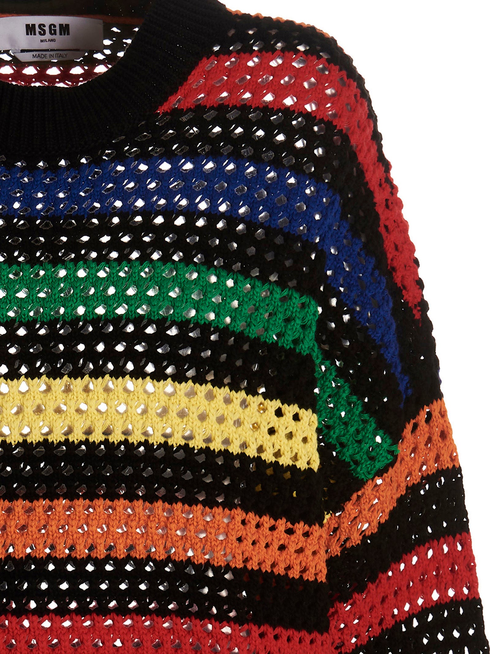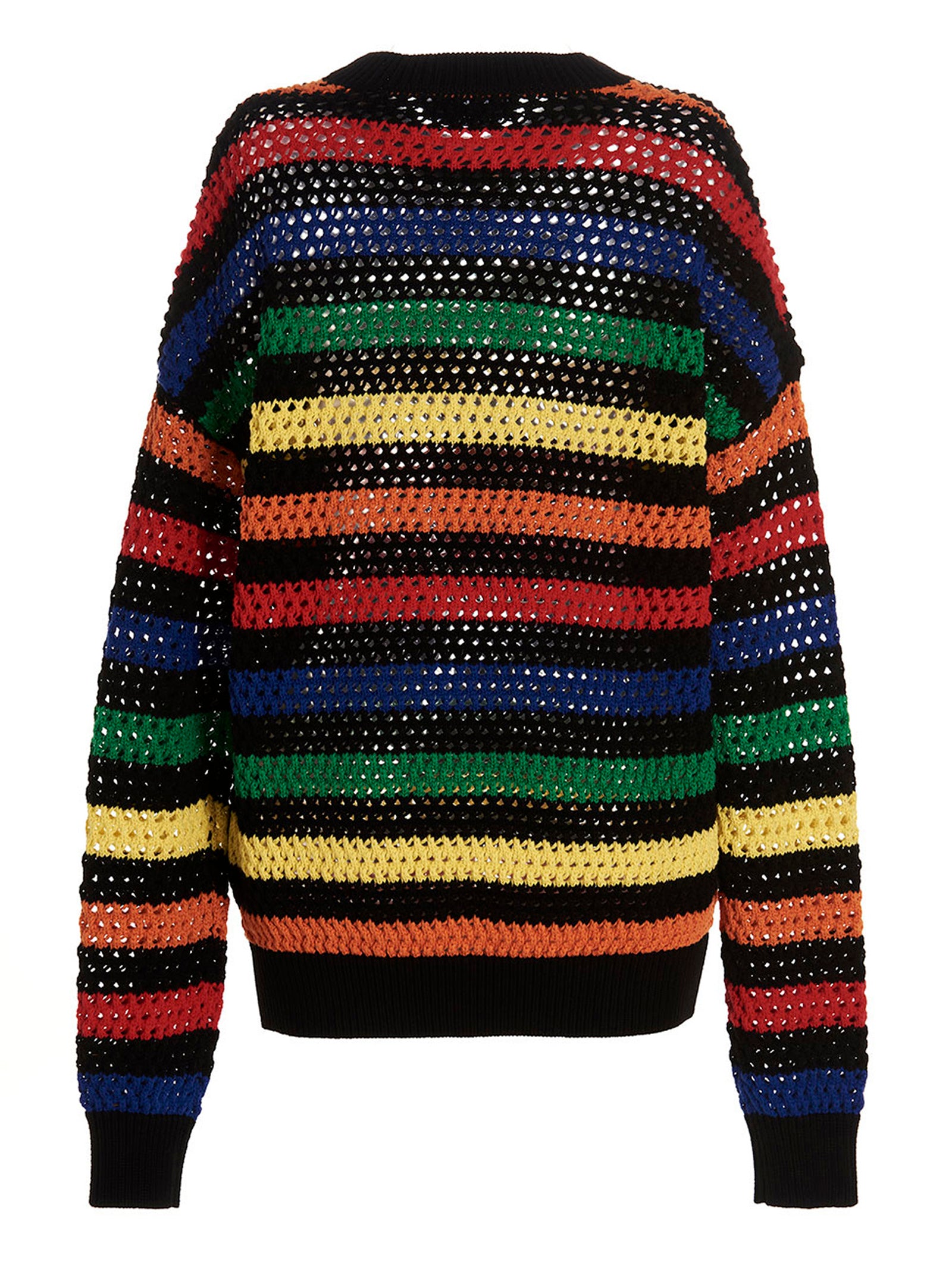 Multicolor striped cotton sweater, with crewneck, long cuffed sleeves.