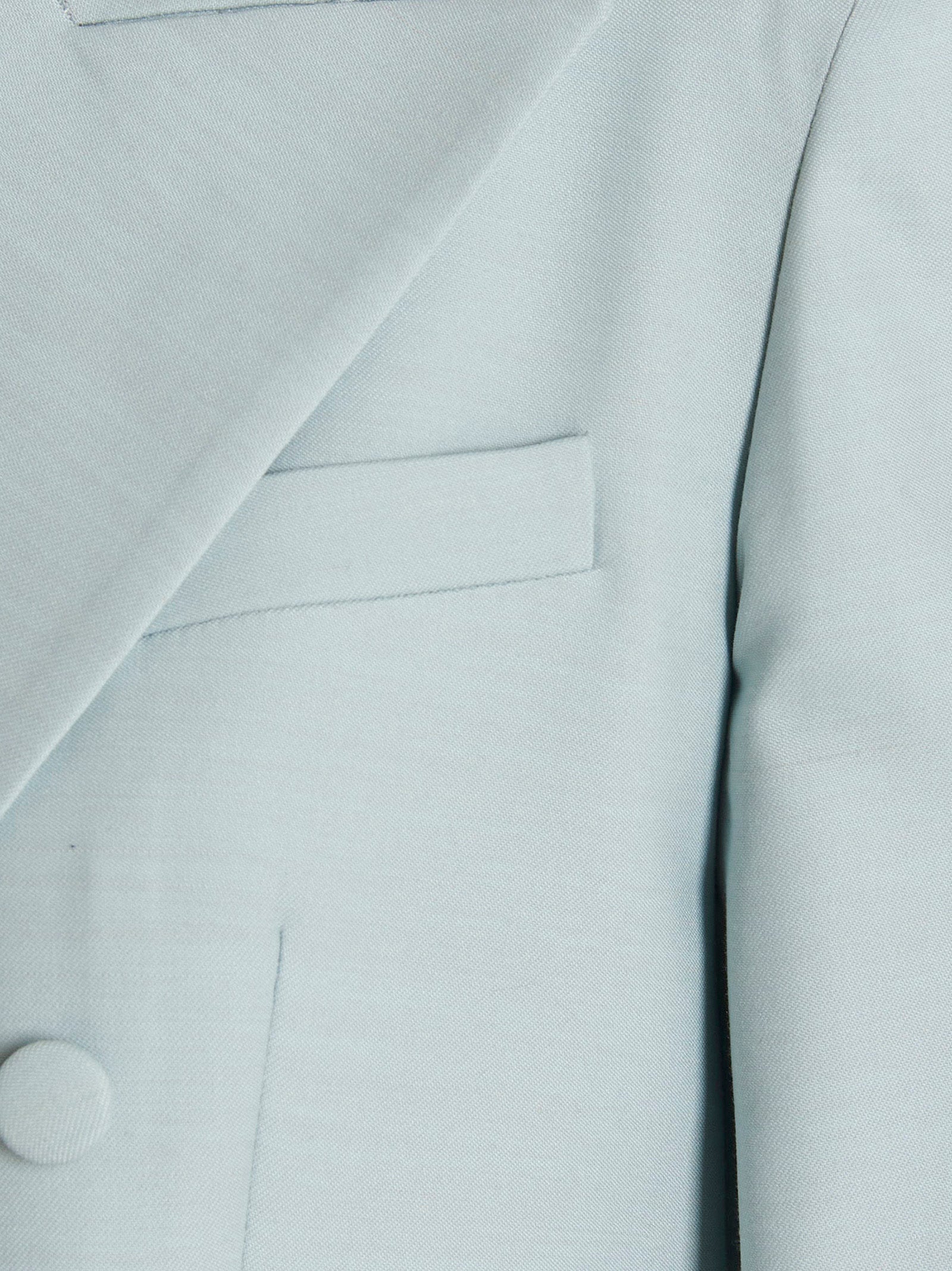 Waldof' wool blend double-breasted blazer with button closure, peak lapels, pockets, padded shoulders, long sleeves and a back split.