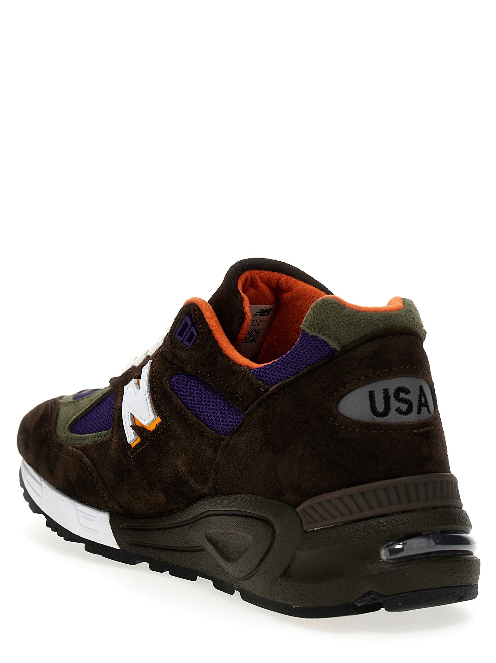 Balance Teddy Santis capsule Strike Outdoor Trail Pack 990 sneakers in suede and mesh fabric with side logo, laces, and rubber sole.