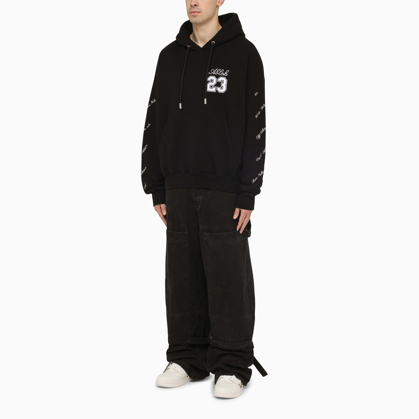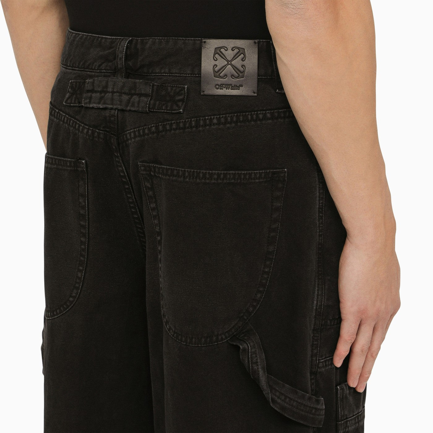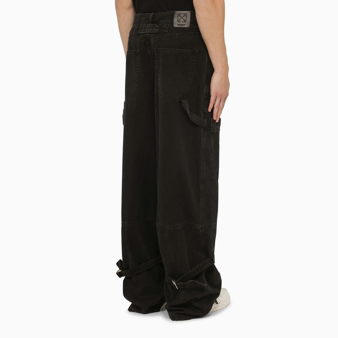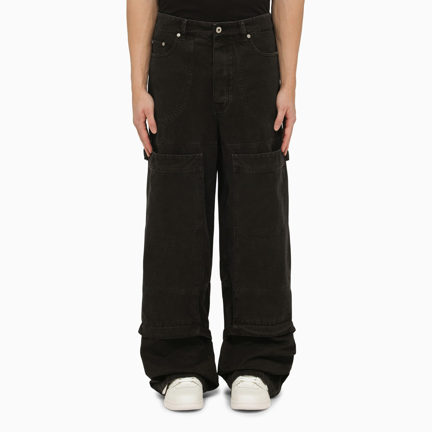 Cargo trousers by Off-White in black cotton denim featuring a mid-rise waist, belt loops, a front zip and button fastening, four front pockets, back pockets and adjustable tabs on the hems.