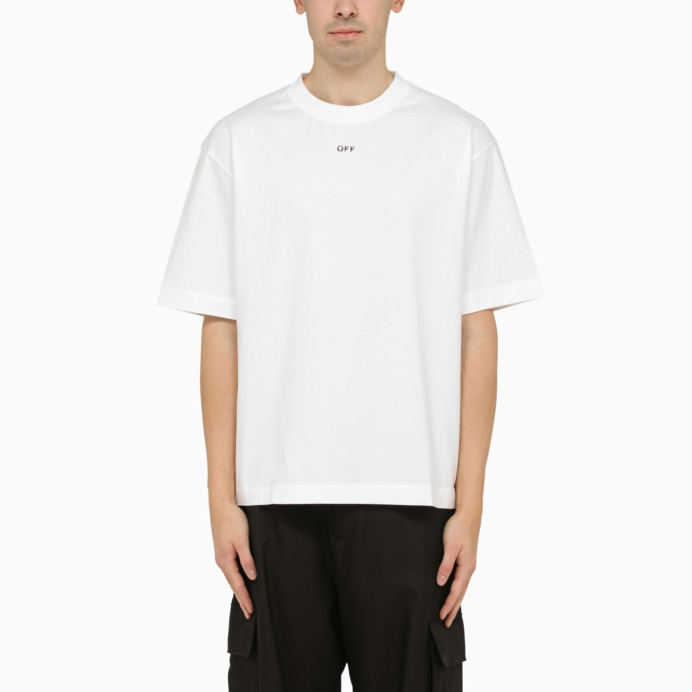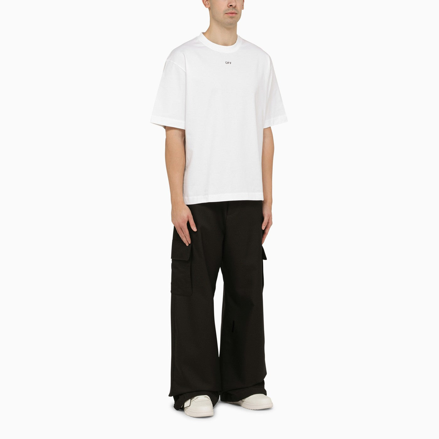 T-shirt by Off-White in white cotton featuring Off logo print on front, crew neck, wide short sleeves, straight hem and skate fit.