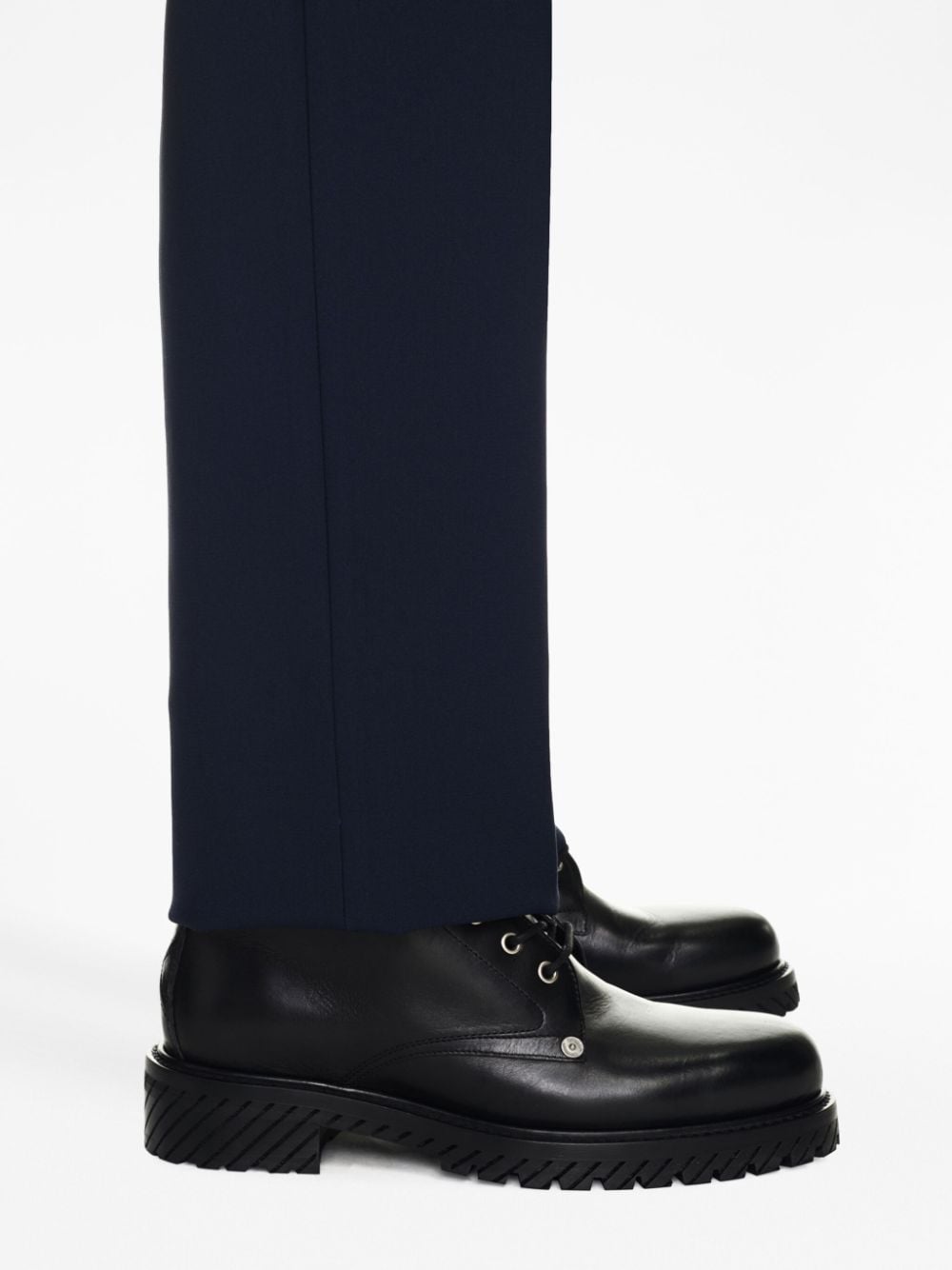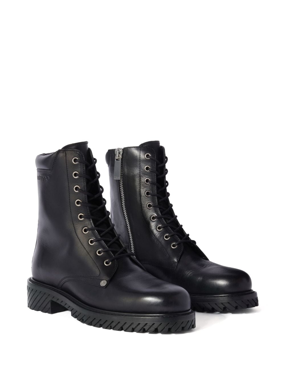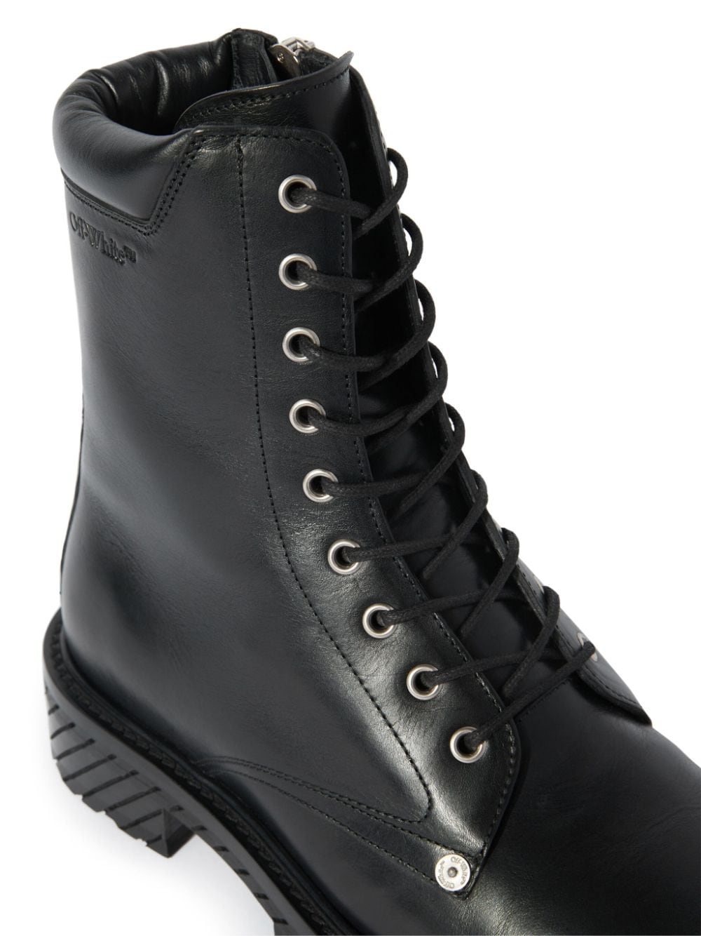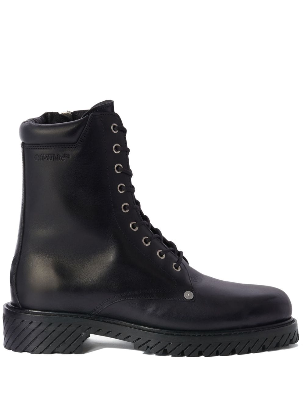 Off-White amphibians have the side logo engraved, front closure with laces and side closure with zip.