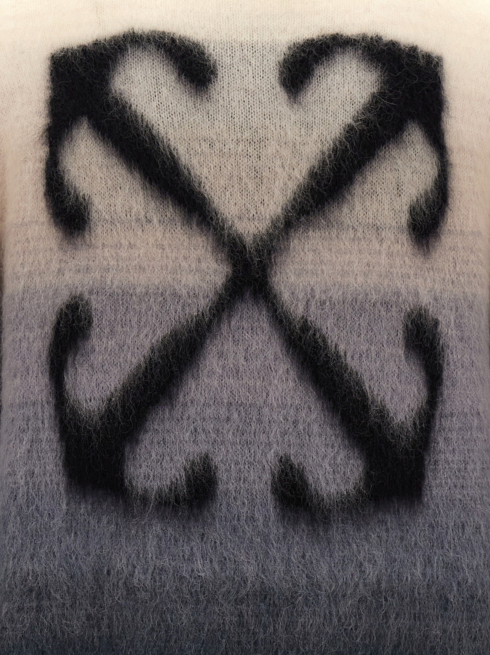'Arrow Grad' sweater in gradient-effect mohari blend with back logo, crew neck, long cuffed sleeves.
