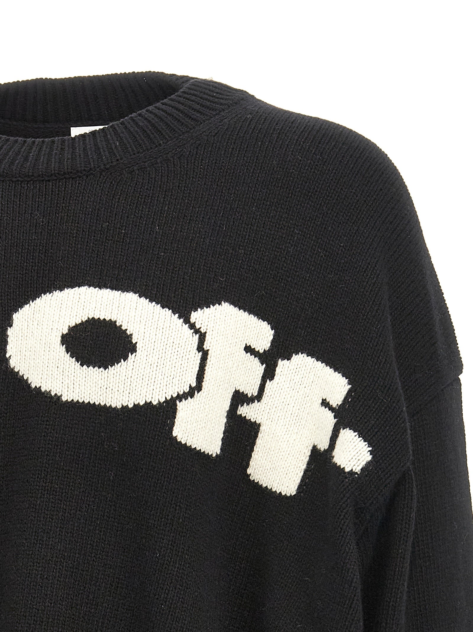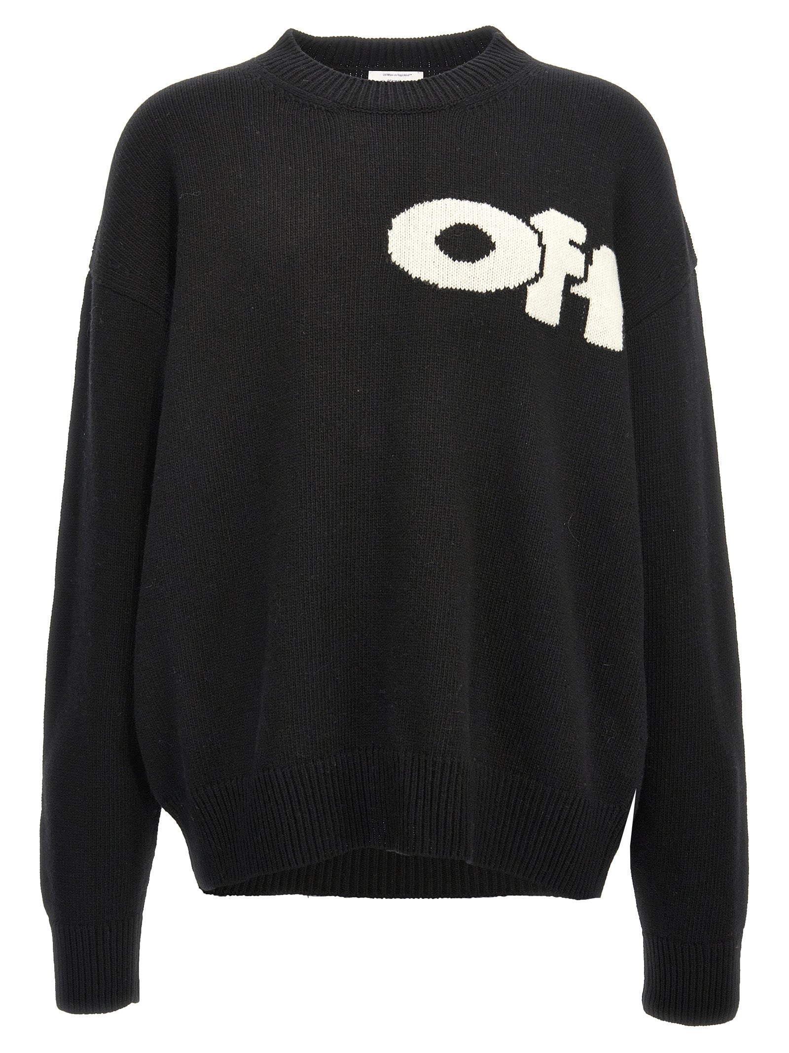 Shared Logo' wool blend sweater with contrast logo intarsia, crew neck, long cuffed sleeves.