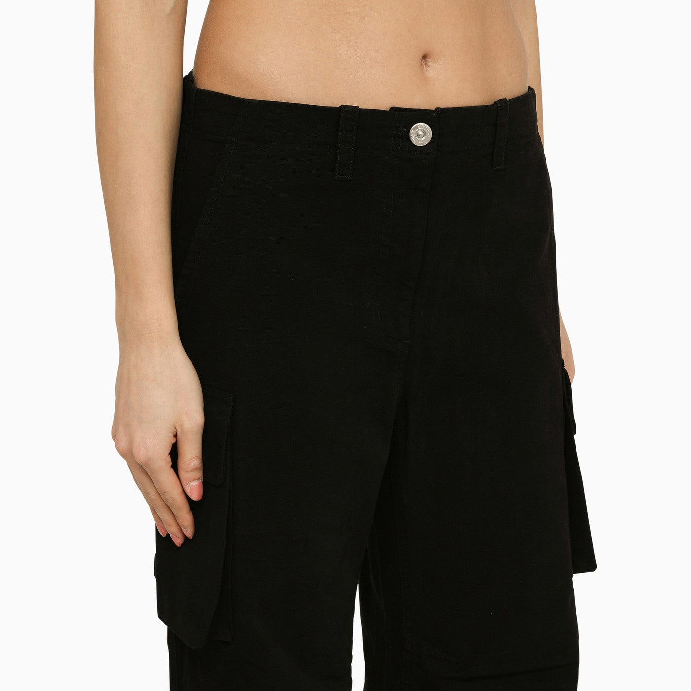 Black cotton cargo trousers from Our Legacy featuring a front zip and button fastening, belt loops, a high waist, two bellows pockets, two cargo pockets on the sides and a flap pocket on the back.