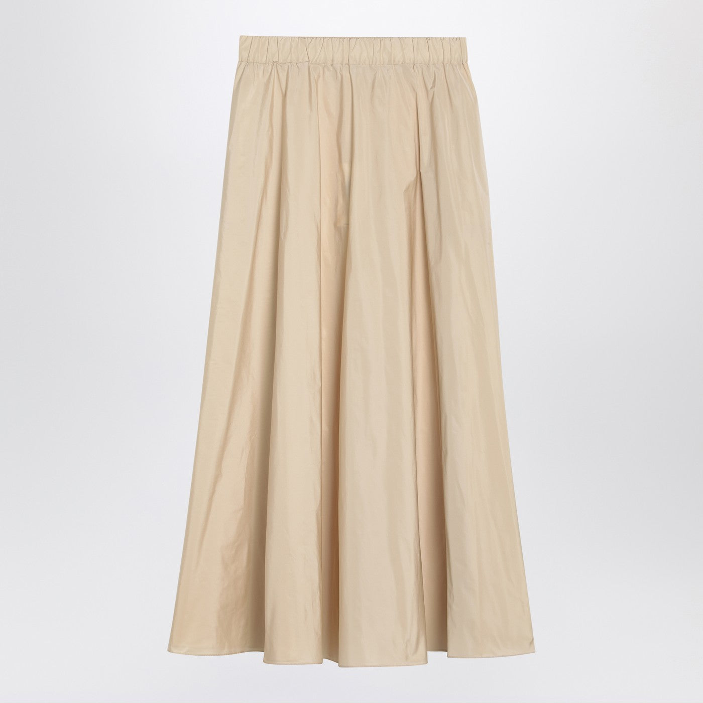 Beige P.A.R.O.S.H. midi skirt, featuring elasticated waist and flounced design.