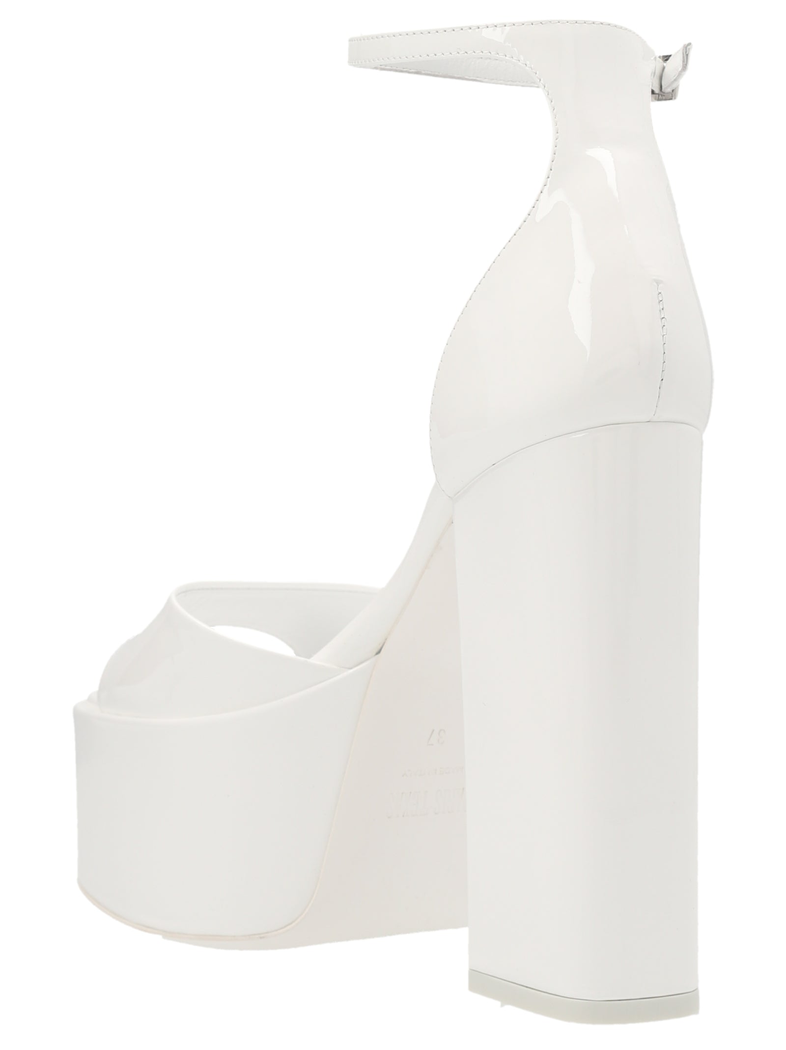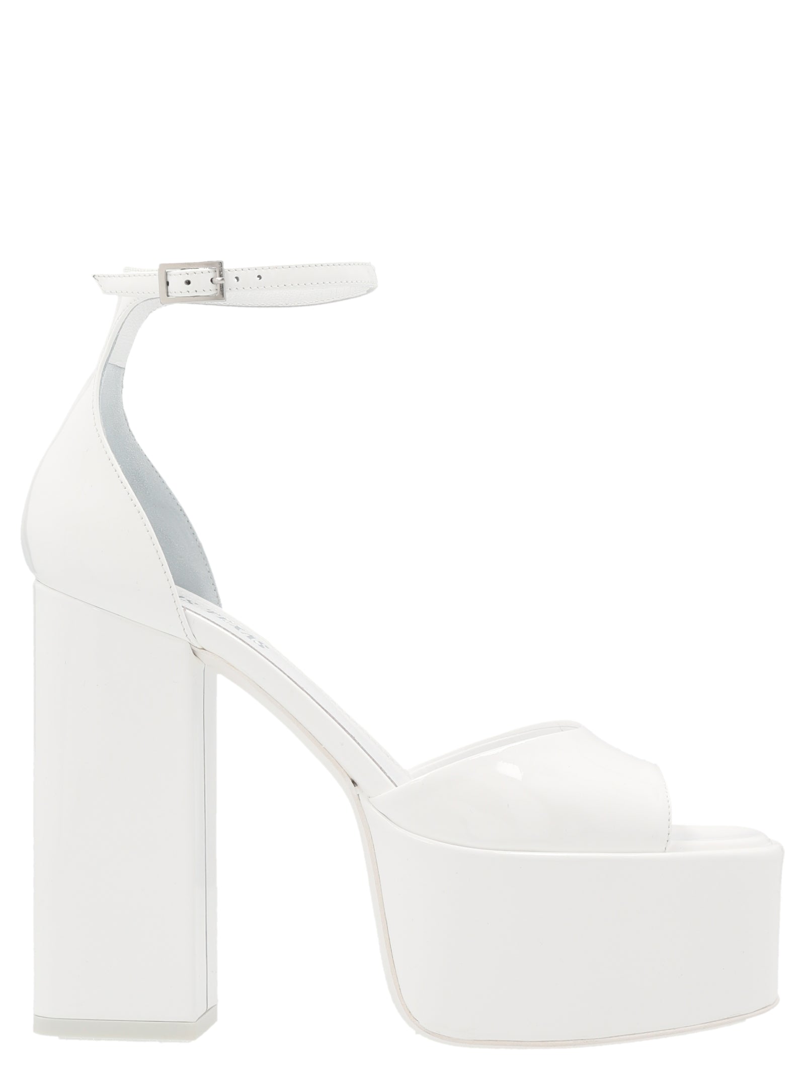 Tatiana' patent leather sandals with nkle straps, platformer and chunky heel.