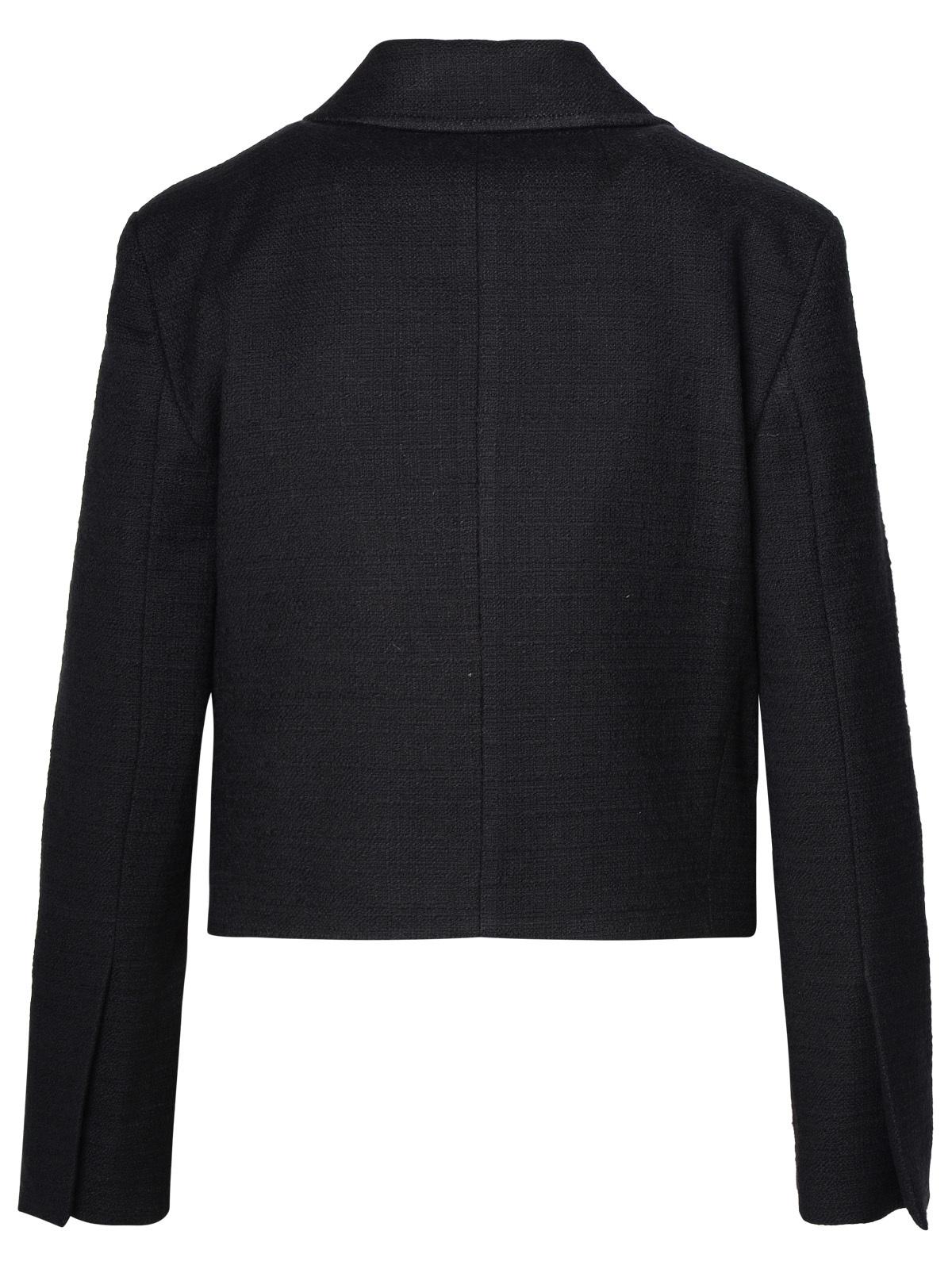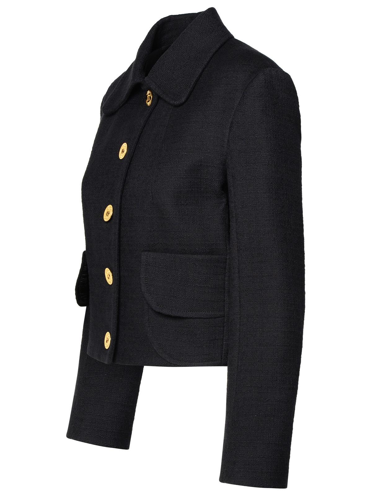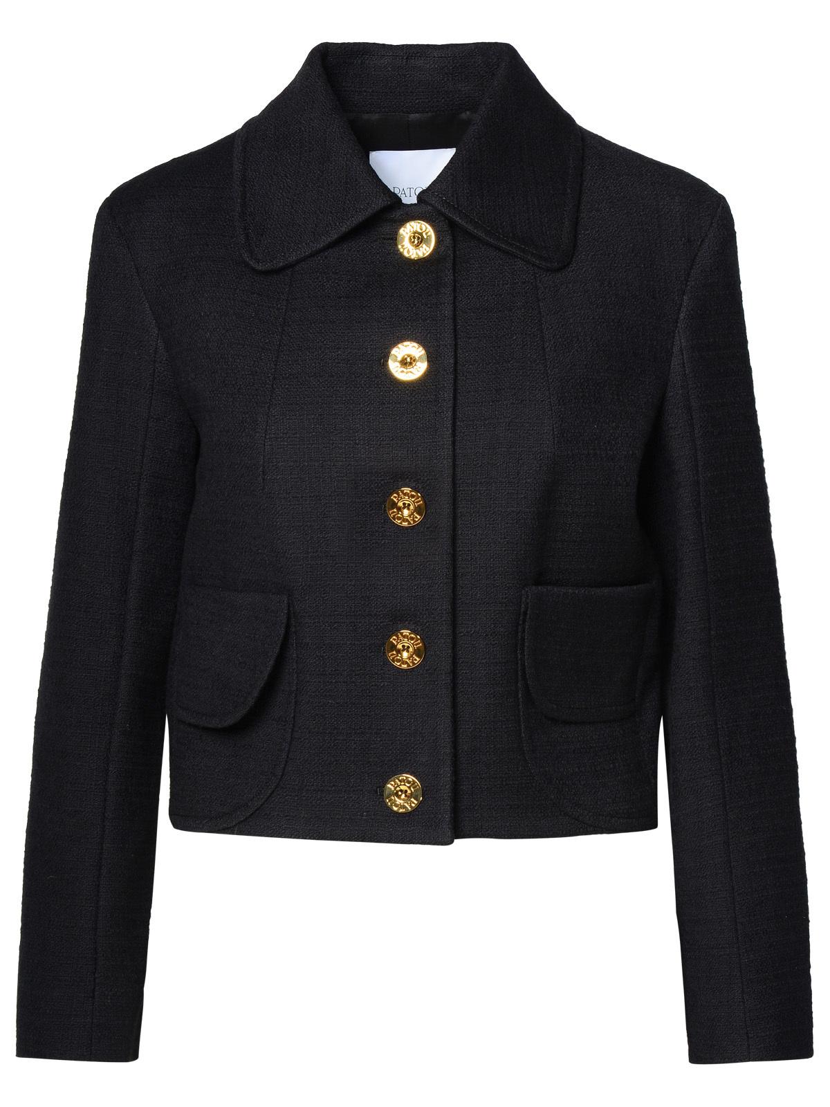 Pointed collar, front button closure, front patch pockets, sapcco and button on the sleeve hem