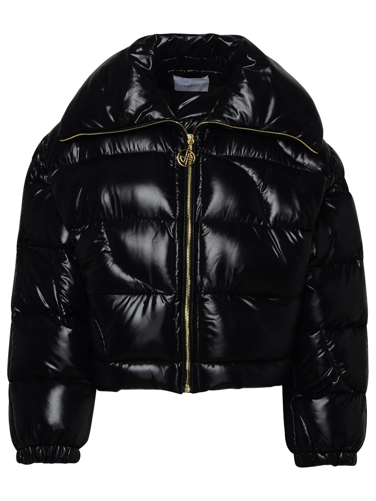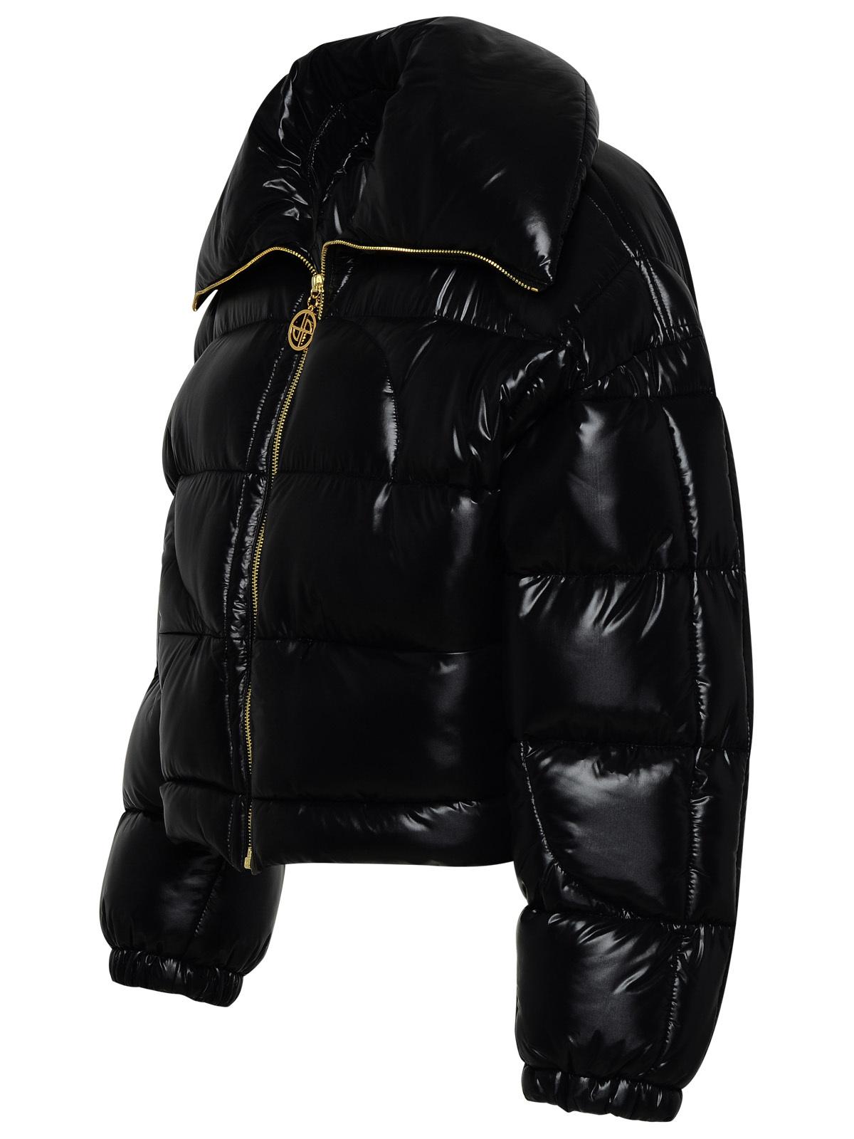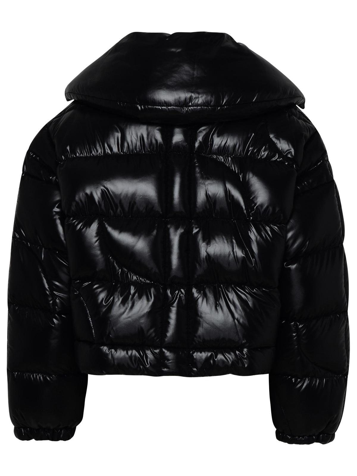 Polyester filling, high neck, front zipper closure, adjustable drawstring at the bottom, elastic sleeve bottoms