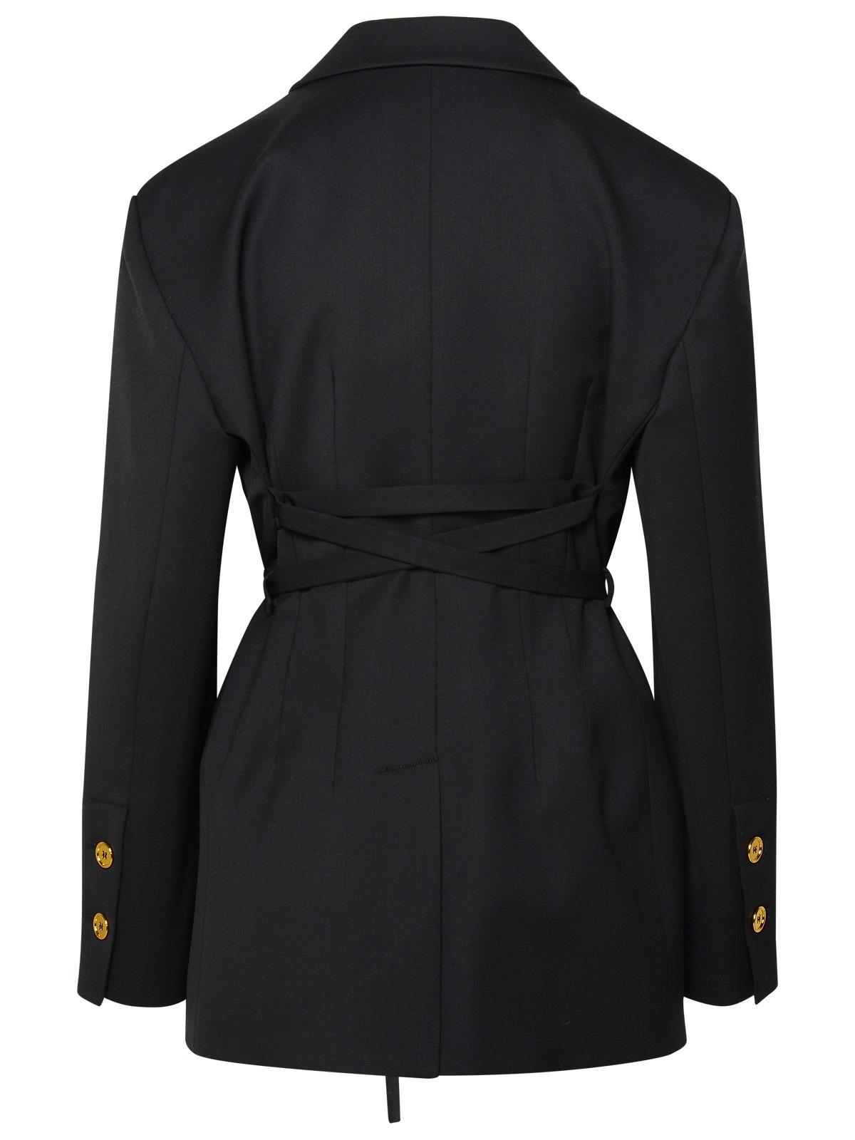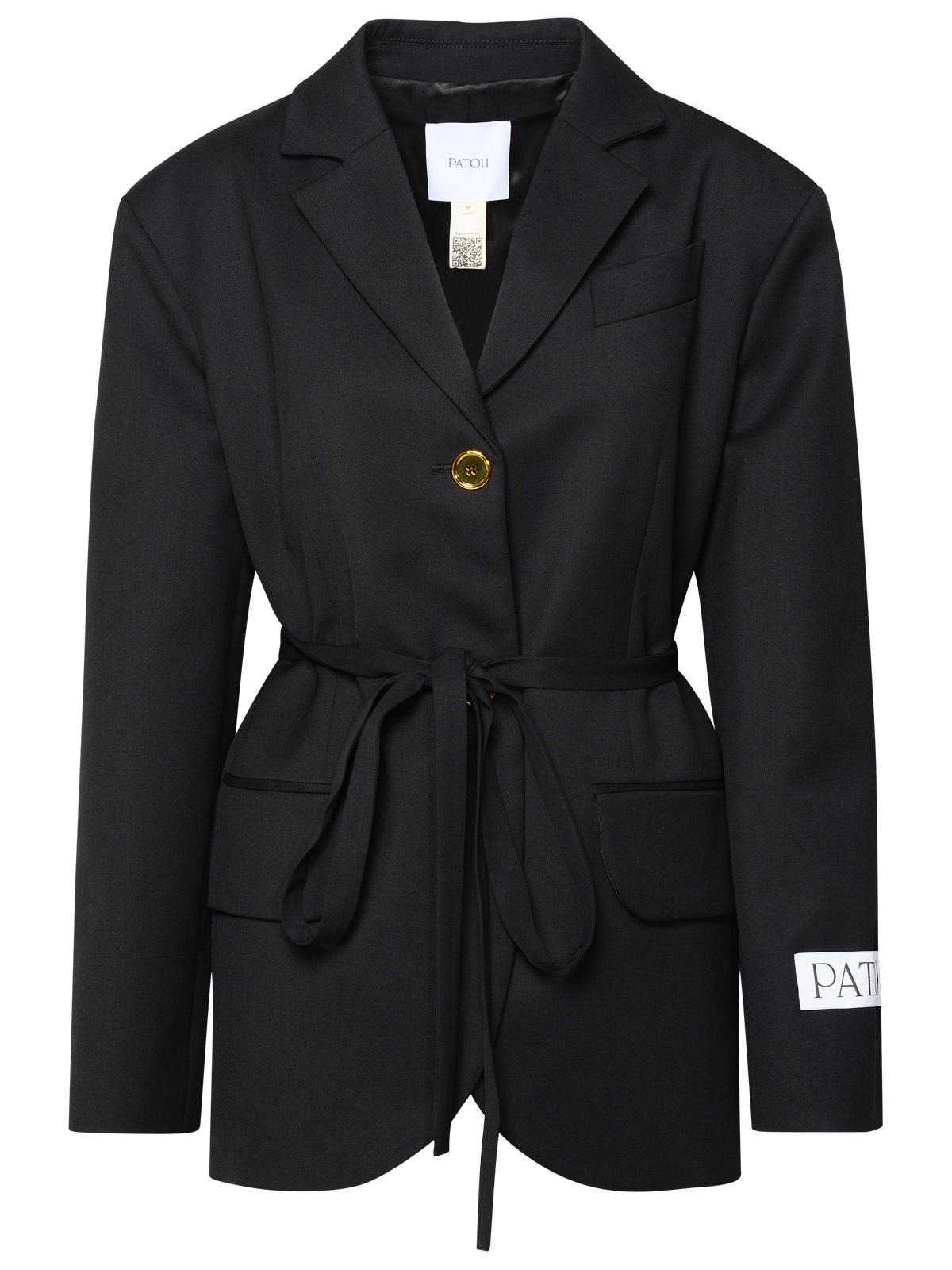 Oversized fit, lapel collar, button closure, chest welt pocket, flap pockets, belt at the waist, back central vent, button cuffs