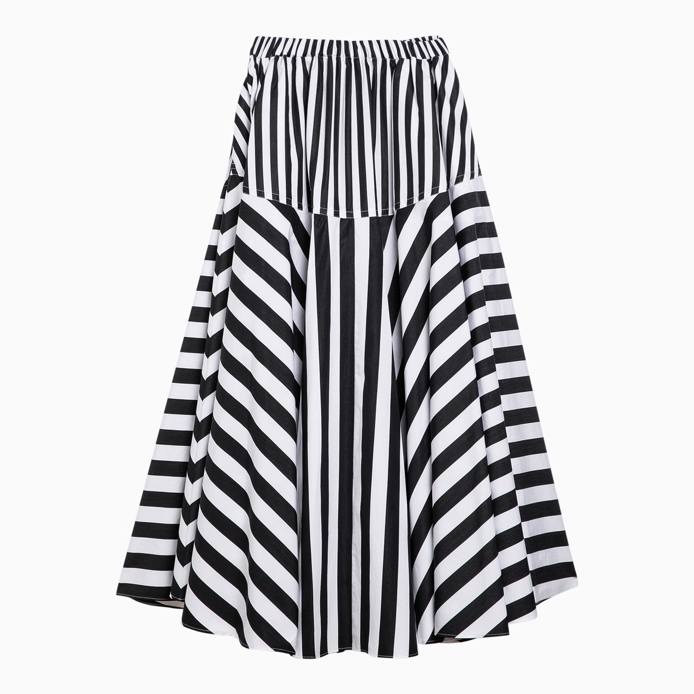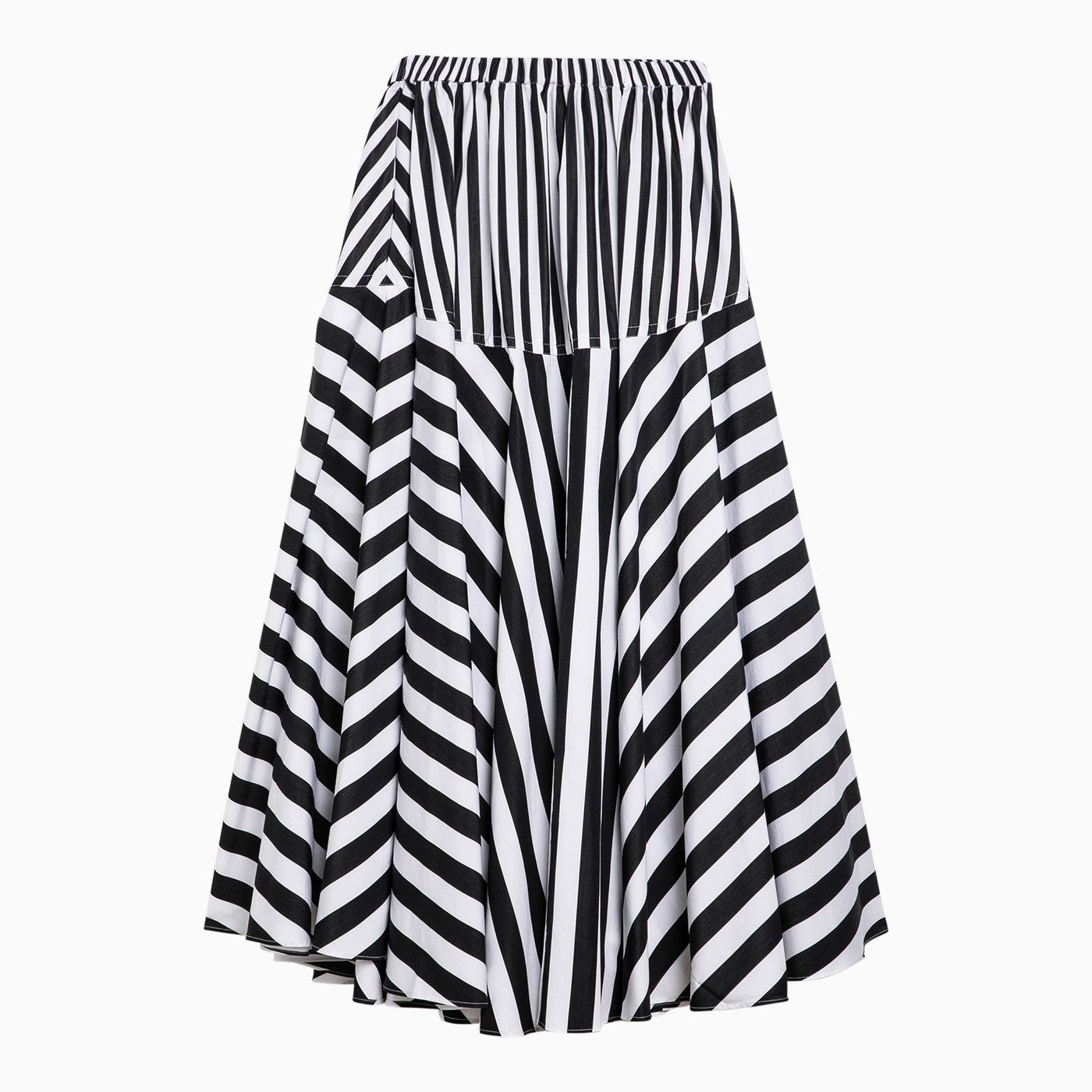 Black and white striped cotton midi skirt by Patou features an elasticated waistband and two side welt pockets.