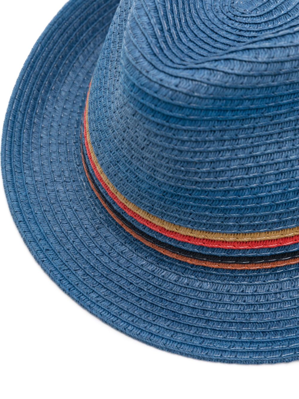 blue straw interwoven design Artist Stripe band teardrop crown flexible brim
