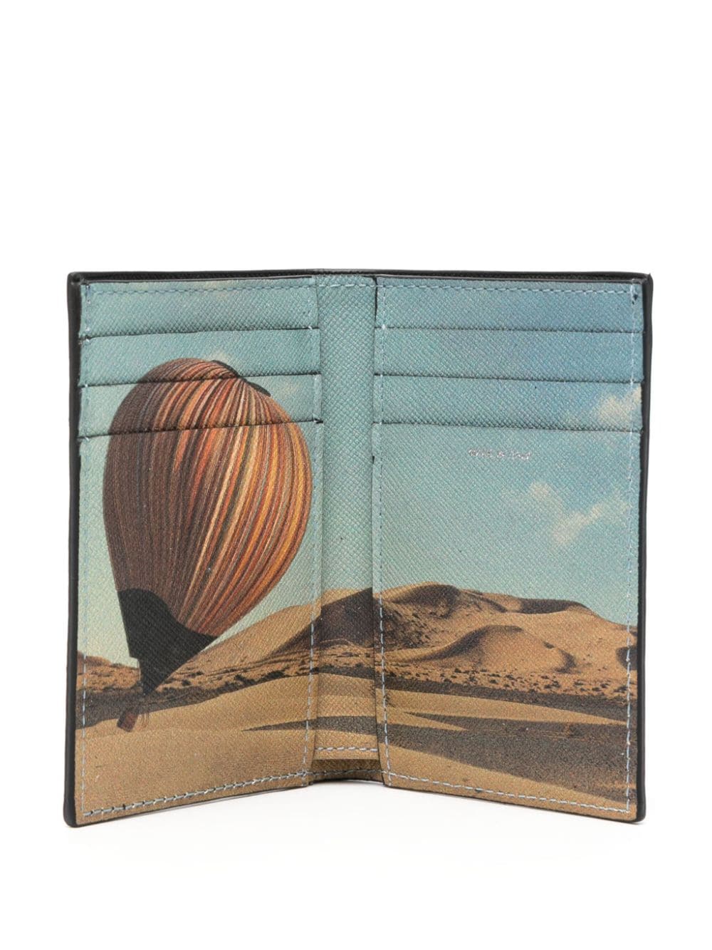 black leather grained texture logo print to the front Signature Stripe Balloon print at the interior internal card slots folded design