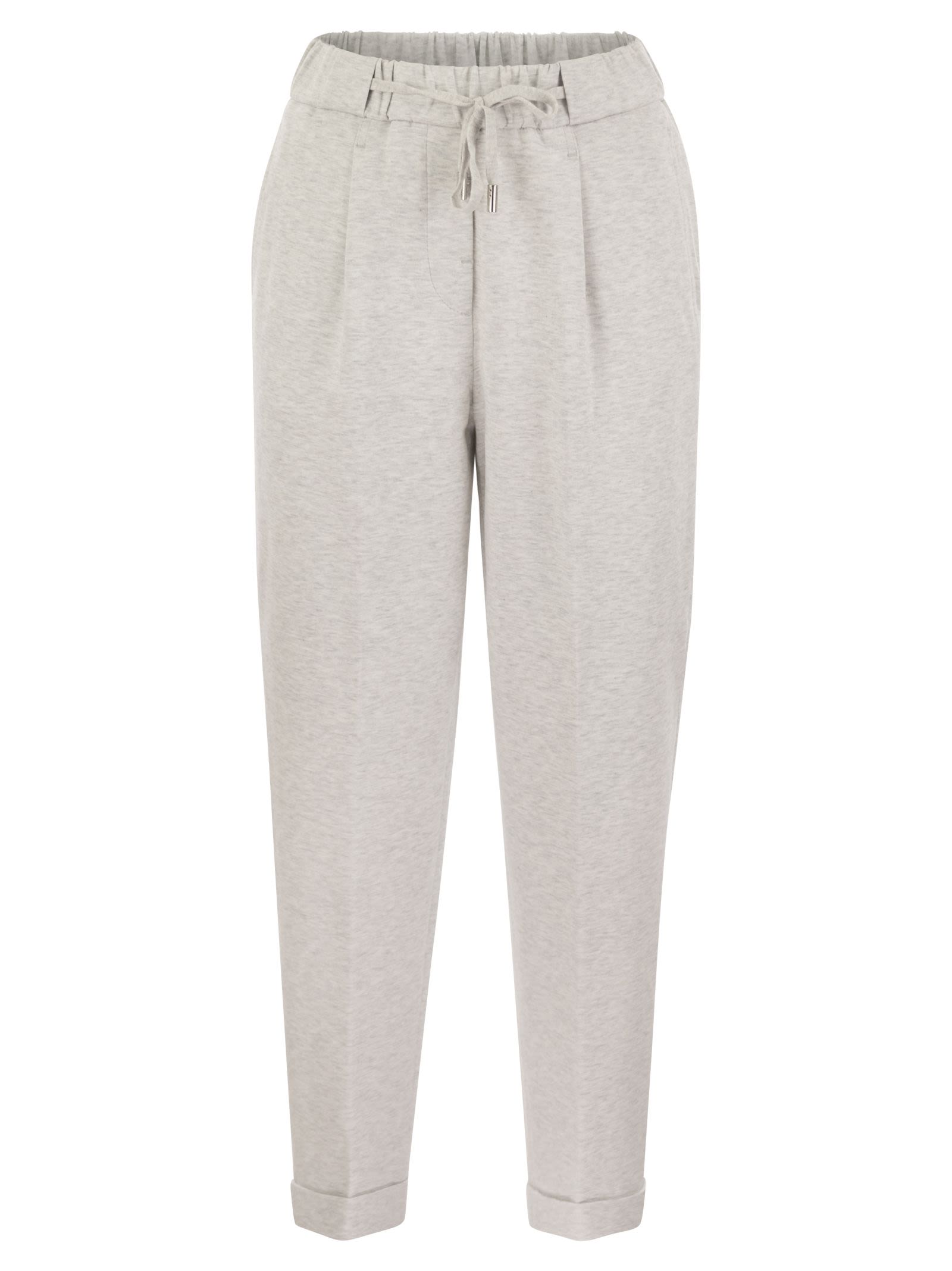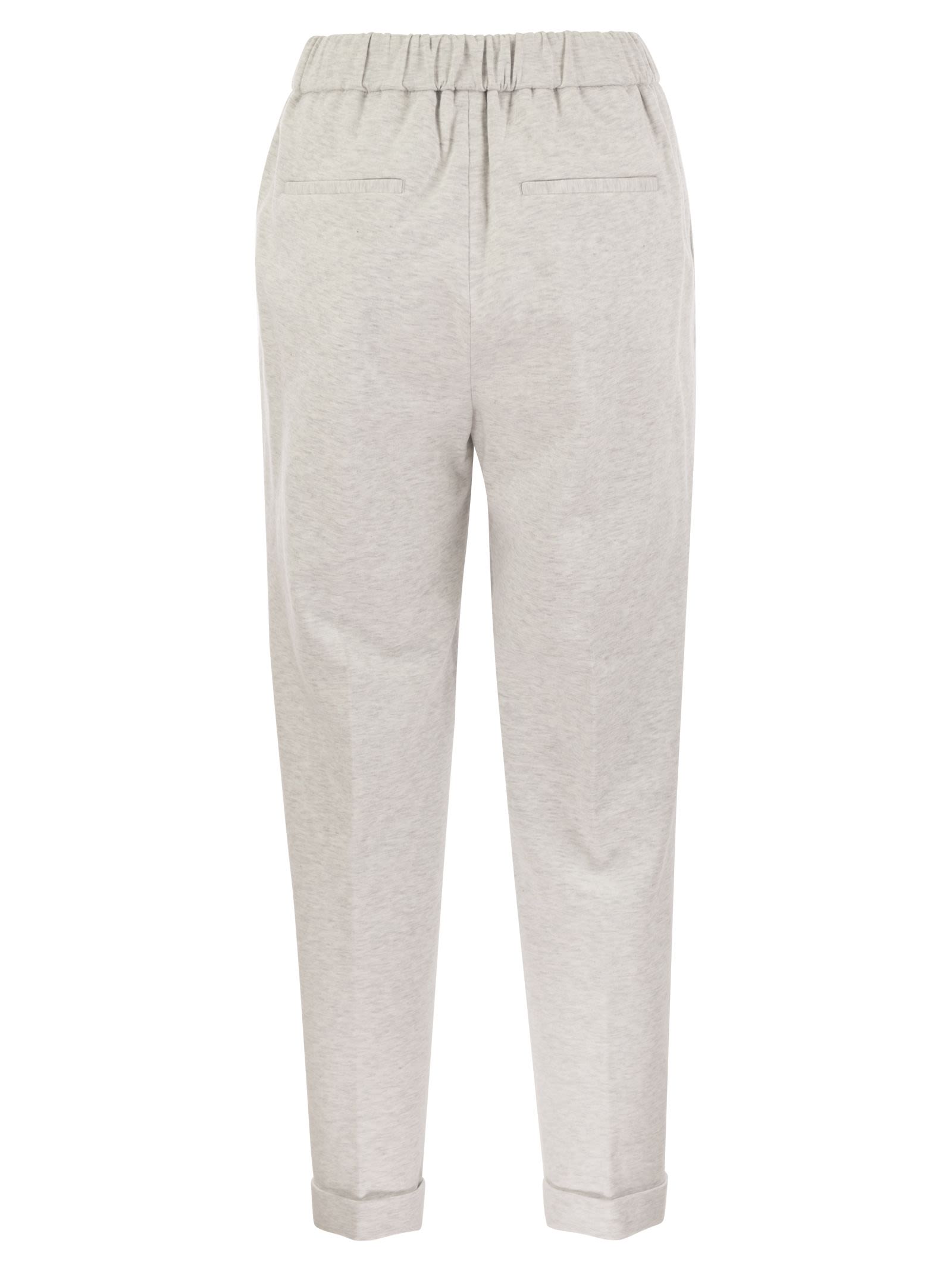 The plush trousers represent a harmonious fusion of comfort and authenticity. The elastic waistband and drawstring not only ensure an adaptable fit, but also introduce an element of dynamic style. The loose fit with an active-sporty attitude perfectly complements the high waist, offering maximum comfort. - Trousers with elastic waistband and drawstring - America pockets on the front and welt pockets on the back - Loose fit - High waisted - With turn-ups DESIGNER ID: P04204J00Z 06904 771