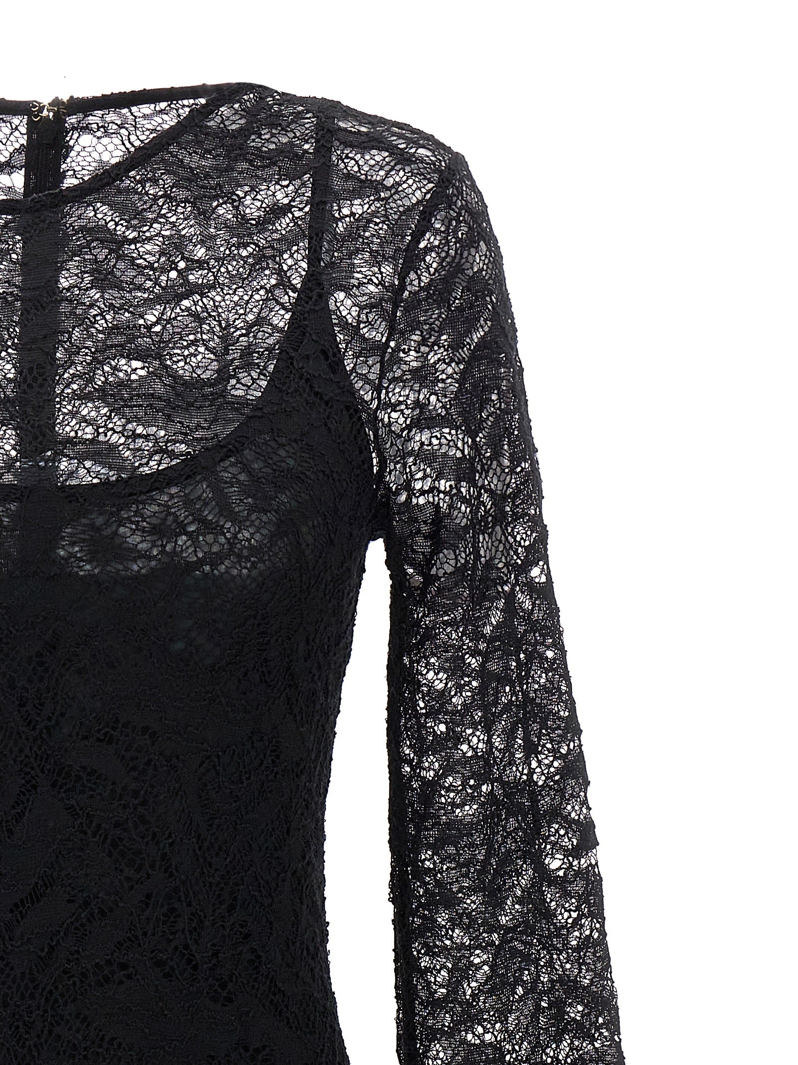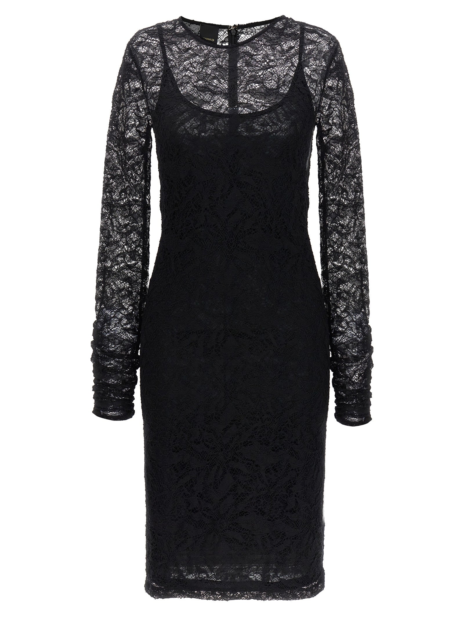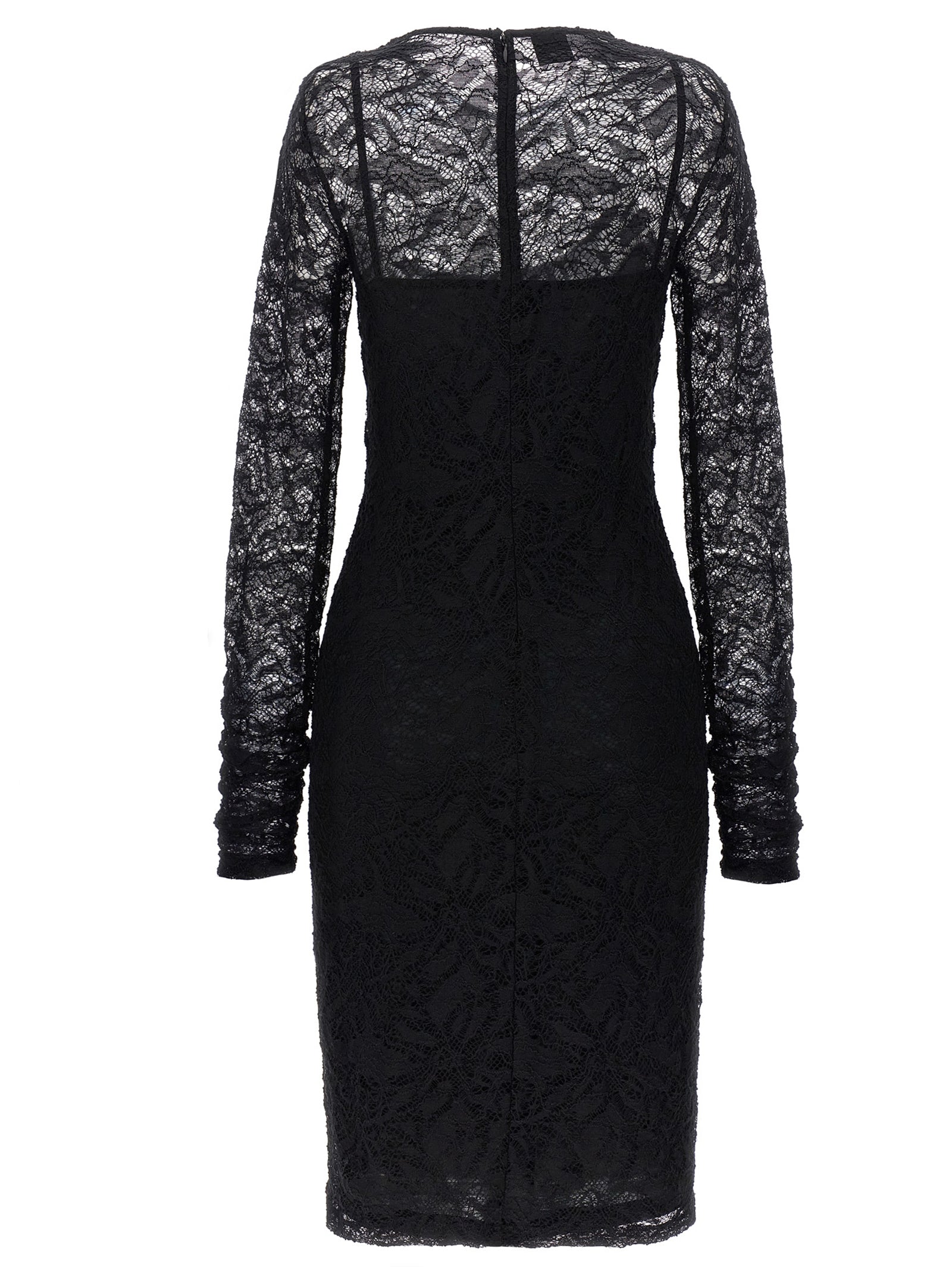Amazzone' lace dress, crew neck, long sleeves, back zip closure, removable tone-on-tone petticoat.