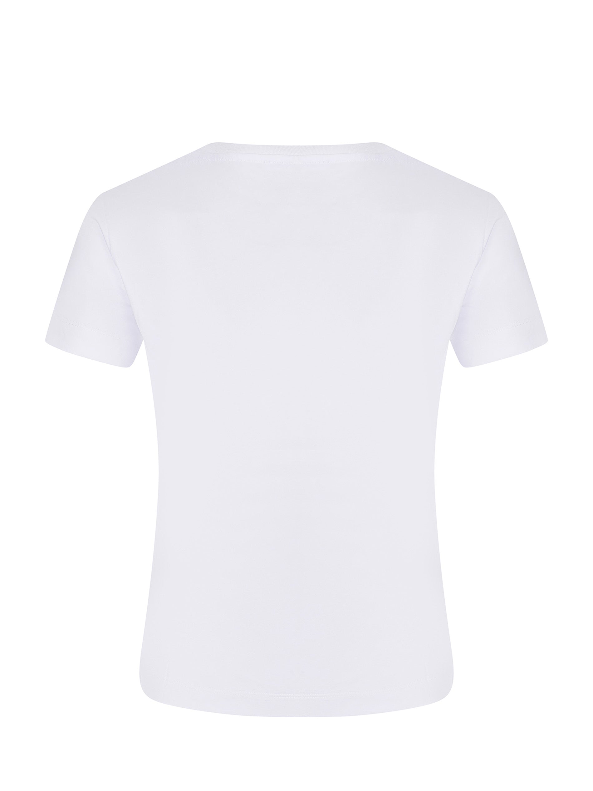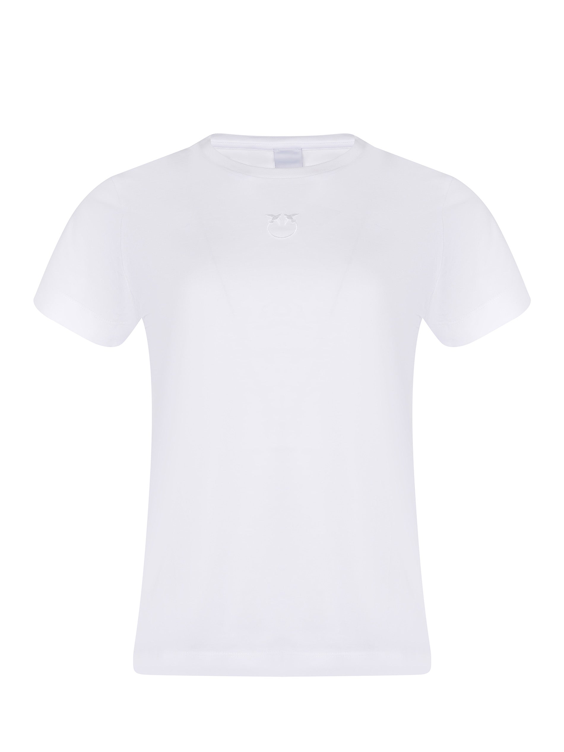 Pinko "Bussolotto" T-shirt made of white cotton. Ribbed crew neck. Short sleeves. Tone-on-tone "Love Birds" logo embroidery on the chest. Slim fit. 100% cotton