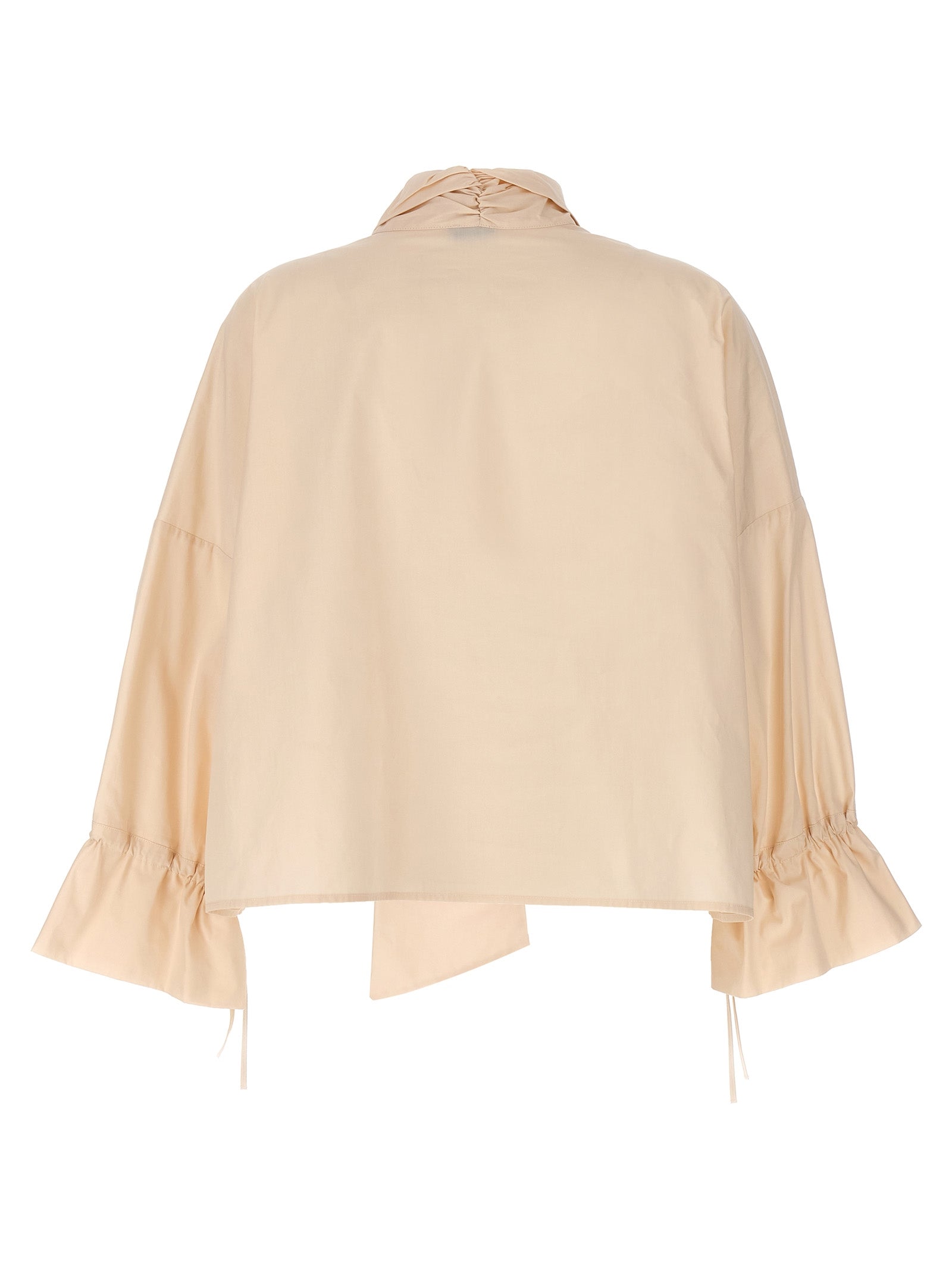'Dedita' cropped shirt in cotton poplin with tie sash, long sleeves with adjustable drawstring at the wrist.
