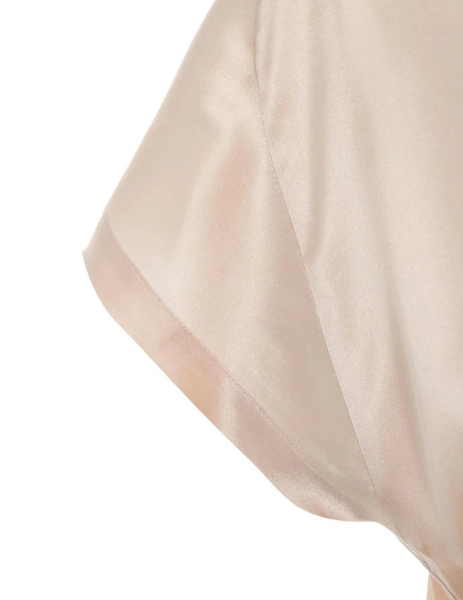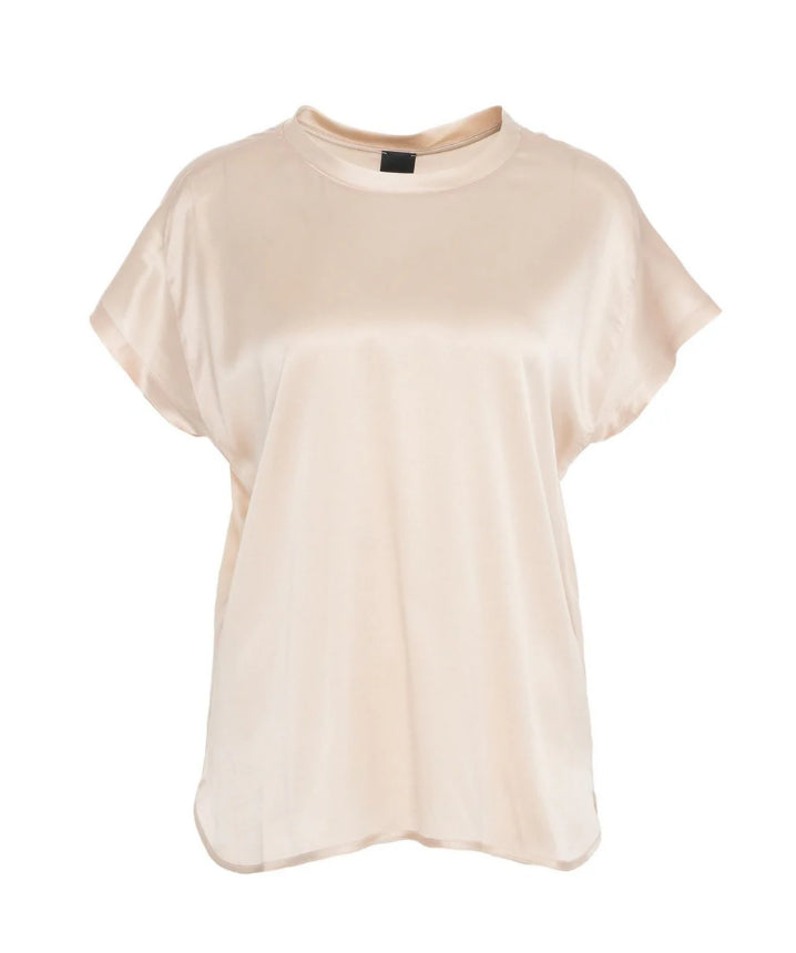Blouse made of stretch silk fabric. Crew neck, short sleeves