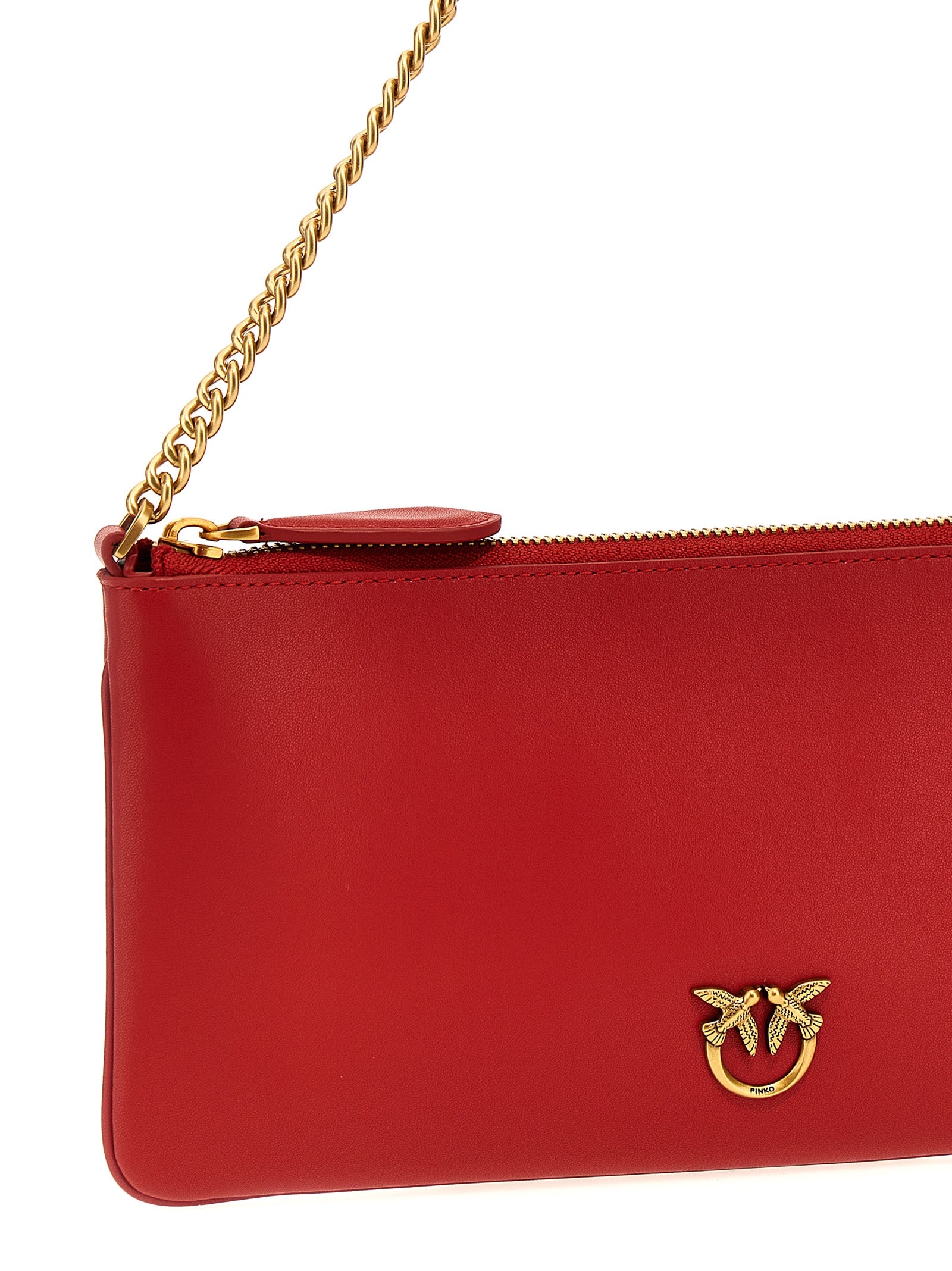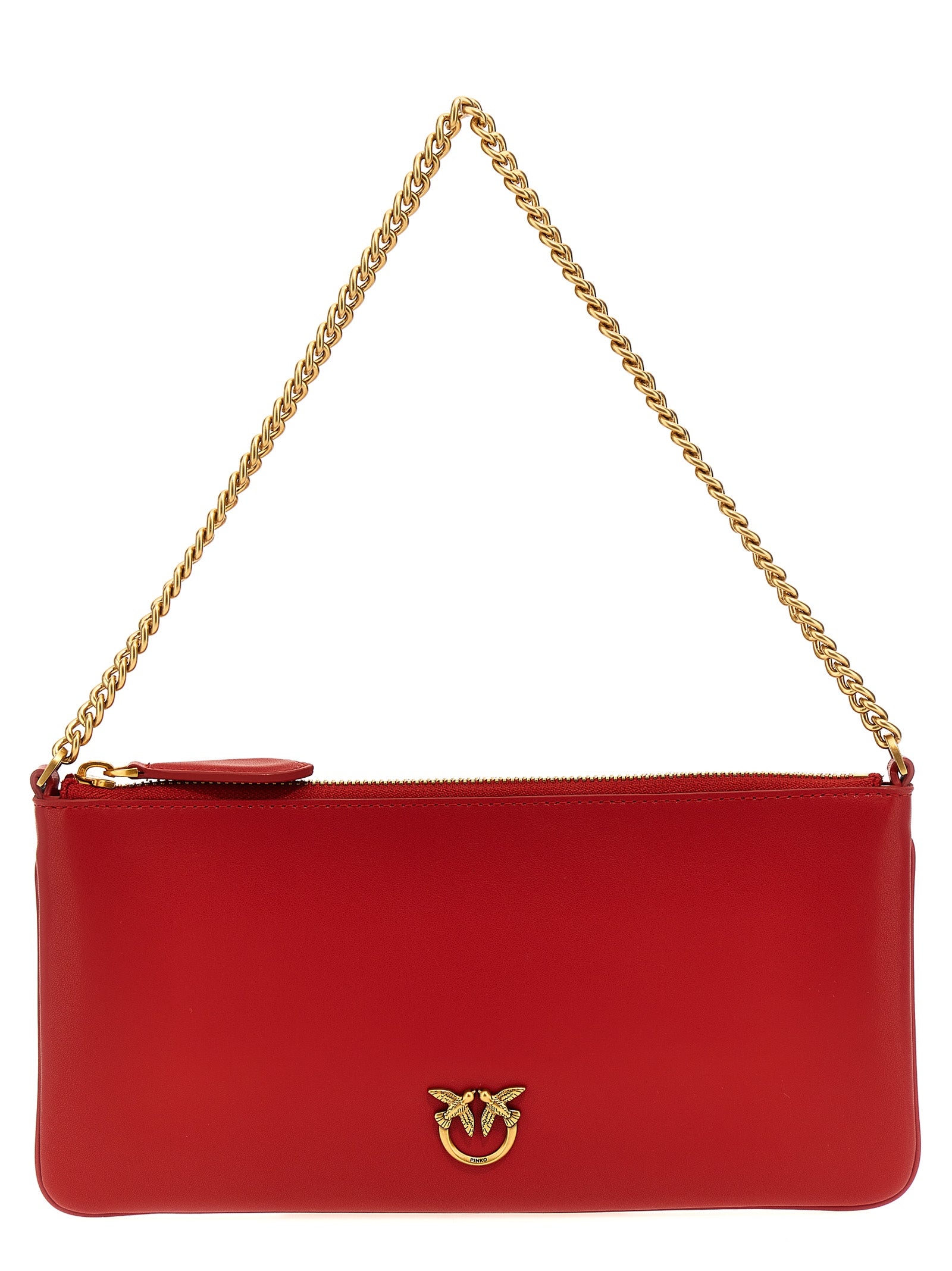 'Horizontal Flat' leather clutch bag with front metal logo, zip closure, chain handle.