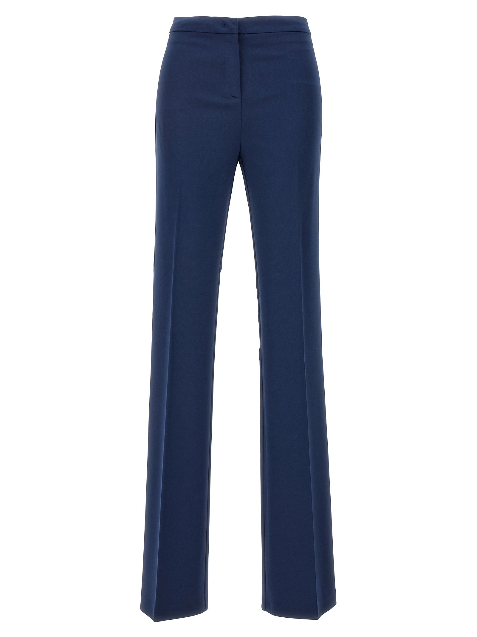'Hulka' trousers in stretch scuba fabric with zip, hook and button closure.