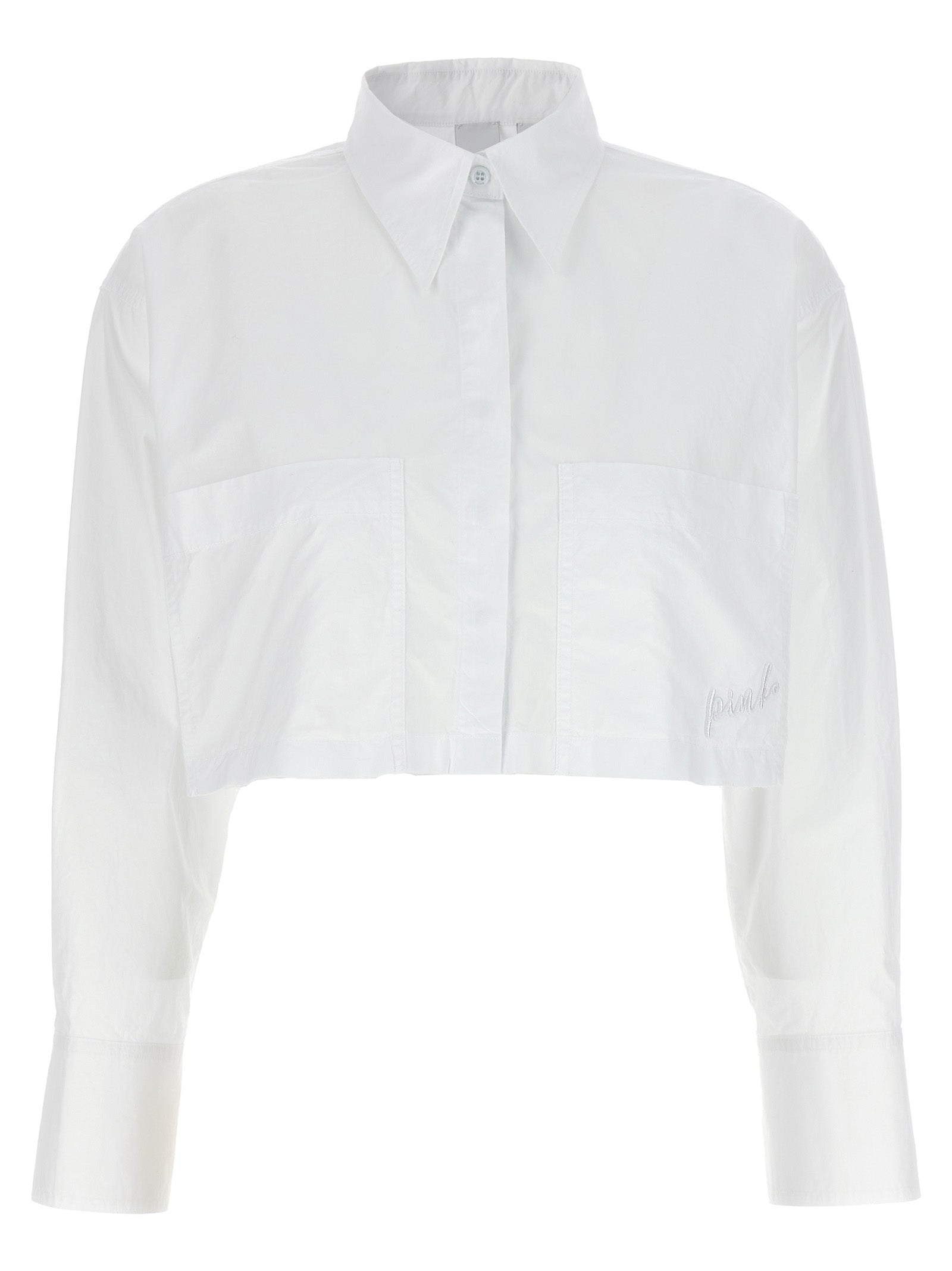'Pergusa' cropped shirt in garment-dyed cotton poplin with button closure, long cuffed sleeves.
