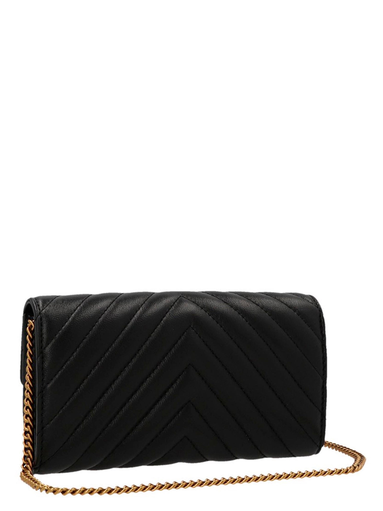 One Wallet Chevron' quilted leather wallet with magnetic closure with front metal logo application and a removable chain shoulder strap.