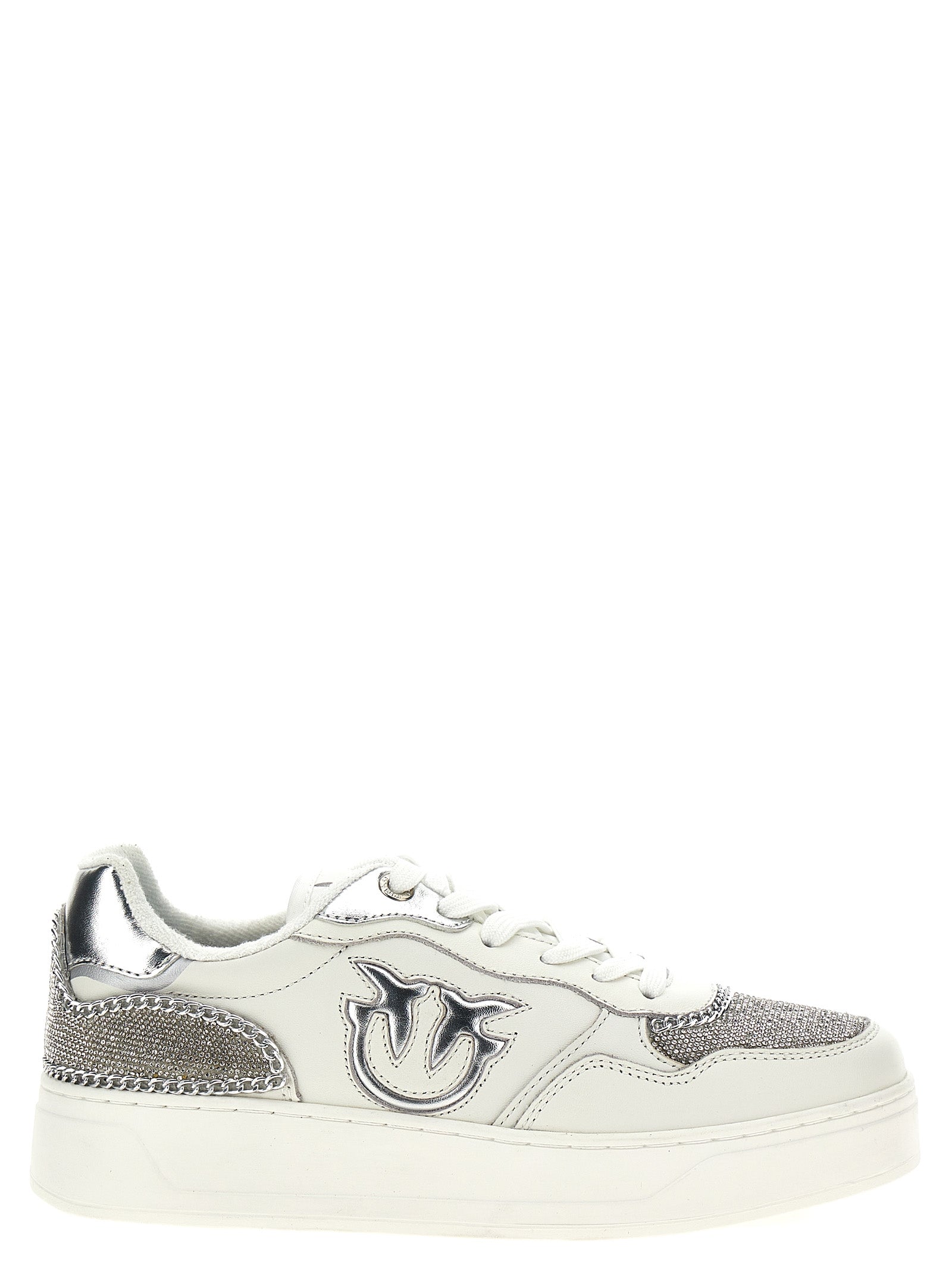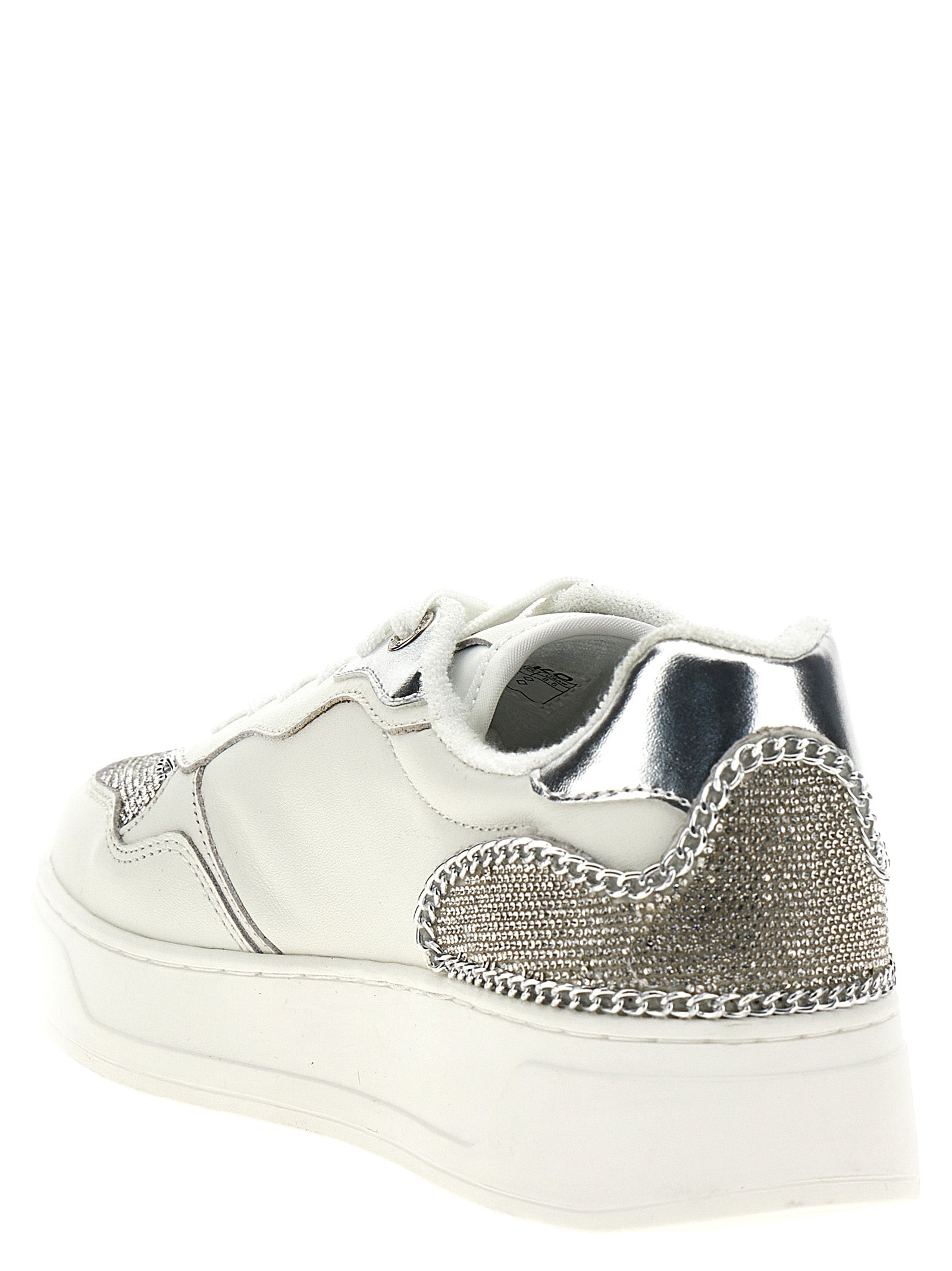 'Portland' leather sneakers, side logo, rhinestone application and chain details, laces, rubber sole.